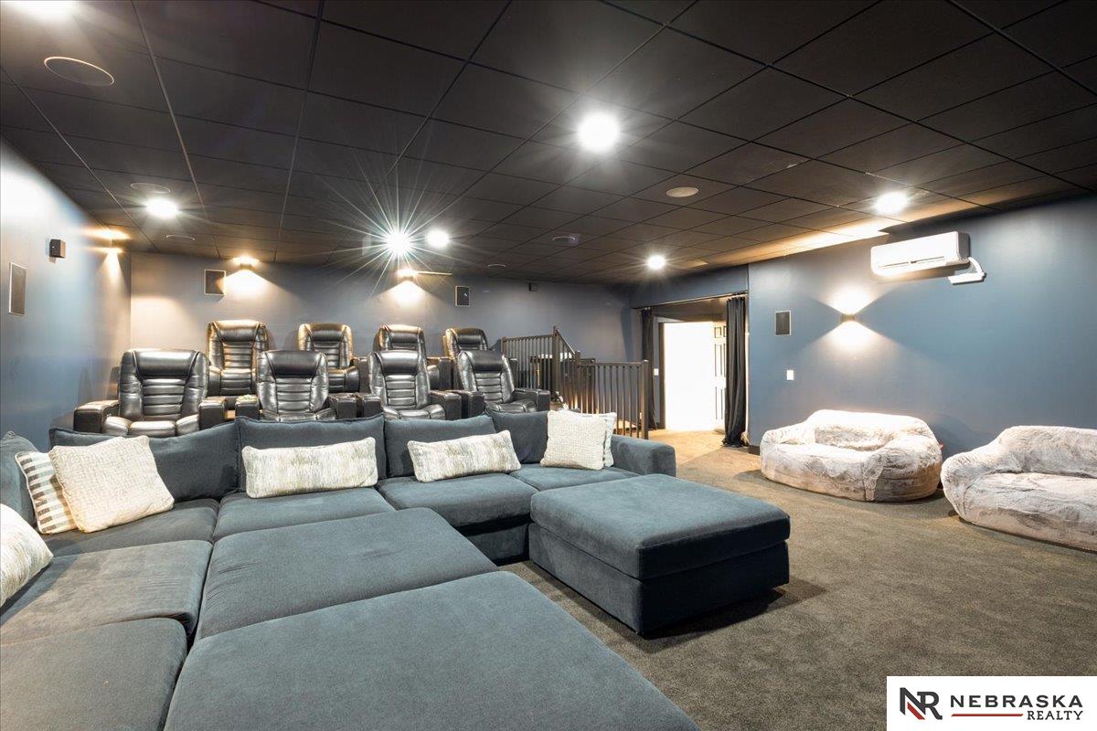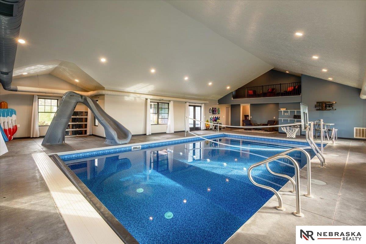 Five lush irrigated acres with more than 10,000 finished square feet across three levels and a wide range of indoor and outdoor amenities. The main floor centers on a large great room with fireplace, a well-equipped kitchen, dining area, office, and a primary suite with nearby laundry and loft access. The upper level offers additional bedrooms, baths, a living area, and second laundry. A separate second-level accessory dwelling includes its own kitchen, dining area, bedroom, bath, and exterior entrance. The lower level expands the living space with a rec room, CEDIA-certified theater, exercise room, bedroom, kitchen, saferoom/vault, and an indoor pool. Outdoor features include a swimming pond, patio, sand volleyball court, fire feature, forested area, and open recreation space. Four-car garage with EV outlet plus an additional lower-level garage. Schedule a private tour to explore the layout, amenities, and possibilities this property offers.