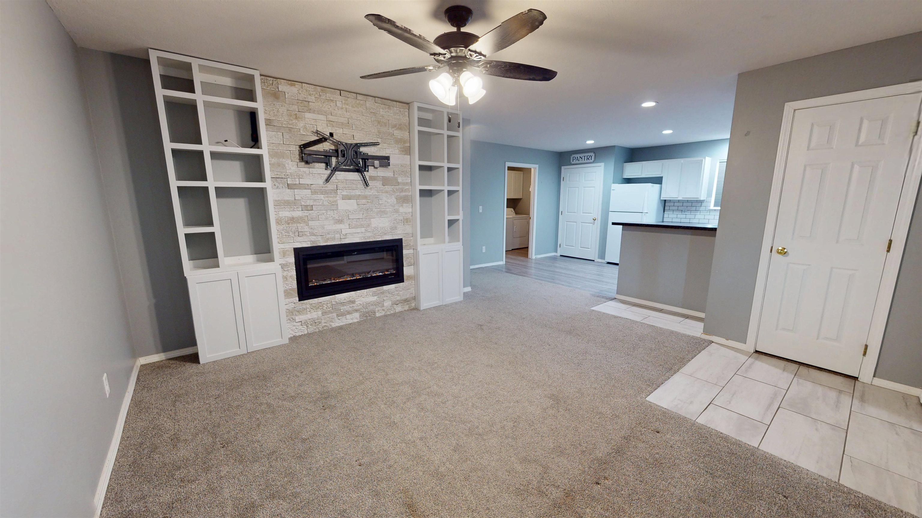 Featuring stylish gray tones throughout, this home feels fresh, inviting, and move-in ready. Step inside to a welcoming living area anchored by a fireplace insert surrounded by built-in cubbies — the perfect spot to relax or entertain. The primary bedroom offers a peaceful retreat with a walk-in closet and a private en-suite bathroom. Built-ins in several closets add both function and flair, providing smart storage solutions throughout. Enjoy outdoor living in the fully fenced backyard or unwind on the upgraded front porch or newly fenced side patio. Practical improvements like the expanded driveway add convenience and curb appeal. Though modest in size, every inch of this home has been thoughtfully designed for modern living — stylish, cozy, and easy to love! Schedule your showing today! One of the sellers is a licensed real estate agent in the state of Nebraska.
