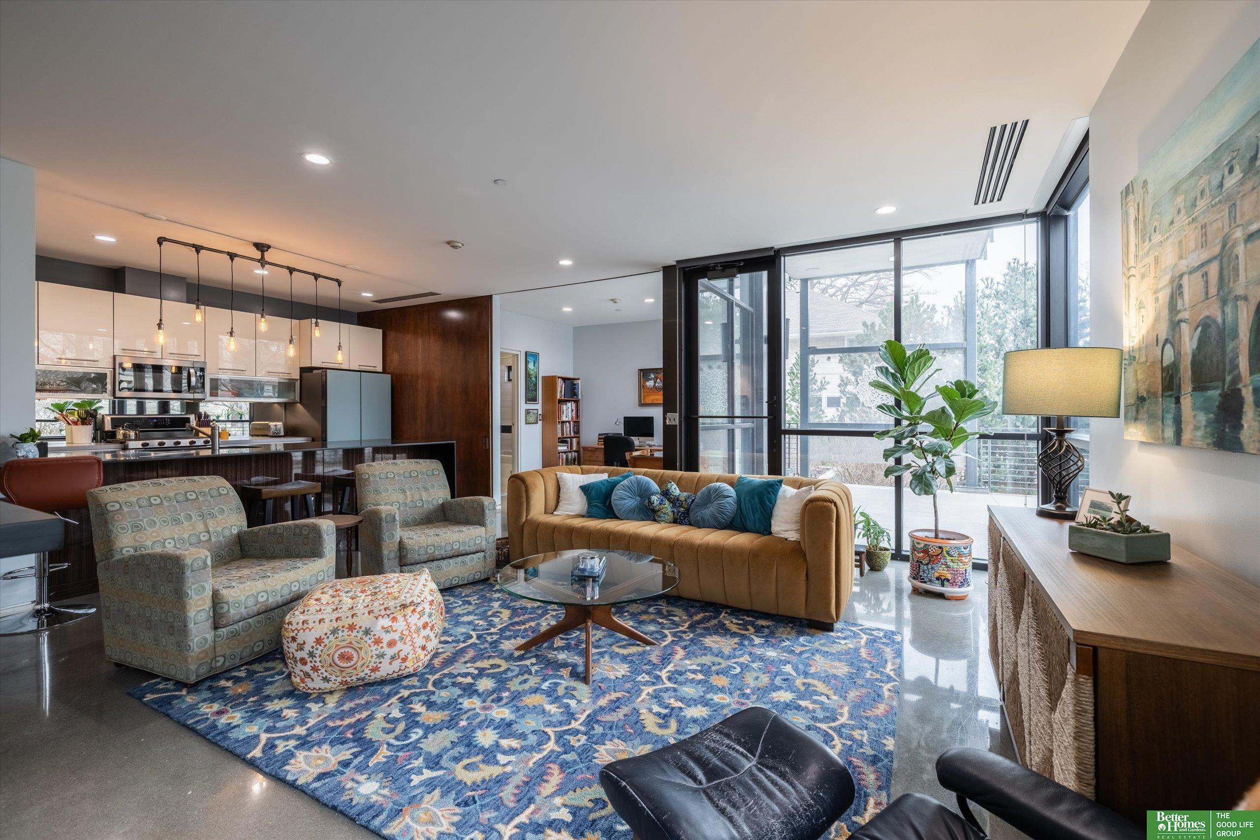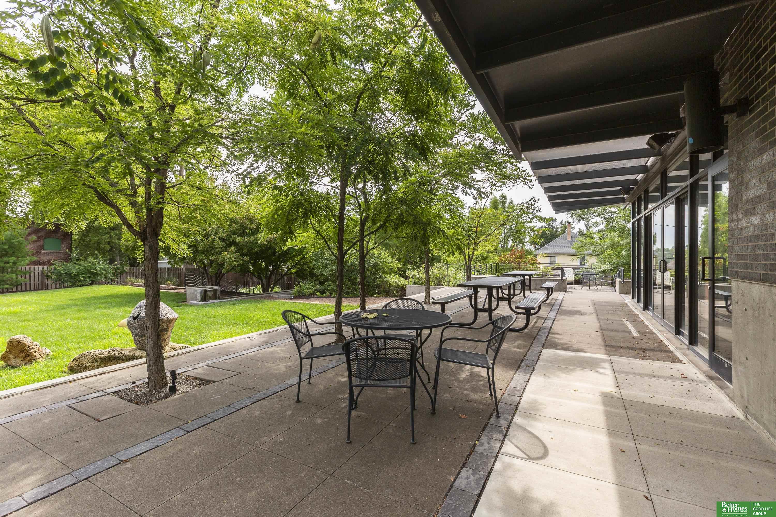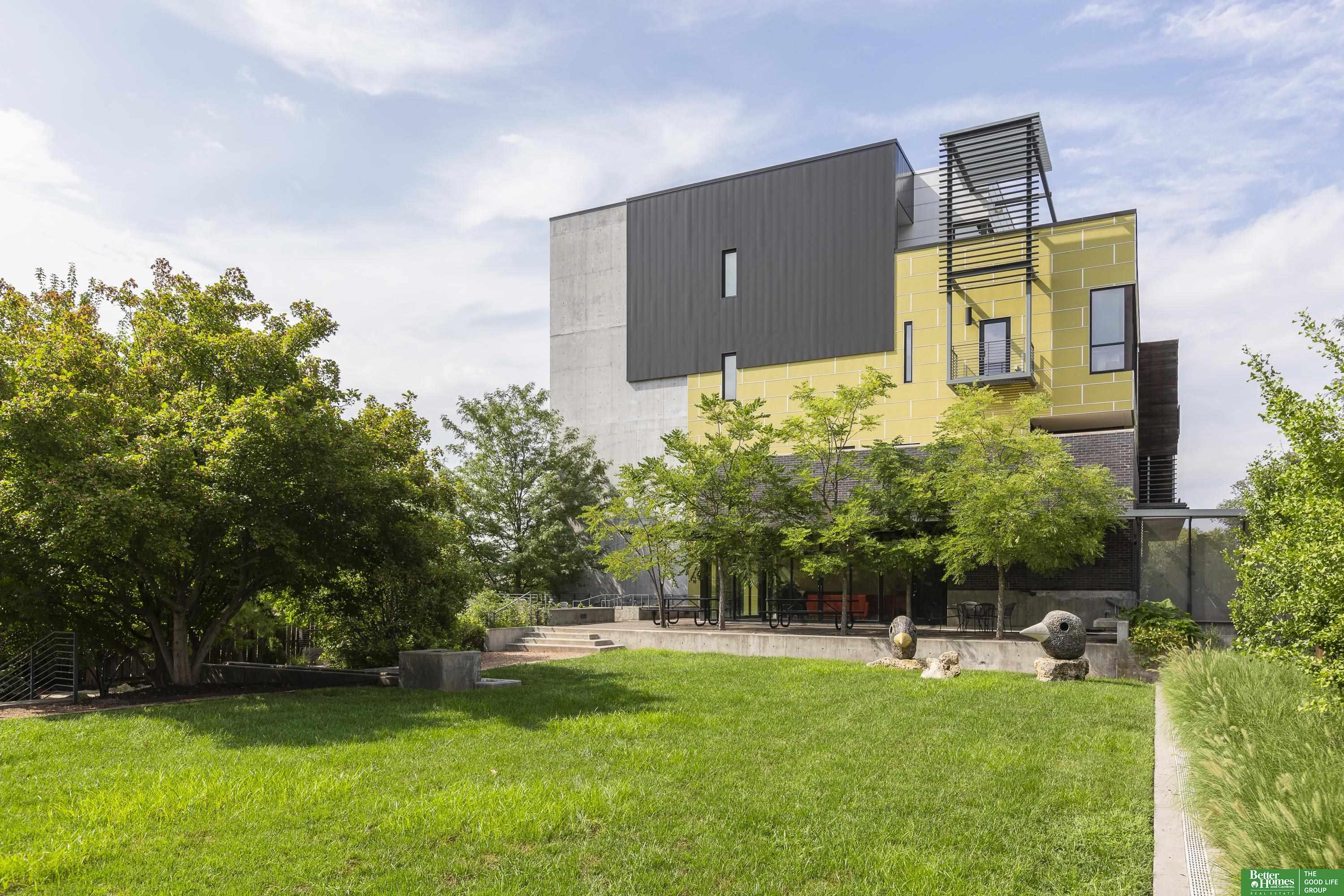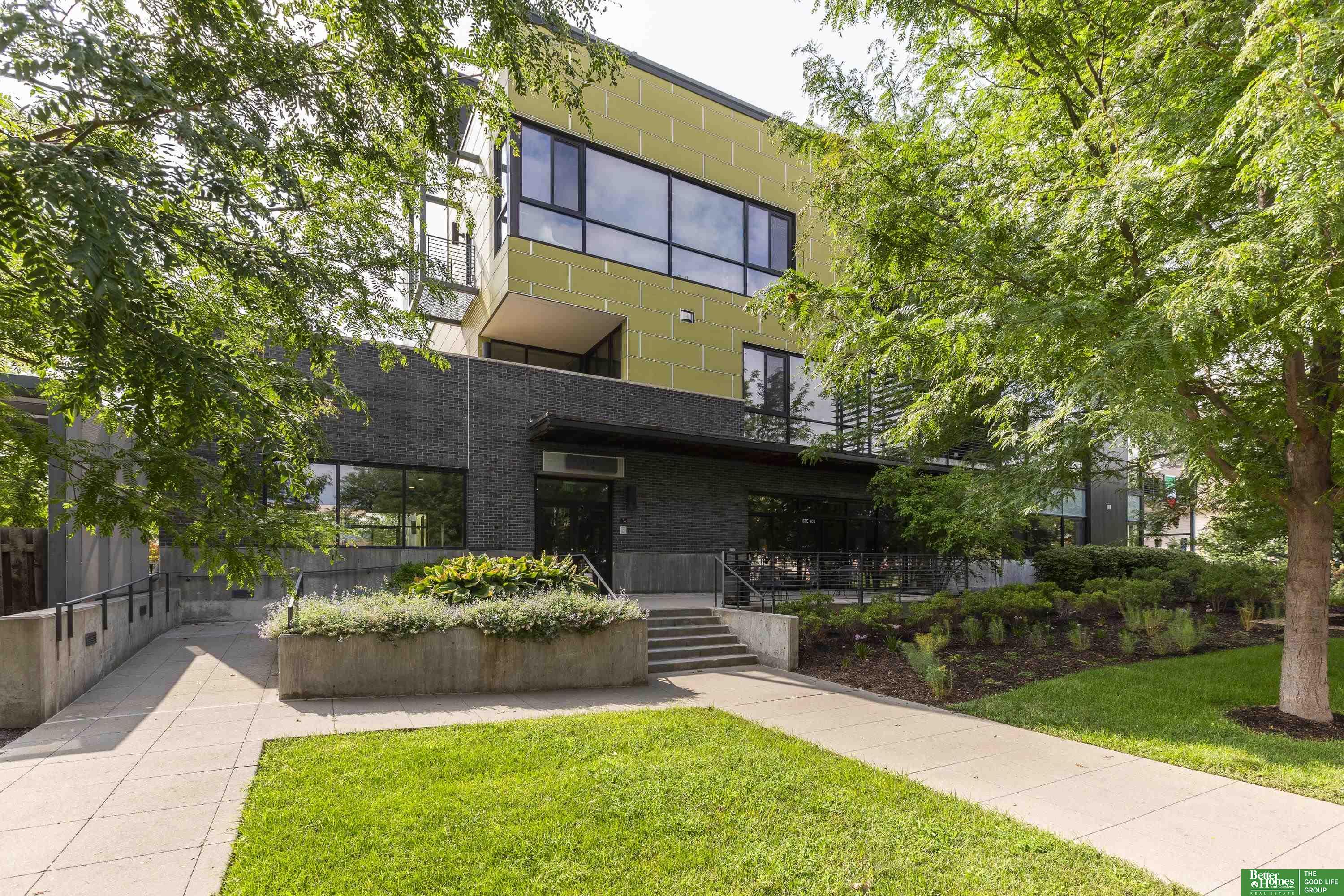 CO2 condominiums are a true Omaha art piece! This LEED certified residential building is nestled in a quiet neighborhood just blocks to Little Bohemia, The Old Market or the Zoo! Condo 108 is a beautifully designed condo featuring a spacious primary suite with walk-in closet and beautifully tiled shower. Den space makes for a perfect office or guestroom and has an attached bath or leave the beautiful accent door open to extend the living room space. Open floor plan with walls of windows, double sided gas fireplace and polished concrete flooring add to the contemporary style. Designer kitchen open for entertaining. Relax on the HUGE and private (17 x 15) covered patio and watch the world go by. Underground parking, community room, fitness room, amazing private green space with a waterfall and pond! This is a true gem right in the middle of all the hustle and bustle. The 1577 square feet includes the 338 sqft private patio. Interior condo square feet is 1239 sqft.
