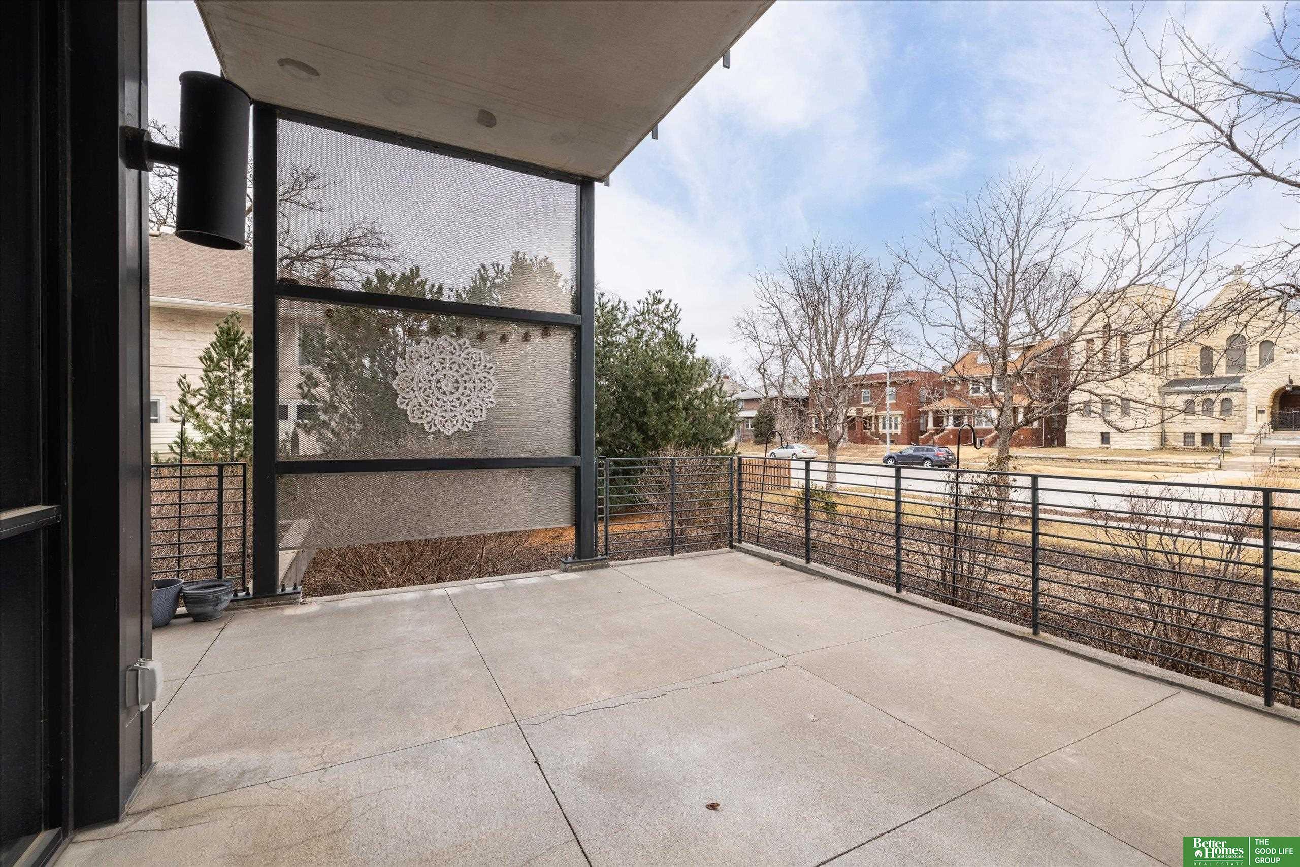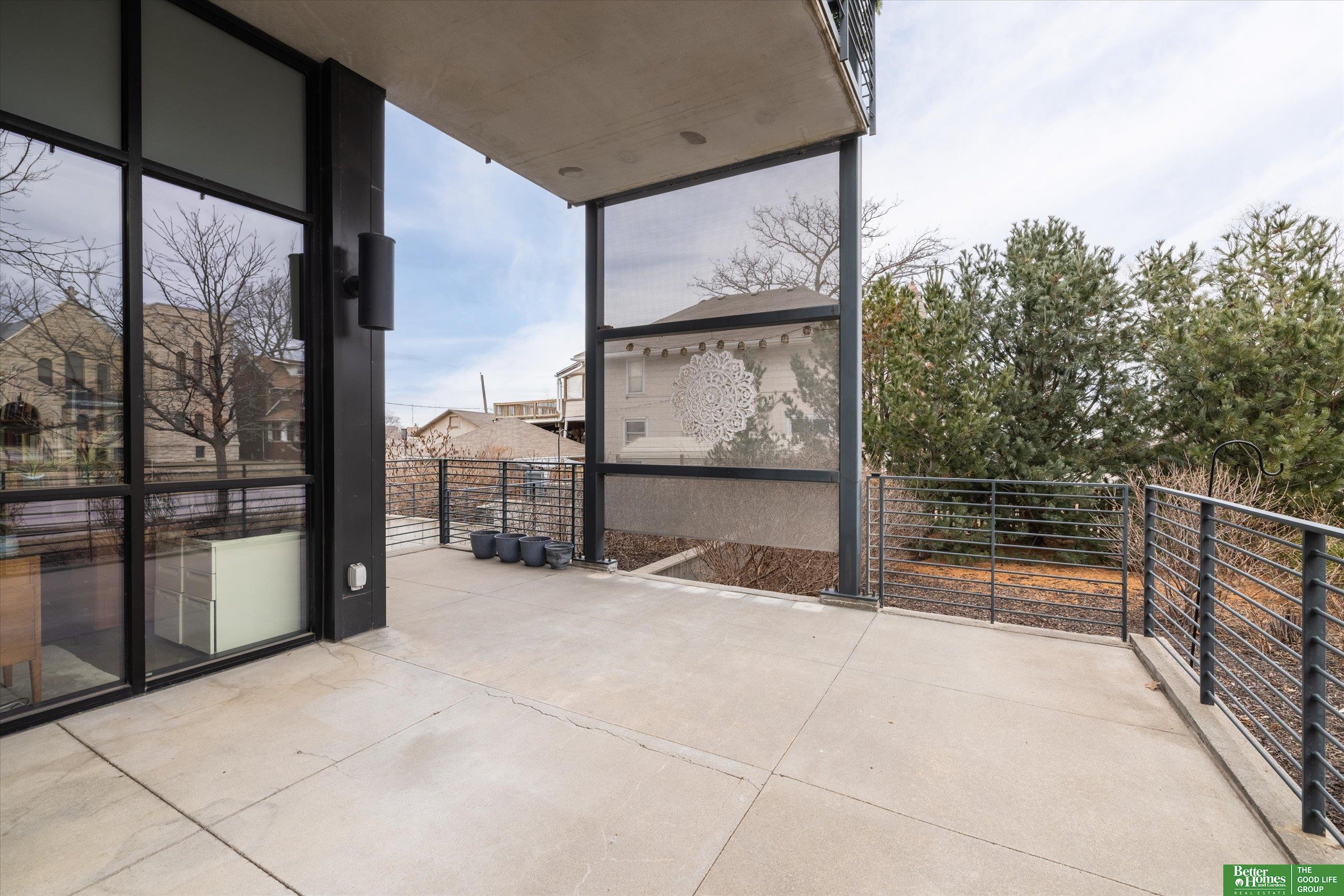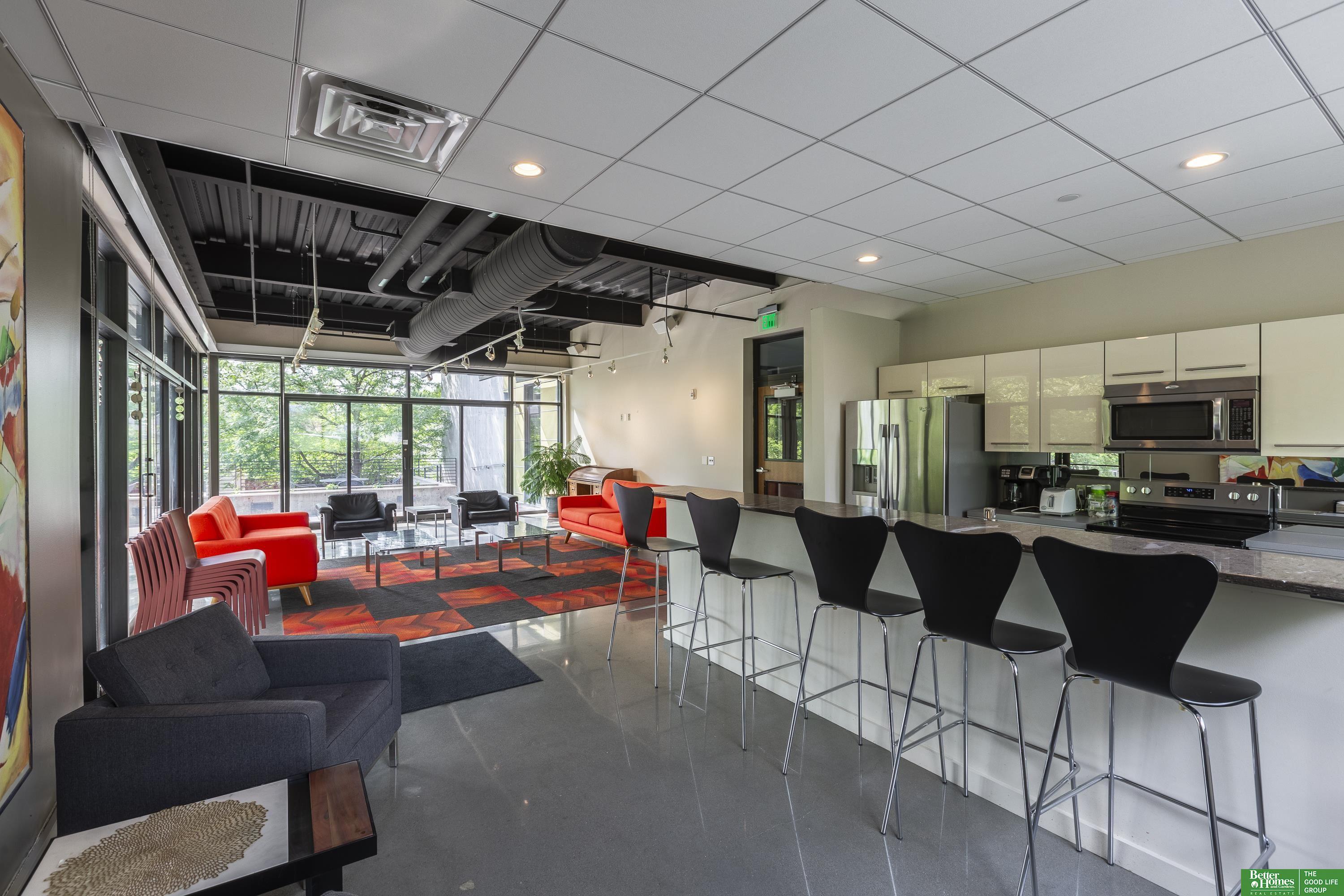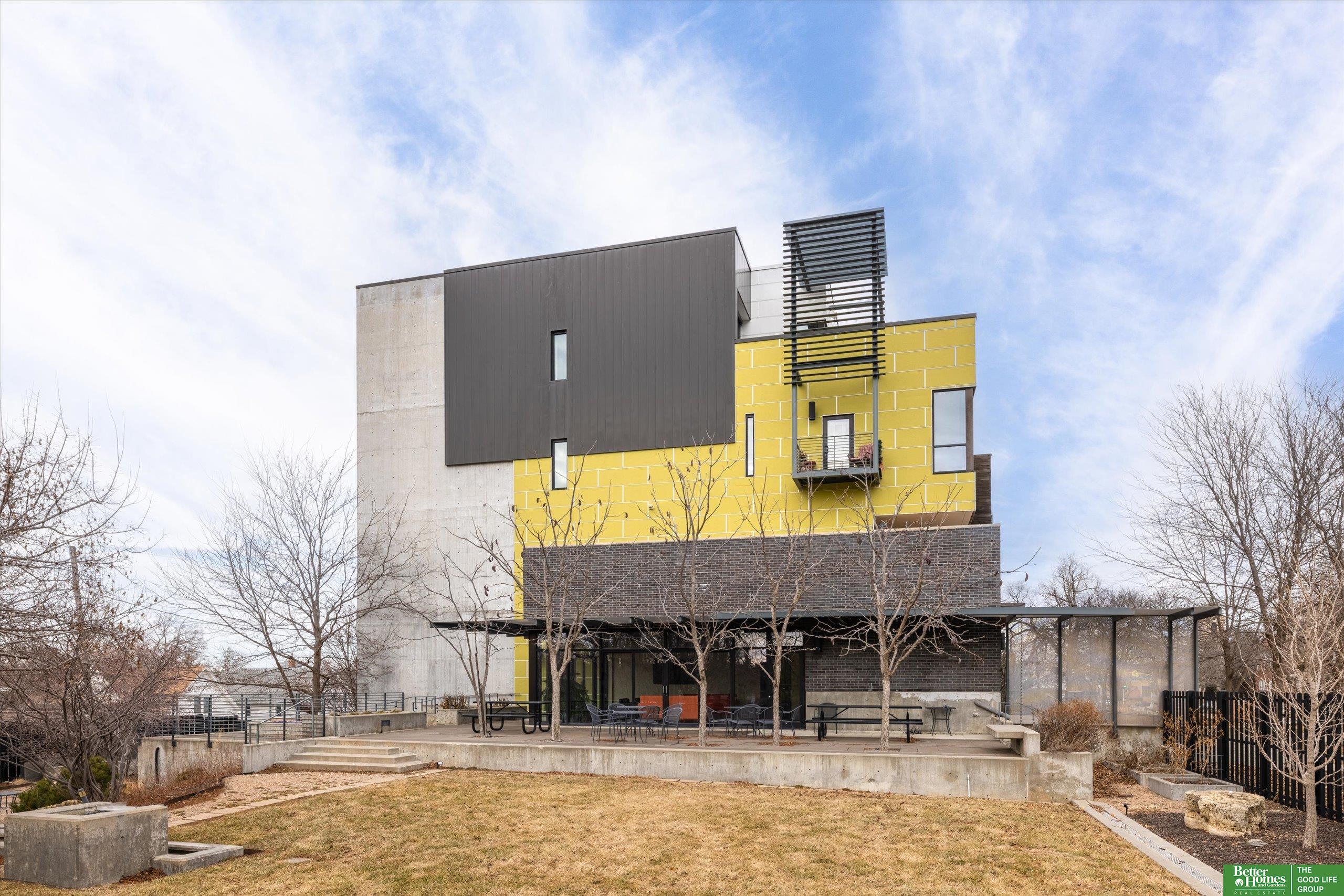 CO2 condominiums are a true Omaha art piece! This LEED certified residential building is nestled in a quiet neighborhood just blocks to Little Bohemia, The Old Market or the Zoo! Condo 108 is a beautifully designed condo featuring a spacious primary suite with walk-in closet and beautifully tiled shower. Den space makes for a perfect office or guestroom and has an attached bath or leave the beautiful accent door open to extend the living room space. Open floor plan with walls of windows, double sided gas fireplace and polished concrete flooring add to the contemporary style. Designer kitchen open for entertaining. Relax on the HUGE and private (17 x 15) covered patio and watch the world go by. Underground parking, community room, fitness room, amazing private green space with a waterfall and pond! This is a true gem right in the middle of all the hustle and bustle. The 1577 square feet includes the 338 sqft private patio. Interior condo square feet is 1239 sqft.