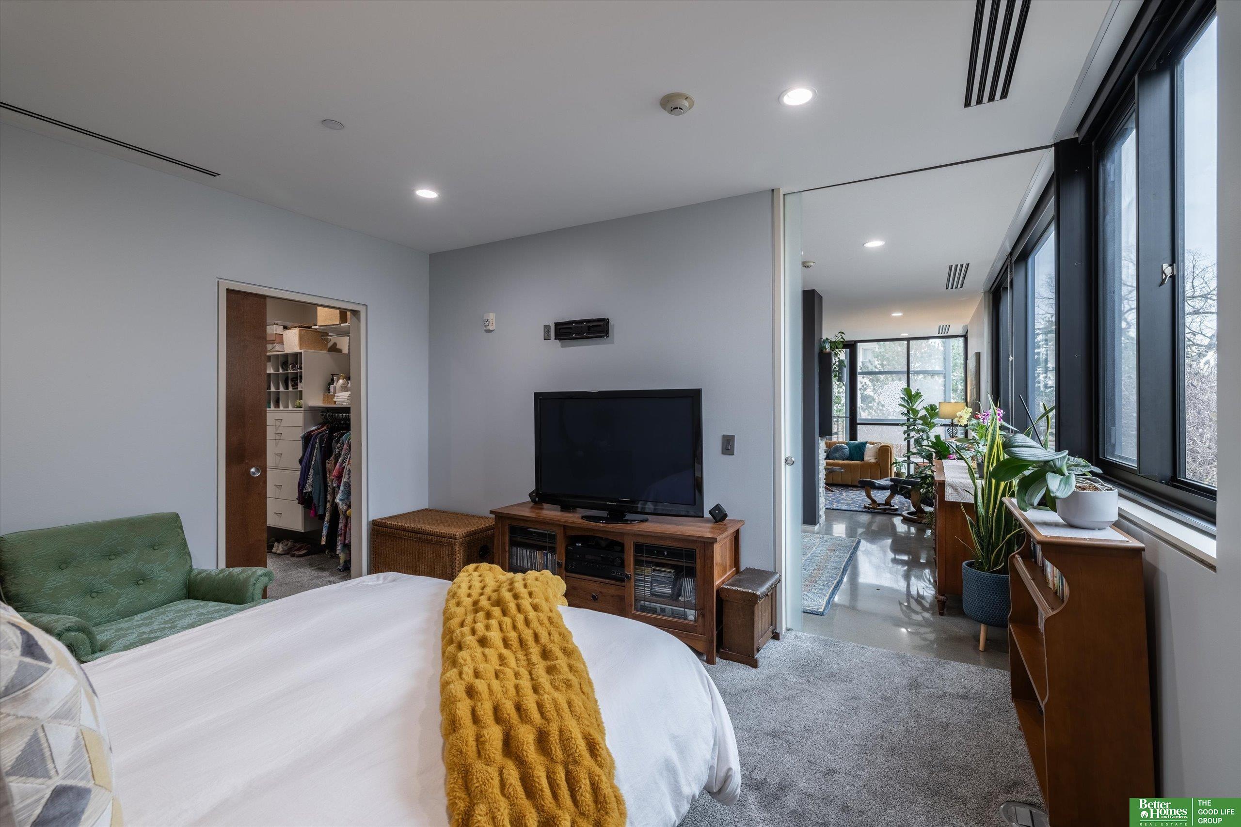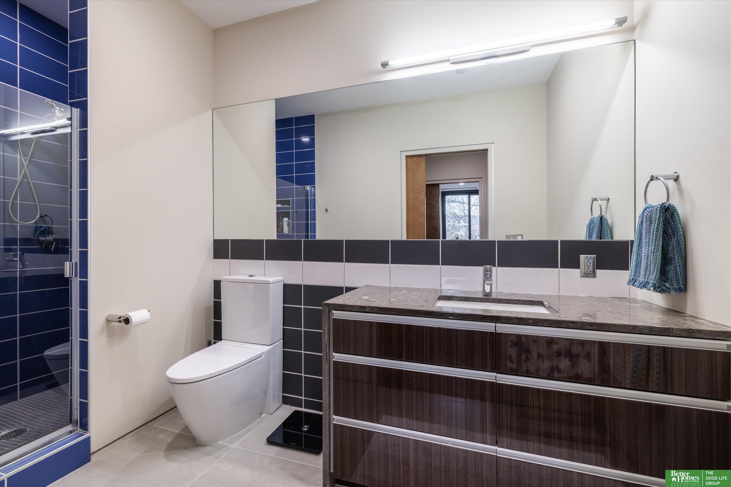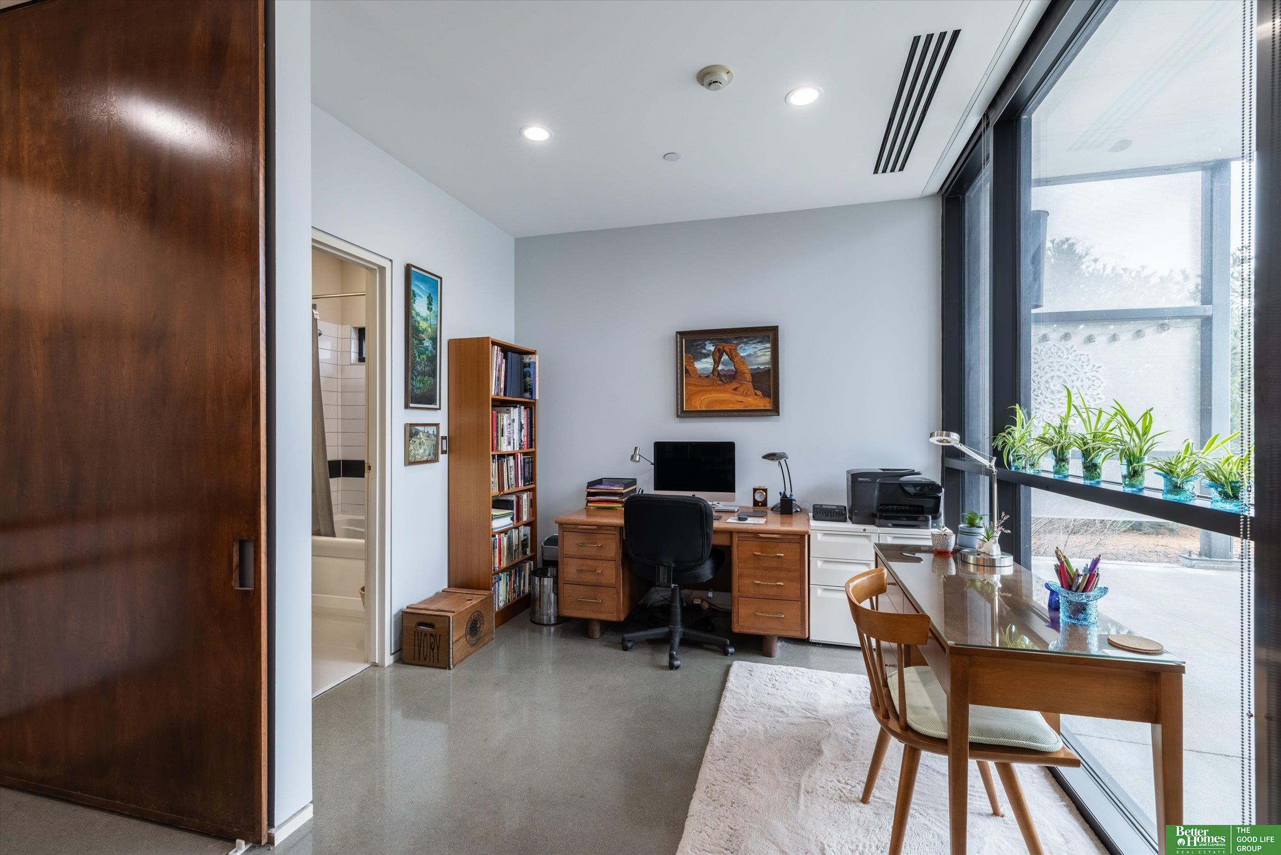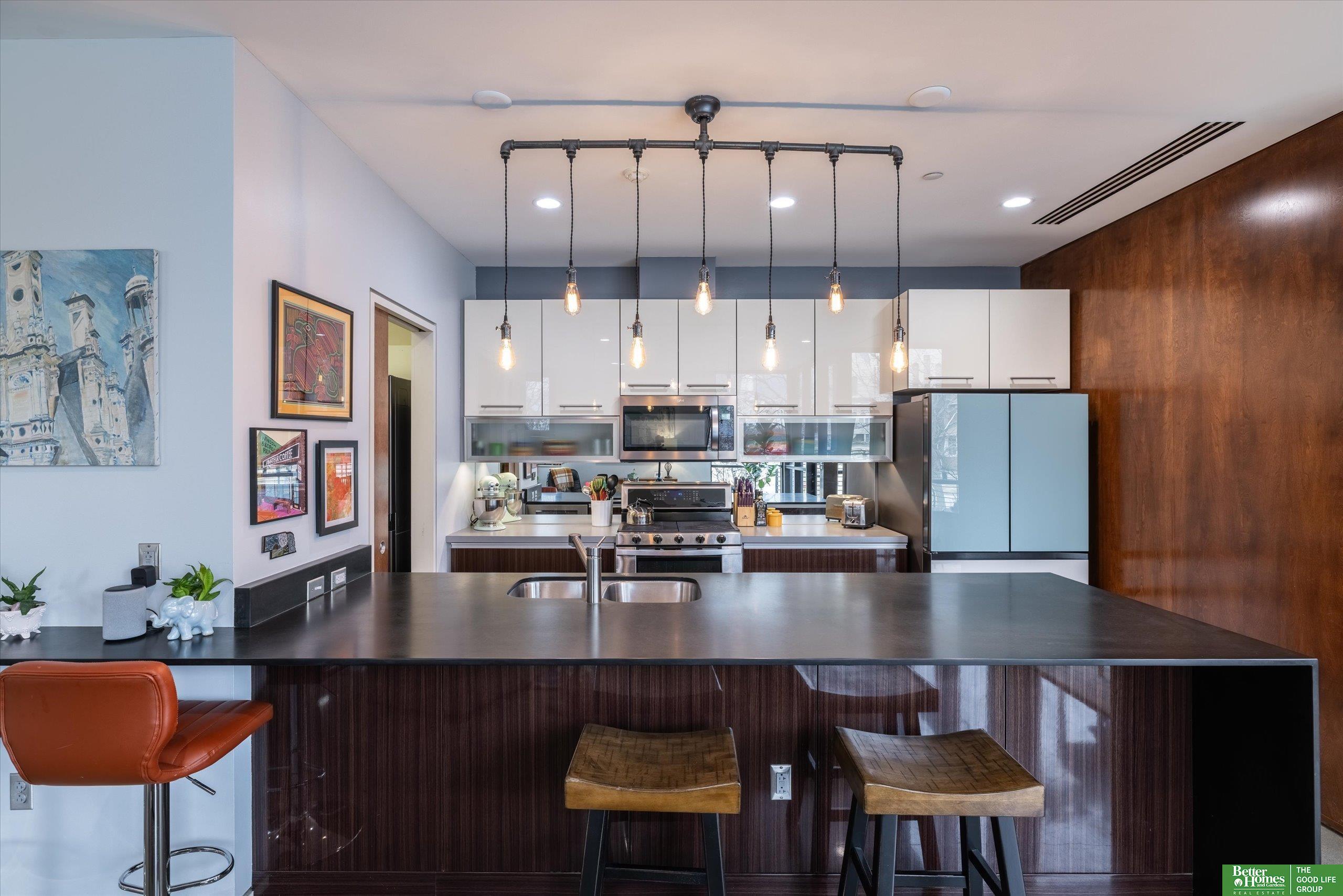 CO2 condominiums are a true Omaha art piece! This LEED certified residential building is nestled in a quiet neighborhood just blocks to Little Bohemia, The Old Market or the Zoo! Condo 108 is a beautifully designed condo featuring a spacious primary suite with walk-in closet and beautifully tiled shower. Den space makes for a perfect office or guestroom and has an attached bath or leave the beautiful accent door open to extend the living room space. Open floor plan with walls of windows, double sided gas fireplace and polished concrete flooring add to the contemporary style. Designer kitchen open for entertaining. Relax on the HUGE and private (17 x 15) covered patio and watch the world go by. Underground parking, community room, fitness room, amazing private green space with a waterfall and pond! This is a true gem right in the middle of all the hustle and bustle. The 1577 square feet includes the 338 sqft private patio. Interior condo square feet is 1239 sqft.