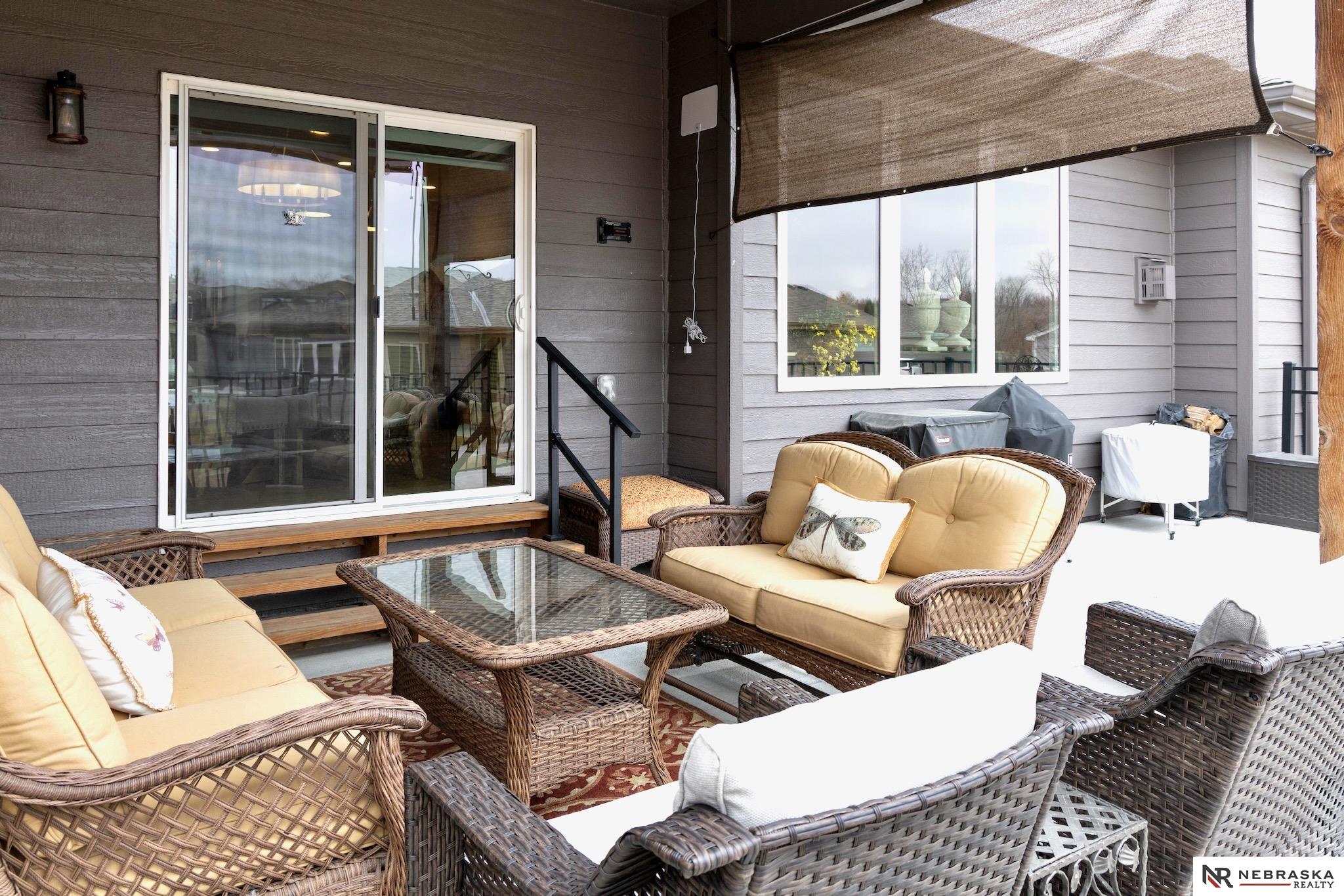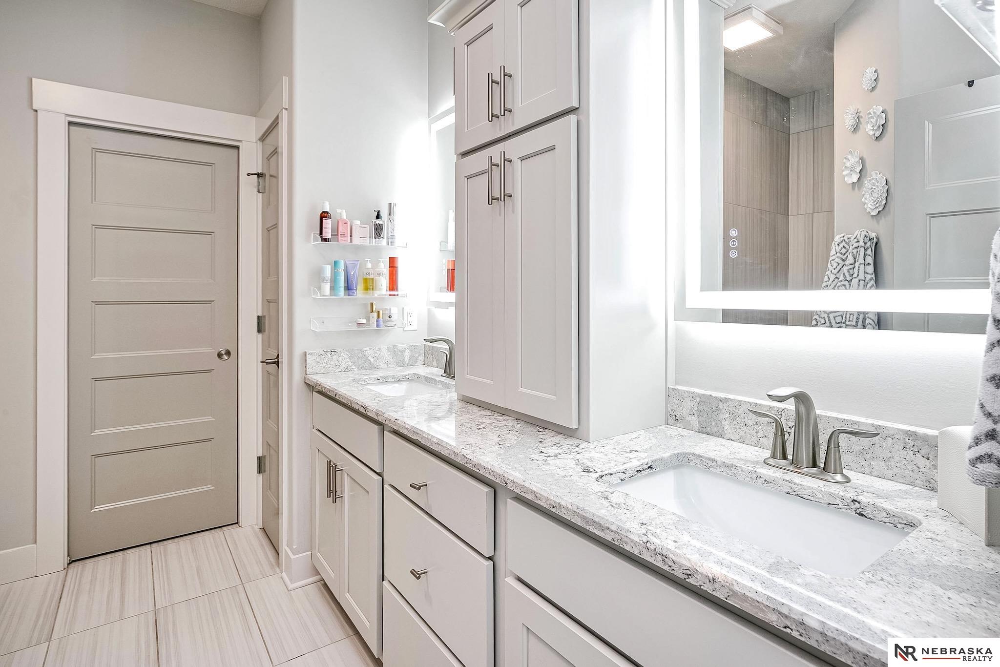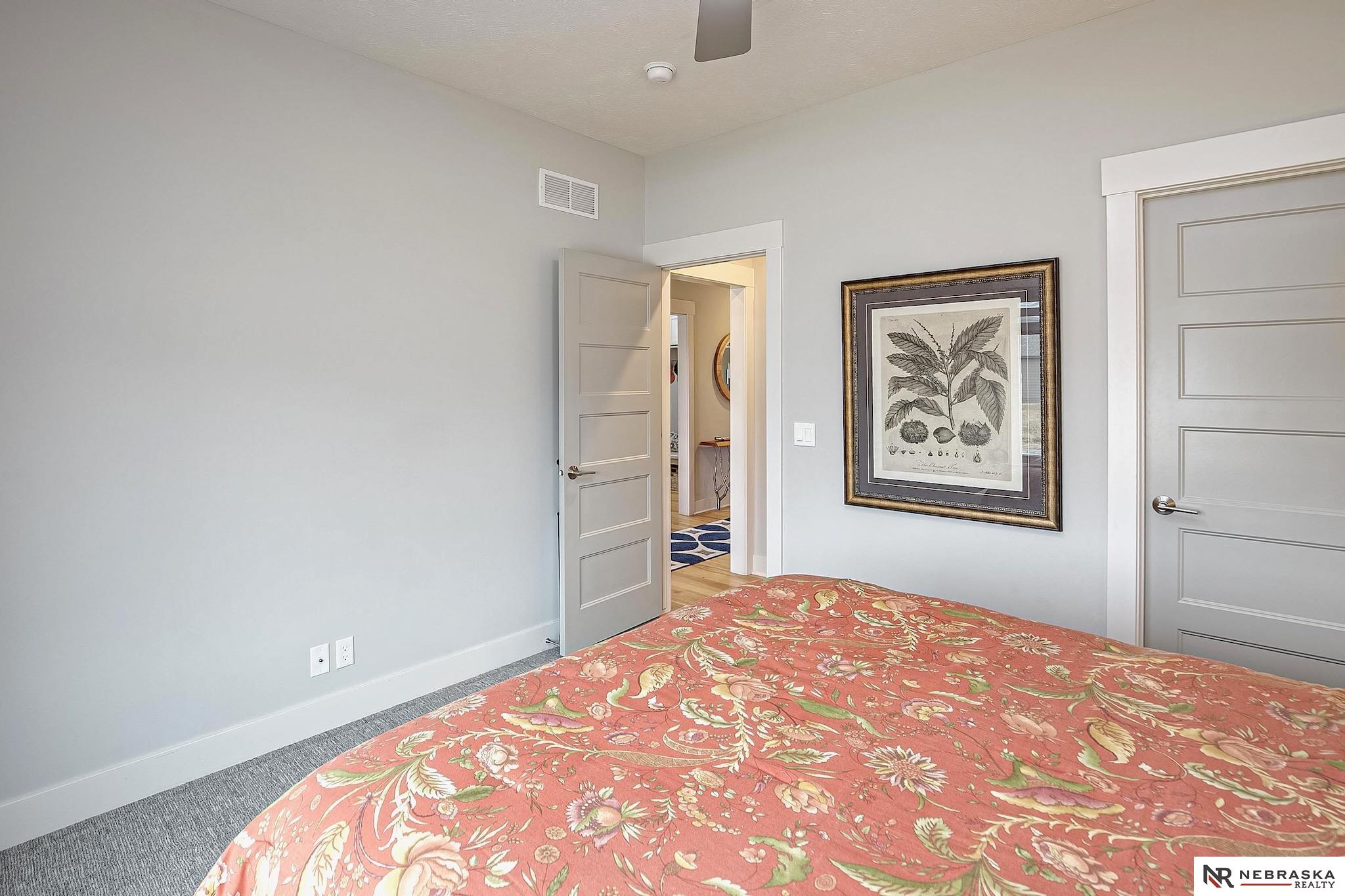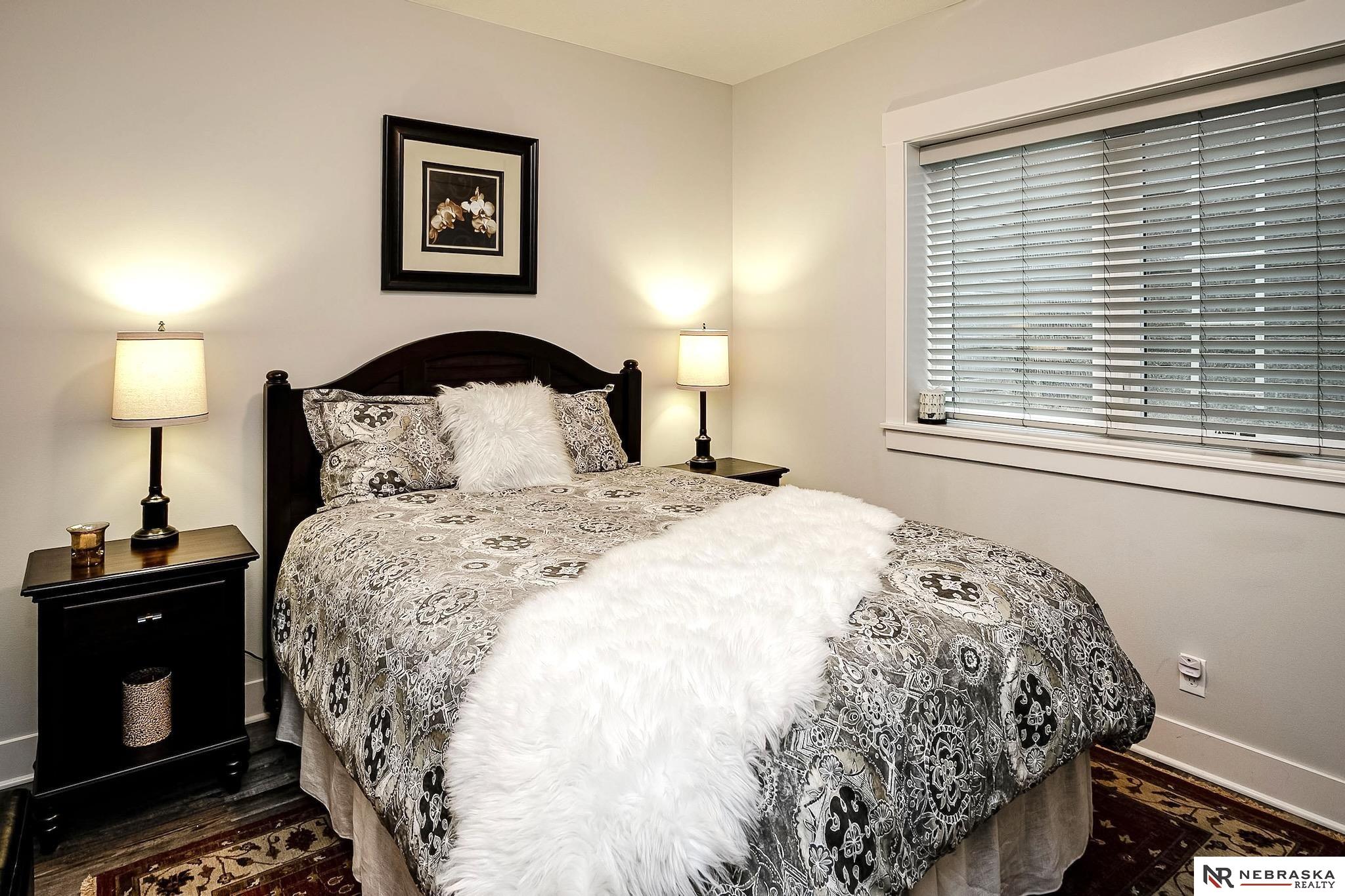 NW Omaha location. Snow & Lawn Care Optional! Overlooking peaceful green space. Partially covered fenced patio.Wood flooring in the kitchen & dining area compliment the updated Café range & dishwasher plus a walk-in pantry. Newer Karastan carpet. Stunning floor-to-ceiling stone fireplace & abundant natural light. Spacious primary suite features sconce lighting & room for a king bed. Large closet includes pocket-door access to the laundry with additional cabinetry added. Primary bath includes double vanities, private toilet & large tiled shower. Second main-floor bedroom with walk-in closet, sits near the full bath. Convenient drop zone with bench leads to garage, The finished lower level includes a huge open family room, bedroom with oversized walk-in closet, and ¾ bath. The spacious storage room features utility sink & extra hobby area. Extra tall garage. Steps away from Waterford lake & trails, 2 pools & clubhouse. New roof & gutters 11-24, Ext. paint 4-25, Int. paint 3-26.