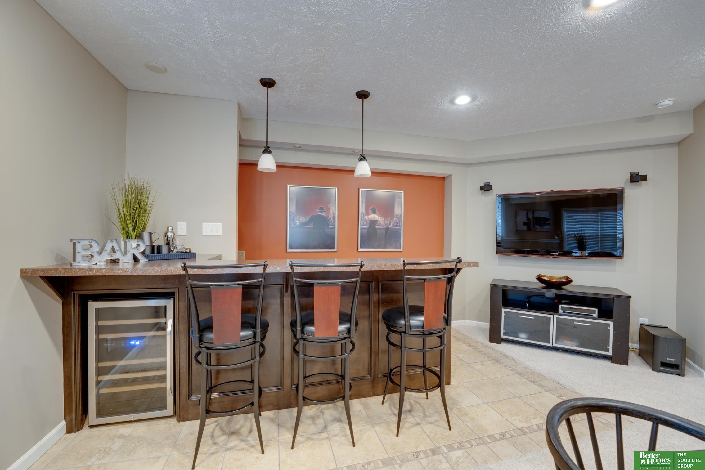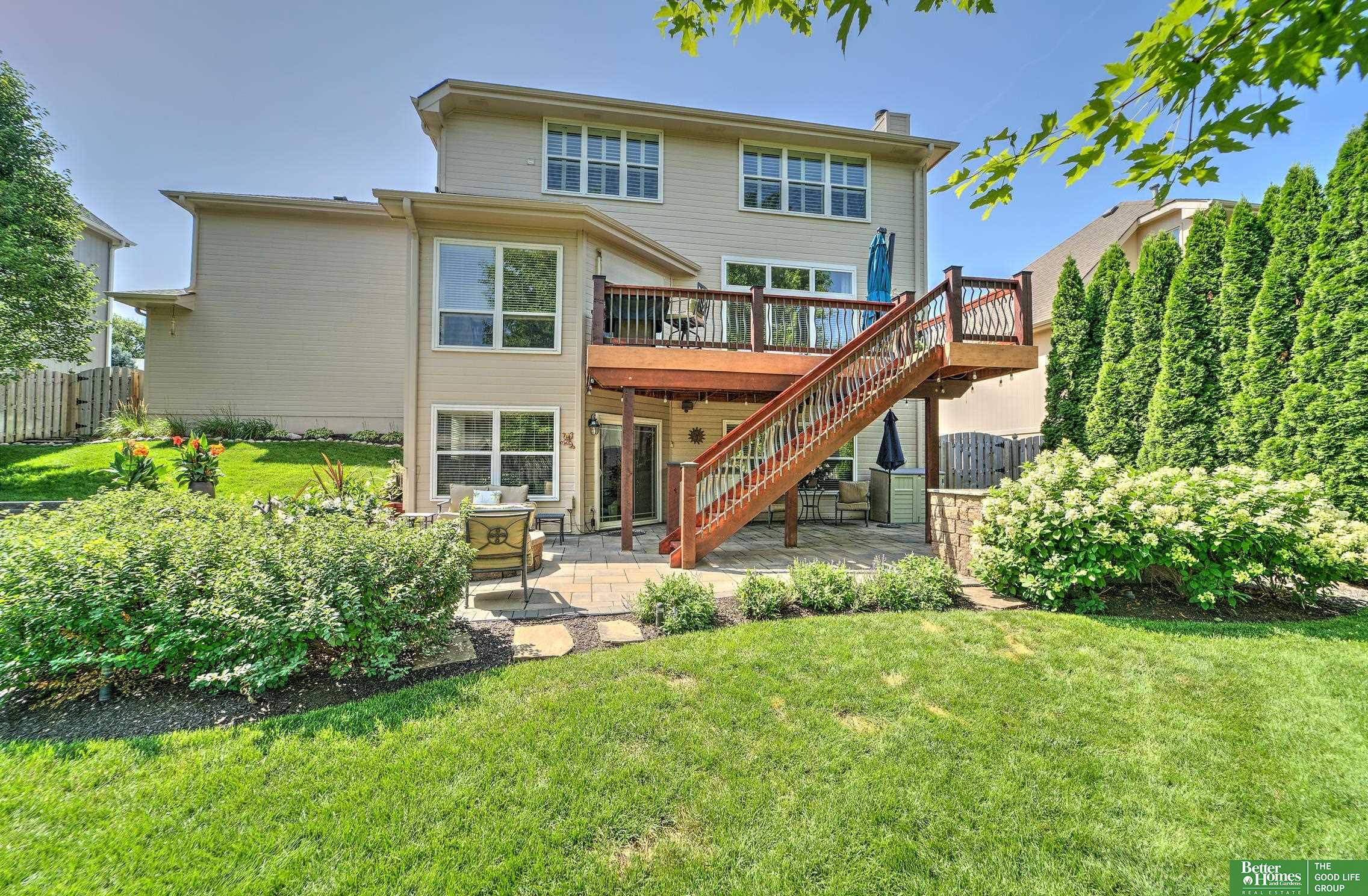 Stunning 2-story in sought-after Cinnamon Creek! Beautifully designed kitchen featuring a large island, SS appliances, pantry with a seamless flow into the family room. Enjoy cozy evenings by the fireplace! Custom built-ins and great natural light plus dinning room. Tile flooring throughout the main level.The spacious primary suite is a true retreat with a remodeled bath (2025) complete with soaker tub and walk-in closet. Three generously sized bedrooms, updated full bath plus 2nd floor laundry. The finished lower level is ideal for entertaining, complete with rec room, bar, 3/4 bath, and 5th bed. Step outside to your backyard oasis featuring a patio, gas fire pit, professionally landscaped and an impressive outdoor kitchen with two Weber grills, perfect for hosting and relaxing! Composite deck and full privacy fence. New roof ('19),windows('16), Unbeatable location - walking distance to Millard West and just minutes from shopping, dining and parks. This home truly has it all!