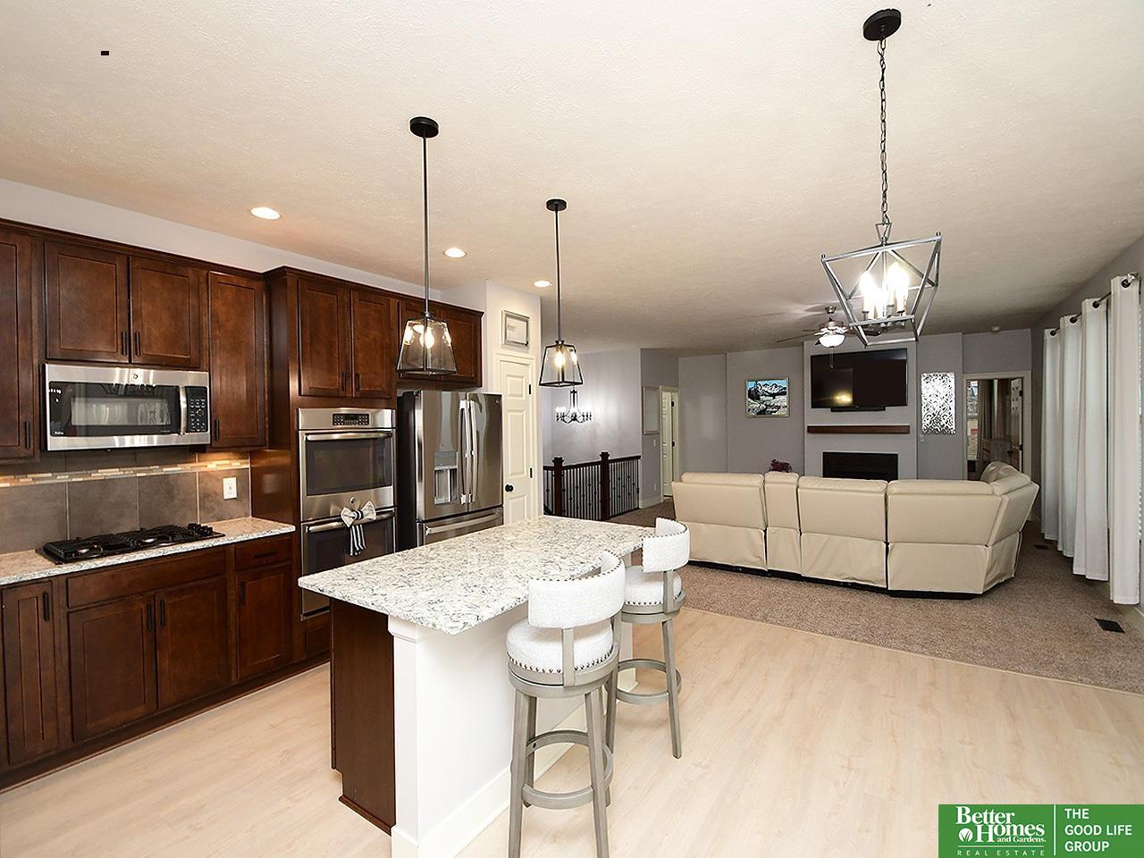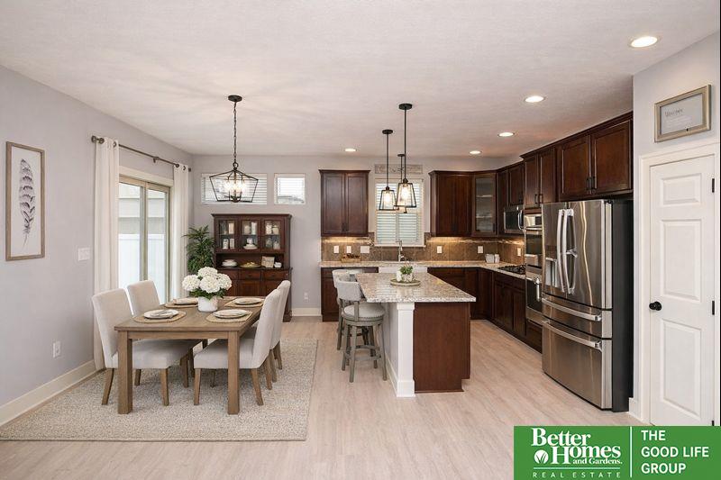 **OPEN HOUSE 3.14 10:30a-11:30a** Fall in love with the upgrades and inviting spaces. Kitchen shines w new LVP (2024), SS appliances, gas stove, double oven, wine fridge. Plus, the new refrigerator (2024) stays, along with all other appliances, making this home truly move-in ready. Comfort and functionality flow throughout with a new furnace (2025) and new roof (2025), plus a newly caulked driveway for added curb appeal. Step outside to your above-ground pool with equipment included, perfect for those sunny Nebraska days. The primary suite has an updated shower (2025) and a walk-in closet complete with custom built-ins. Enjoy year-round ambiance with Gemstone permanent exterior lighting (2025)—perfect for holidays or game days. LL offers the potential for a 4th bedroom, providing flexible space for guests, a home office, or a growing family. Located in a desirable SW Omaha neighborhood with quick access to parks, schools, and amenities. (Some photos virtually staged)