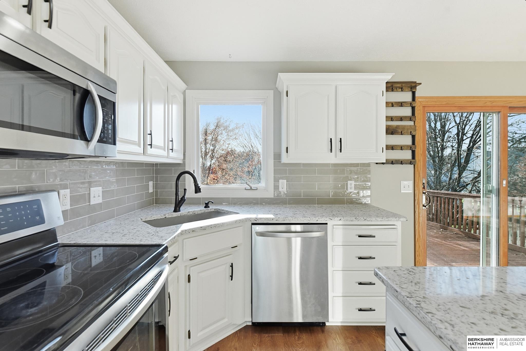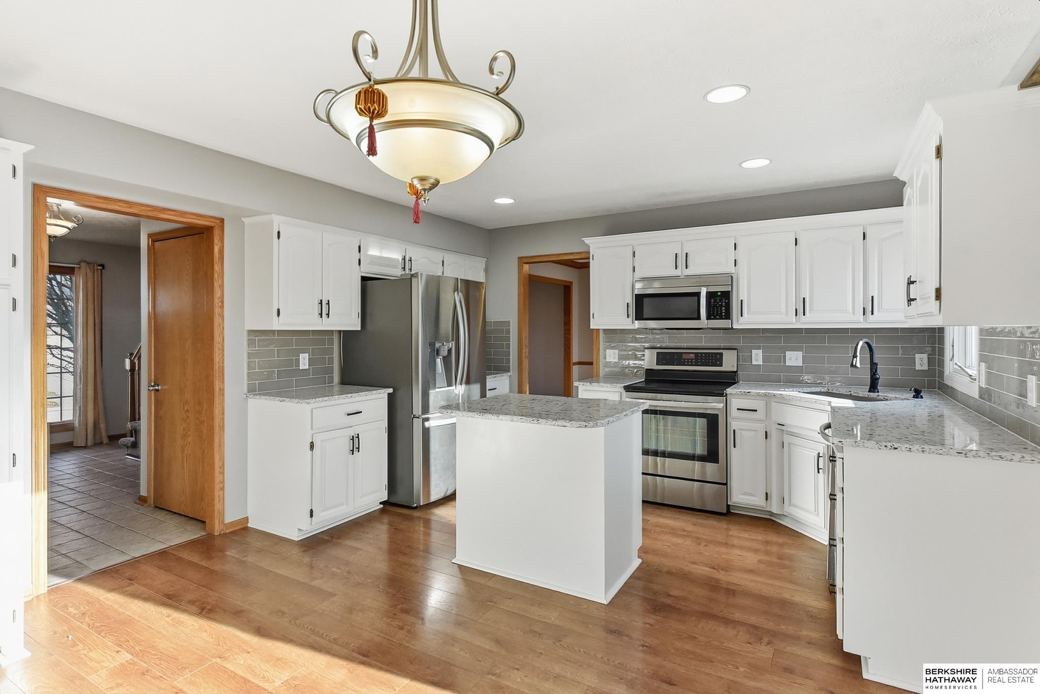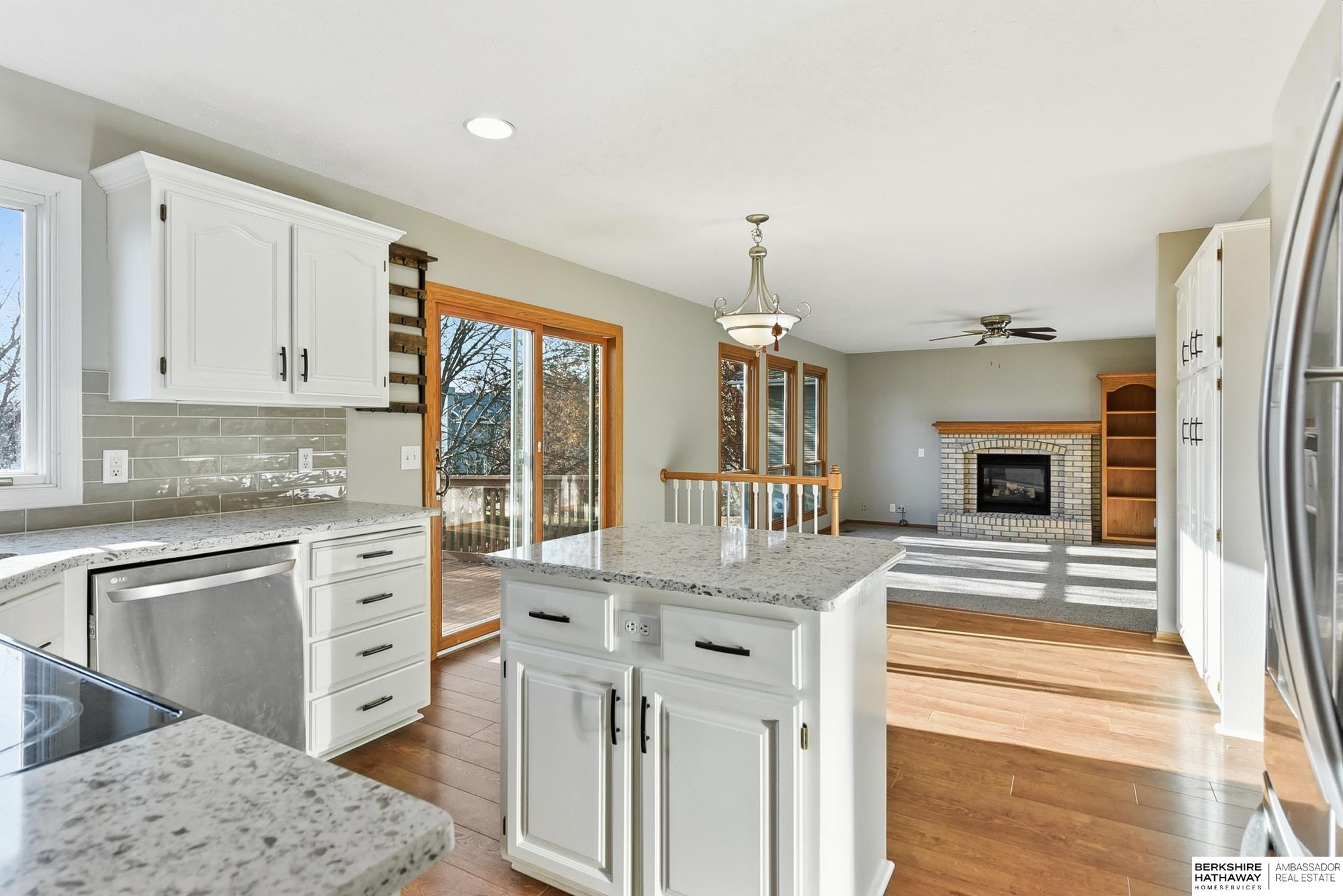 Contract Pending Updated home in the popular Eagle Ridge, Papillion neighborhood! Perfect location just 2 blocks from Rumsey Station Elem, playground and close to neighborhood park, trails and green space for play! Beautifully updated home offering newer, warm neutral paint and carpet, living room, dining room and spacious family room-including built-ins and cozy gas fireplace-just in time for cold weather! Enjoy cooking in your updated kitchen with white crisp cabinets, Granite countertops, SS appl., awesome island for entertaining & baking and rich hardwood floors! Upstairs you will find the conveniently located laundry rm, nice size bedrooms & a Full Bath, dual sinks, whirpool tub-shower in the Primary Suite! Plenty of space for all in this home as kids and family will love the walkout finished basement- complete with a wetbar for those movie snacks & drinks, Addtl. Family room for games & hanging out and a 3/4 BA. Fenced yard, sprinkler system and plenty of storage too!