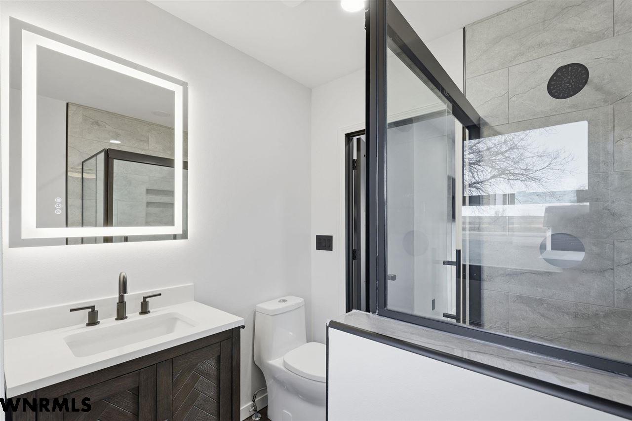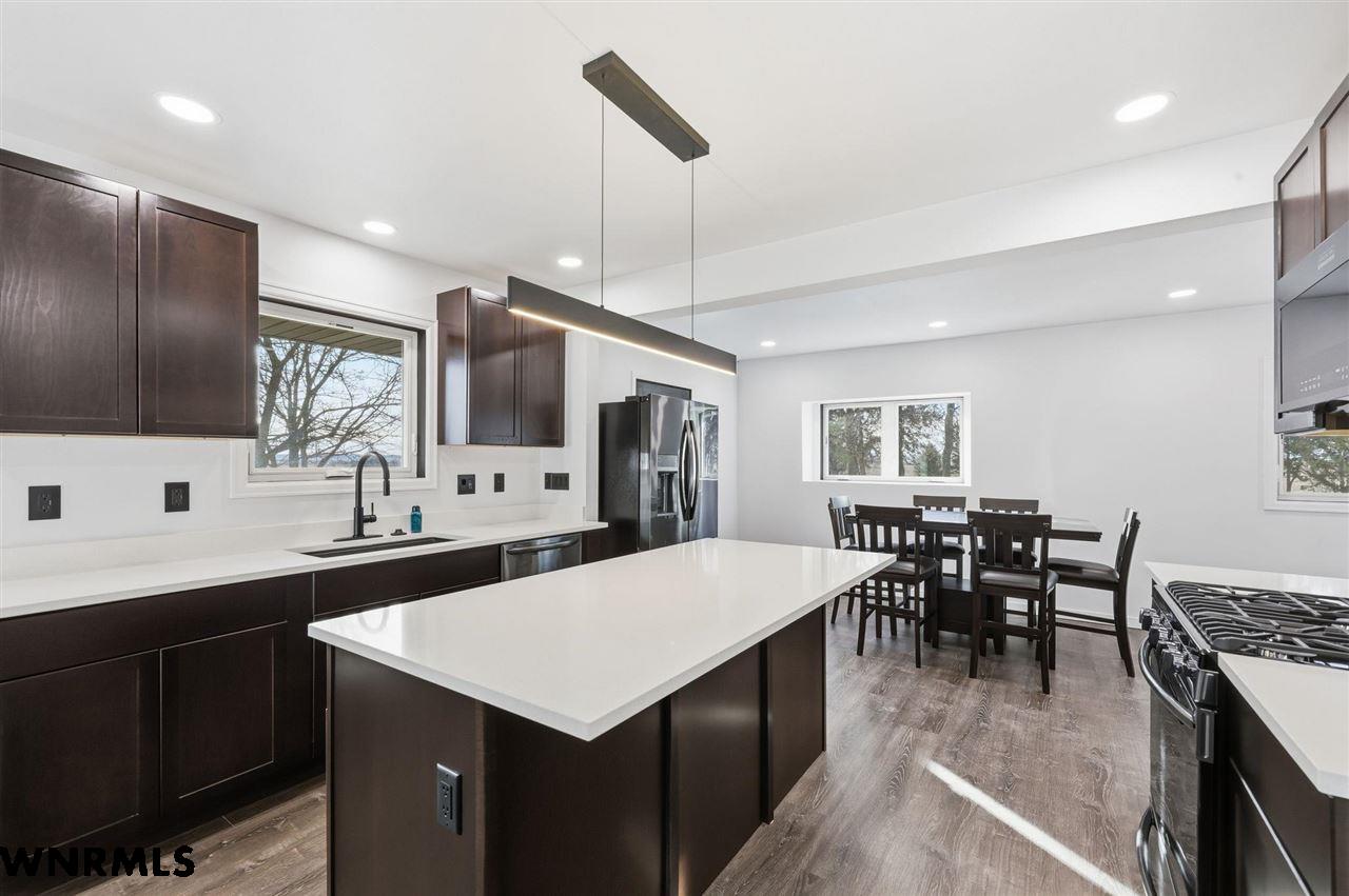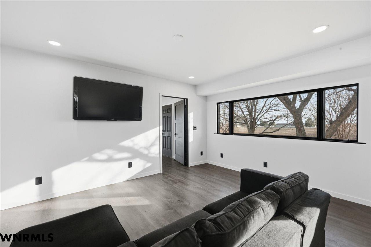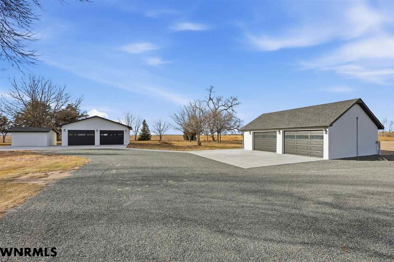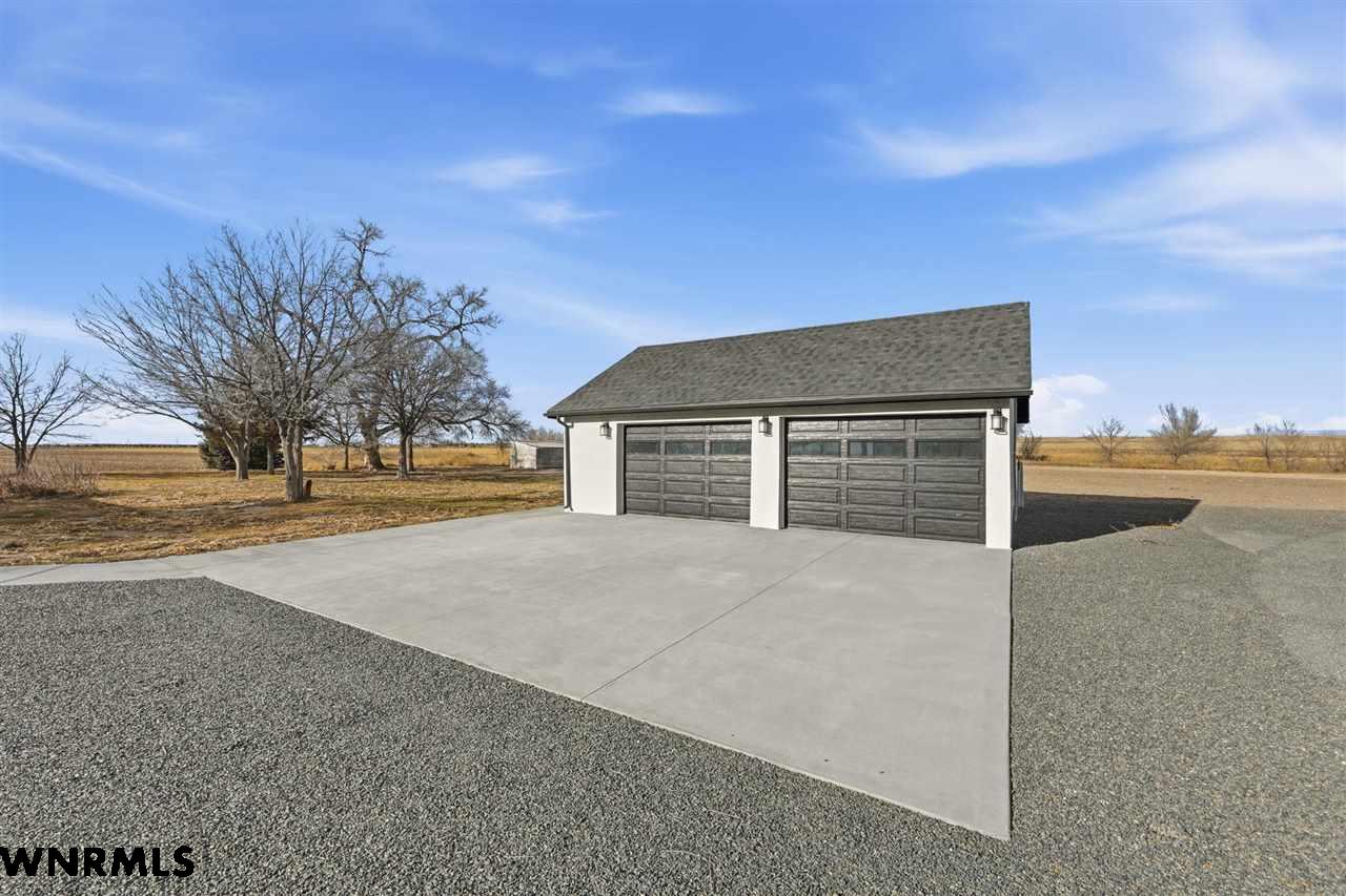 This beautiful, recently remodeled home sits on two acres roughly a quarter of a mile North of Highland Road and half a mile East of Lacy Park in Scottsbluff, NE. This stunning property offers a private escape from the city while also offering the convenience of being less than 10 minutes away from the heart of downtown Scottsbluff. The property features two finished detached garages and a small storage shed as well as room for an additional building. The home comes with a large 469 square foot wood deck overlooking a beautiful yard with over 30 mature trees and a new underground sprinkler system. All of the structures on the property have new stucco and new asphalt roofs. The North garage is 768 square feet with two new insulated overhead doors and features a small lighted storage area above. The garage closer to the home is new and slightly larger at 900 square feet and also features two new insulated overhead doors. Between the two garages is new colored concrete. The property is also on a well system and has two septic tanks. This home comes complete with four bedrooms, two living rooms, one full bathroom, two 3/4 bathrooms, a laundry/utility room, and a pantry. The water heater, plumbing, wiring, flooring, carpet, doors, cabinets, toilets, mirrors, vanities, switches, fixtures, and trim are all new. All the windows in the kitchen are new Pella windows. It features a modern kitchen with new quartz counters and brand-new Frigidaire Gallery appliances. The home also incorporates a new water softening system as well as central air. Taxes and parcel may change due to new survey. Basement bedroom windows my not be conforming.