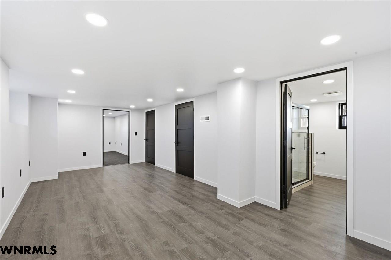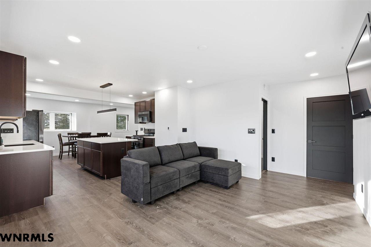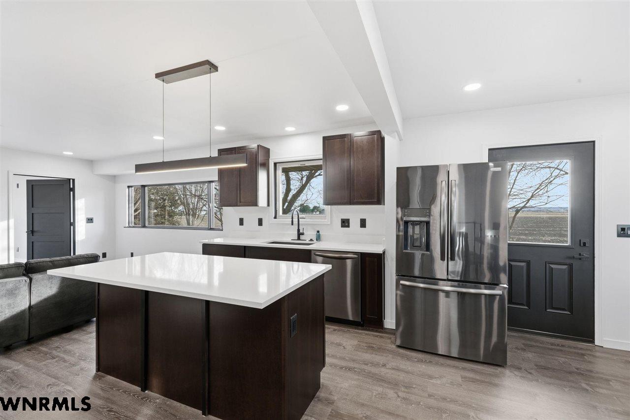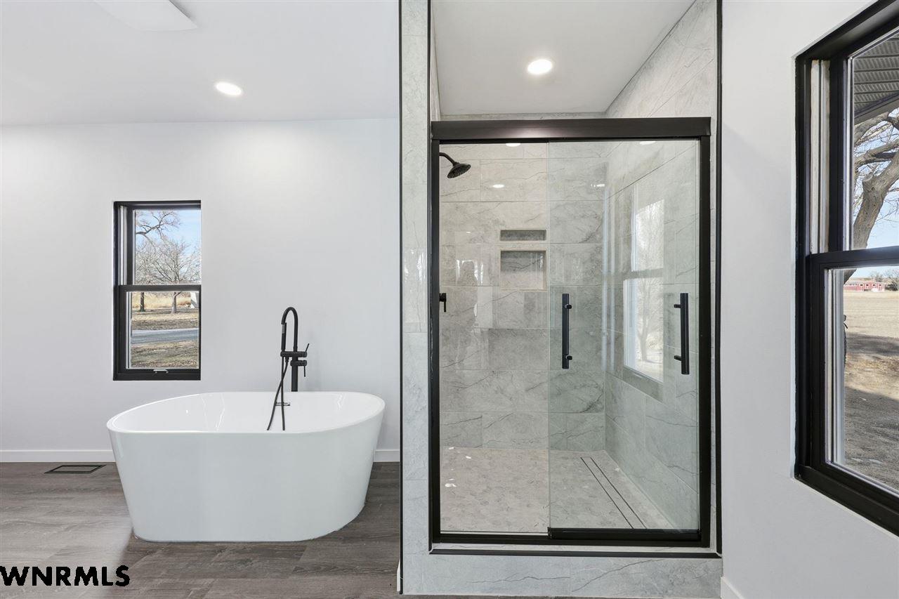 This beautiful, recently remodeled home sits on two acres roughly a quarter of a mile North of Highland Road and half a mile East of Lacy Park in Scottsbluff, NE. This stunning property offers a private escape from the city while also offering the convenience of being less than 10 minutes away from the heart of downtown Scottsbluff. The property features two finished detached garages and a small storage shed as well as room for an additional building. The home comes with a large 469 square foot wood deck overlooking a beautiful yard with over 30 mature trees and a new underground sprinkler system. All of the structures on the property have new stucco and new asphalt roofs. The North garage is 768 square feet with two new insulated overhead doors and features a small lighted storage area above. The garage closer to the home is new and slightly larger at 900 square feet and also features two new insulated overhead doors. Between the two garages is new colored concrete. The property is also on a well system and has two septic tanks. This home comes complete with four bedrooms, two living rooms, one full bathroom, two 3/4 bathrooms, a laundry/utility room, and a pantry. The water heater, plumbing, wiring, flooring, carpet, doors, cabinets, toilets, mirrors, vanities, switches, fixtures, and trim are all new. All the windows in the kitchen are new Pella windows. It features a modern kitchen with new quartz counters and brand-new Frigidaire Gallery appliances. The home also incorporates a new water softening system as well as central air. Taxes and parcel may change due to new survey. Basement bedroom windows my not be conforming.