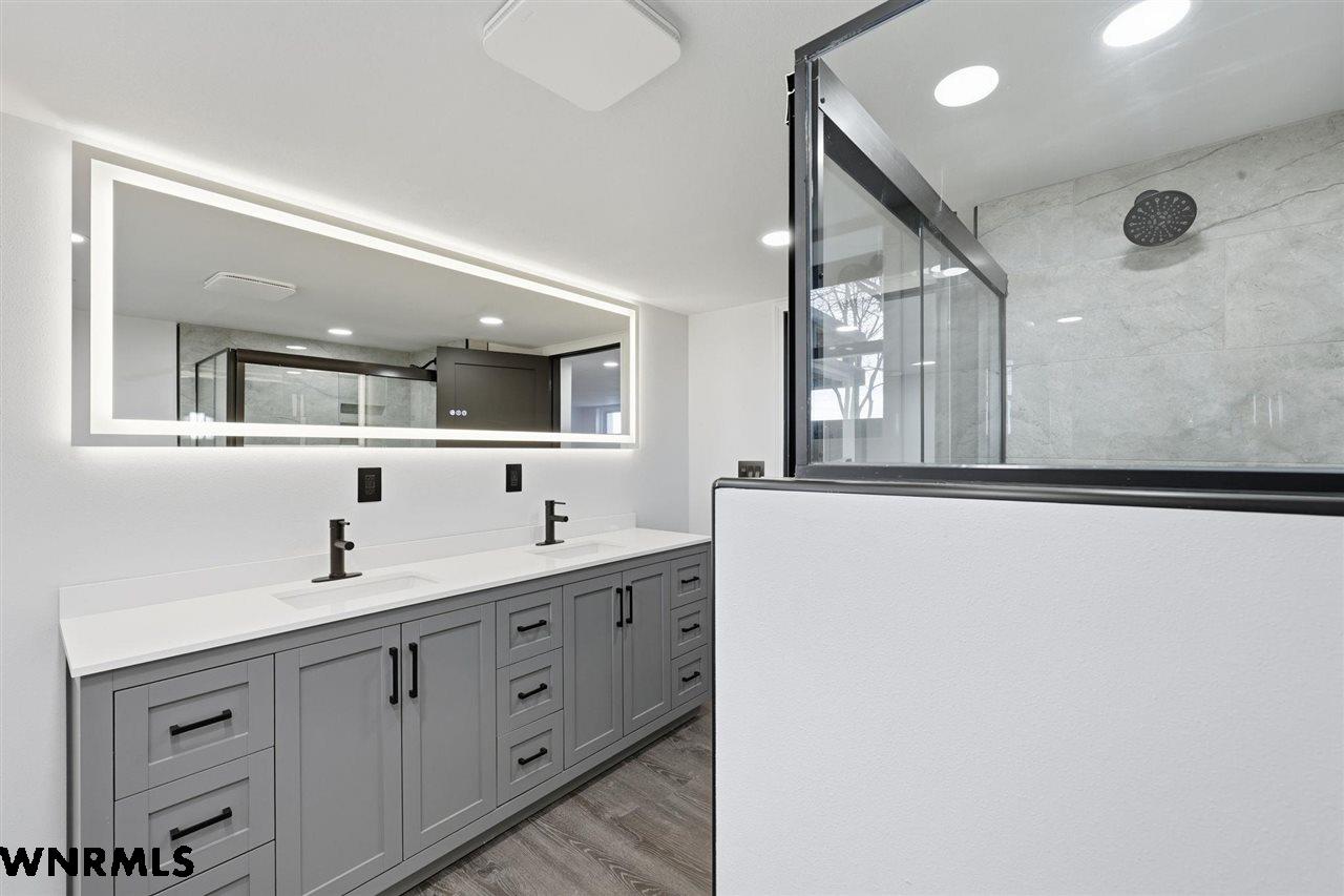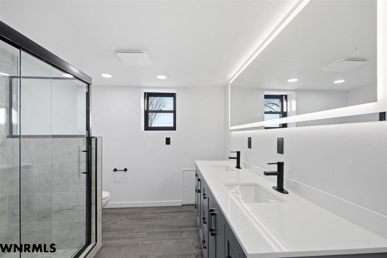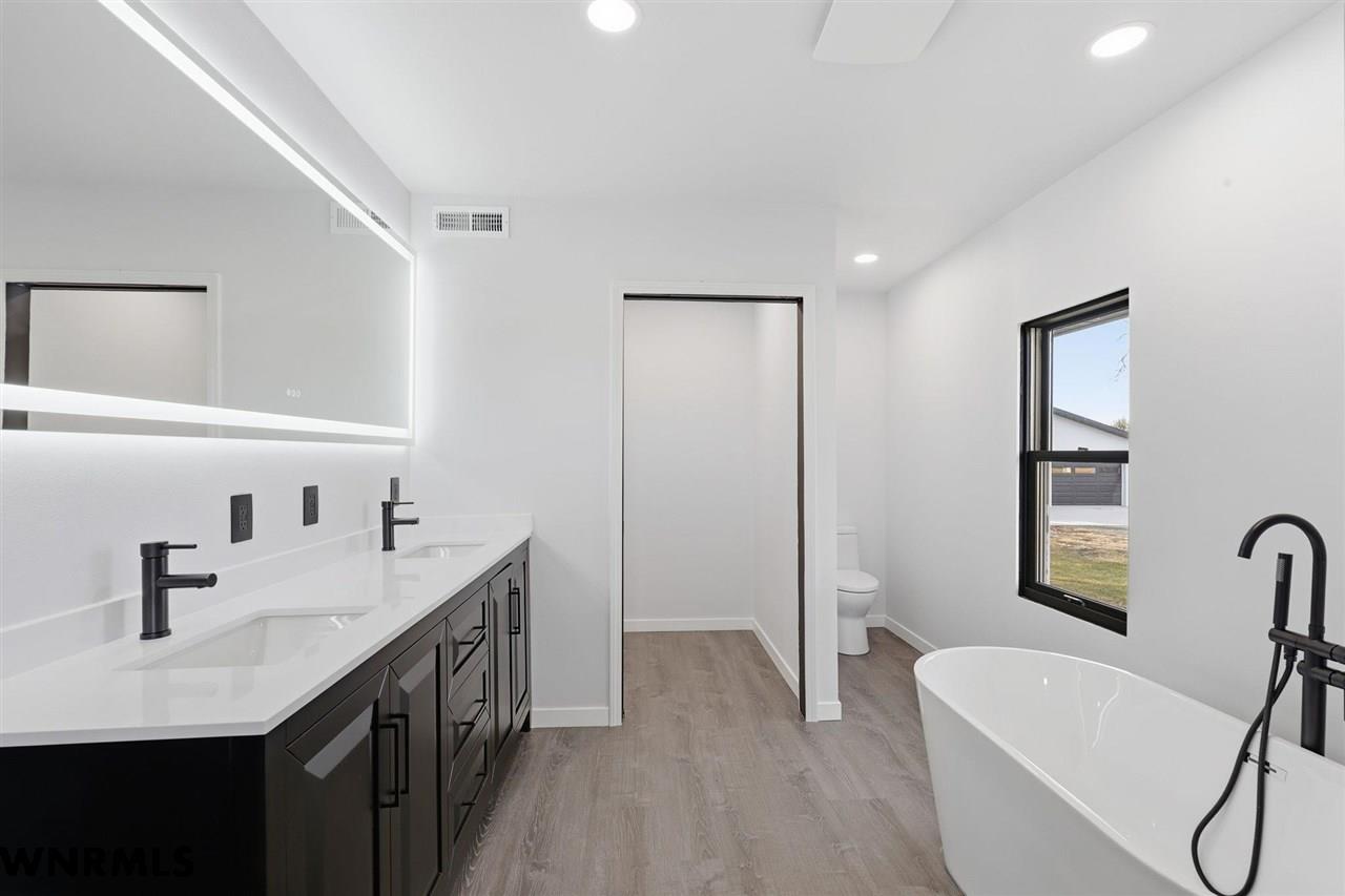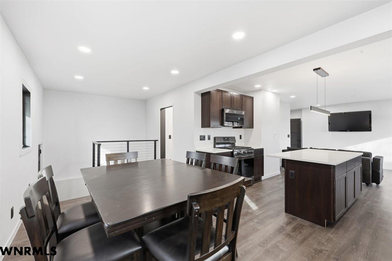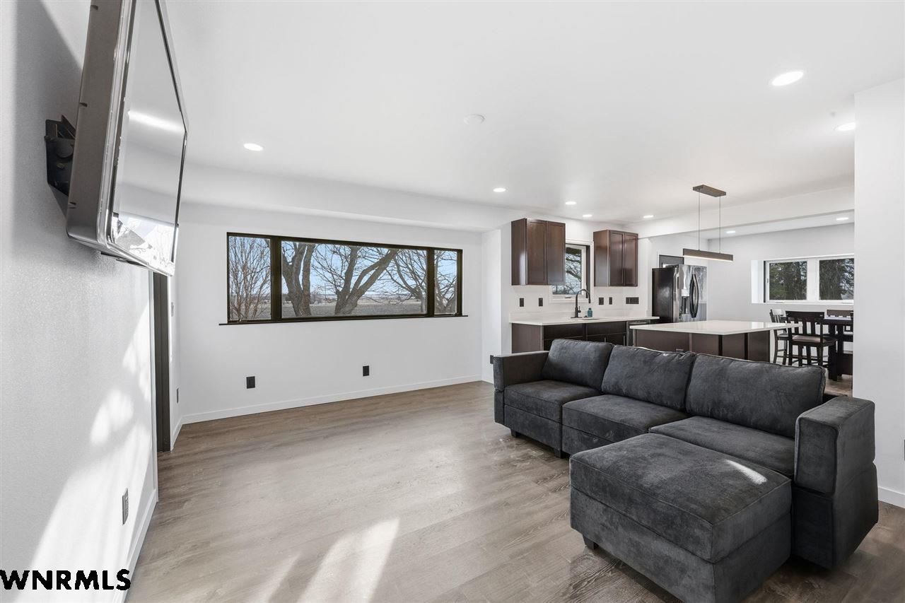 This beautiful, recently remodeled home sits on two acres roughly a quarter of a mile North of Highland Road and half a mile East of Lacy Park in Scottsbluff, NE. This stunning property offers a private escape from the city while also offering the convenience of being less than 10 minutes away from the heart of downtown Scottsbluff. The property features two finished detached garages and a small storage shed as well as room for an additional building. The home comes with a large 469 square foot wood deck overlooking a beautiful yard with over 30 mature trees and a new underground sprinkler system. All of the structures on the property have new stucco and new asphalt roofs. The North garage is 768 square feet with two new insulated overhead doors and features a small lighted storage area above. The garage closer to the home is new and slightly larger at 900 square feet and also features two new insulated overhead doors. Between the two garages is new colored concrete. The property is also on a well system and has two septic tanks. This home comes complete with four bedrooms, two living rooms, one full bathroom, two 3/4 bathrooms, a laundry/utility room, and a pantry. The water heater, plumbing, wiring, flooring, carpet, doors, cabinets, toilets, mirrors, vanities, switches, fixtures, and trim are all new. All the windows in the kitchen are new Pella windows. It features a modern kitchen with new quartz counters and brand-new Frigidaire Gallery appliances. The home also incorporates a new water softening system as well as central air. Taxes and parcel may change due to new survey. Basement bedroom windows my not be conforming.