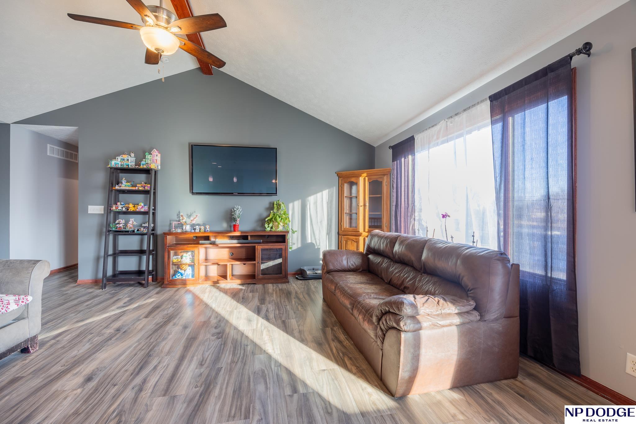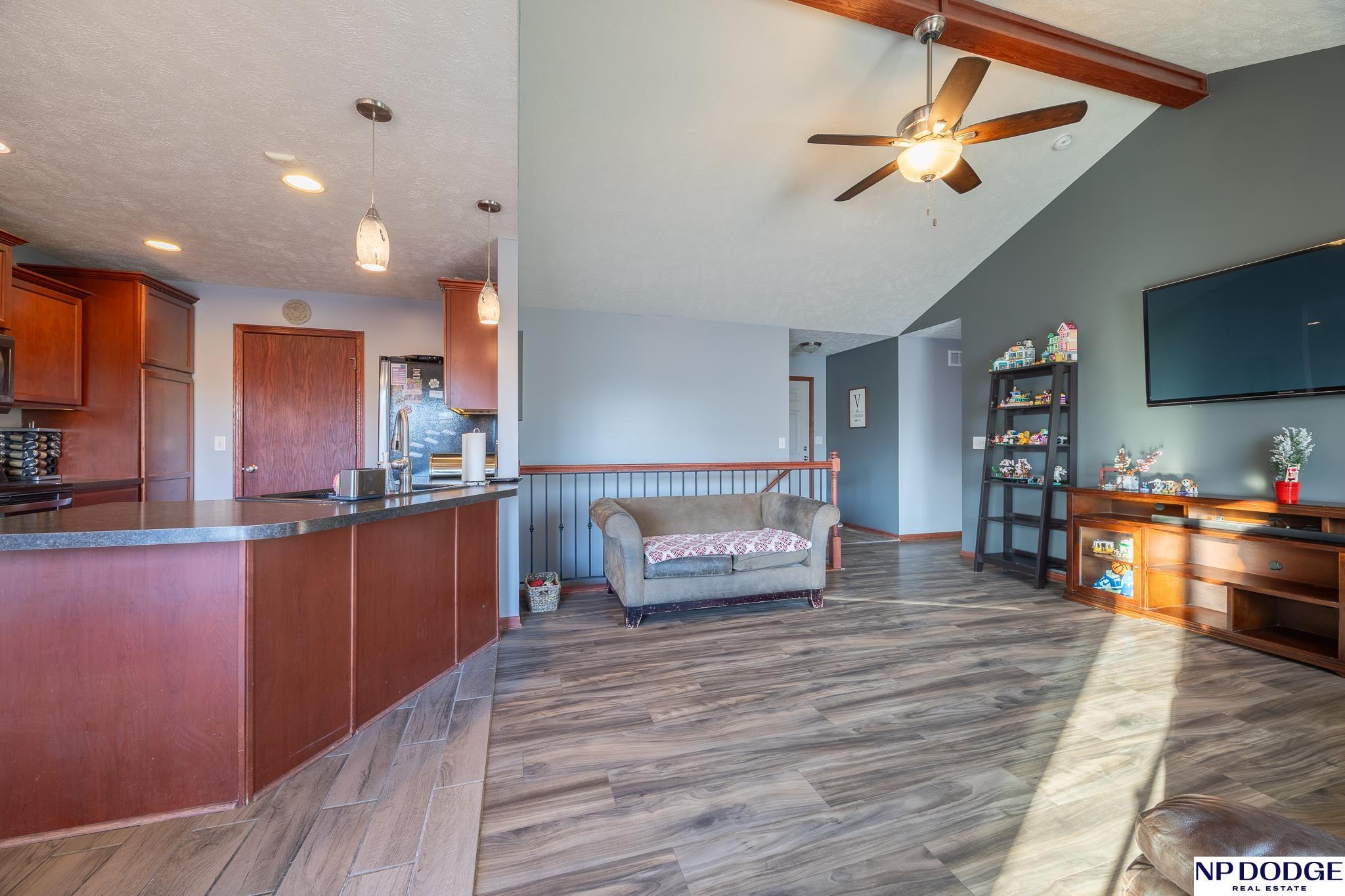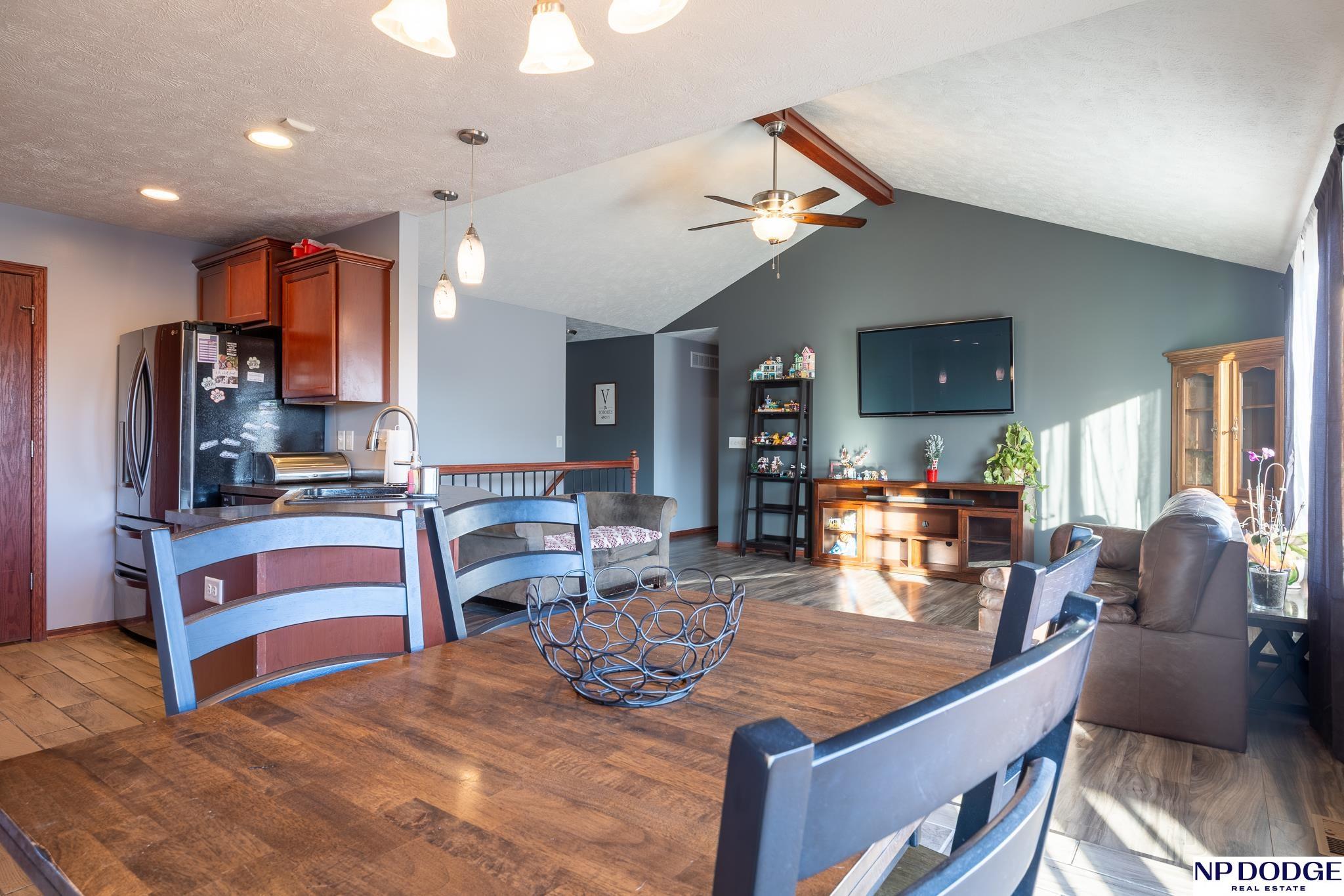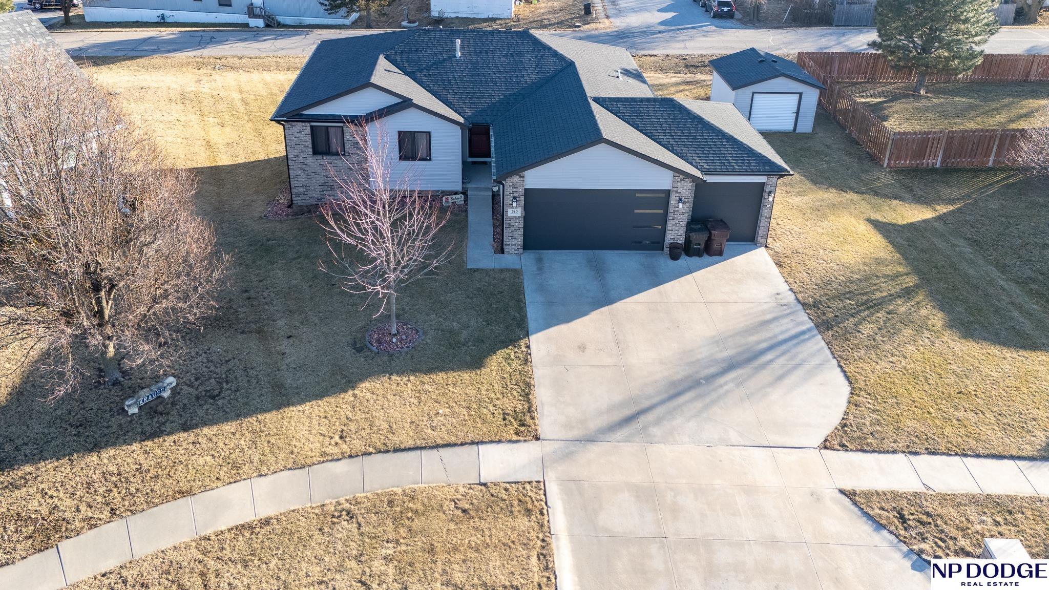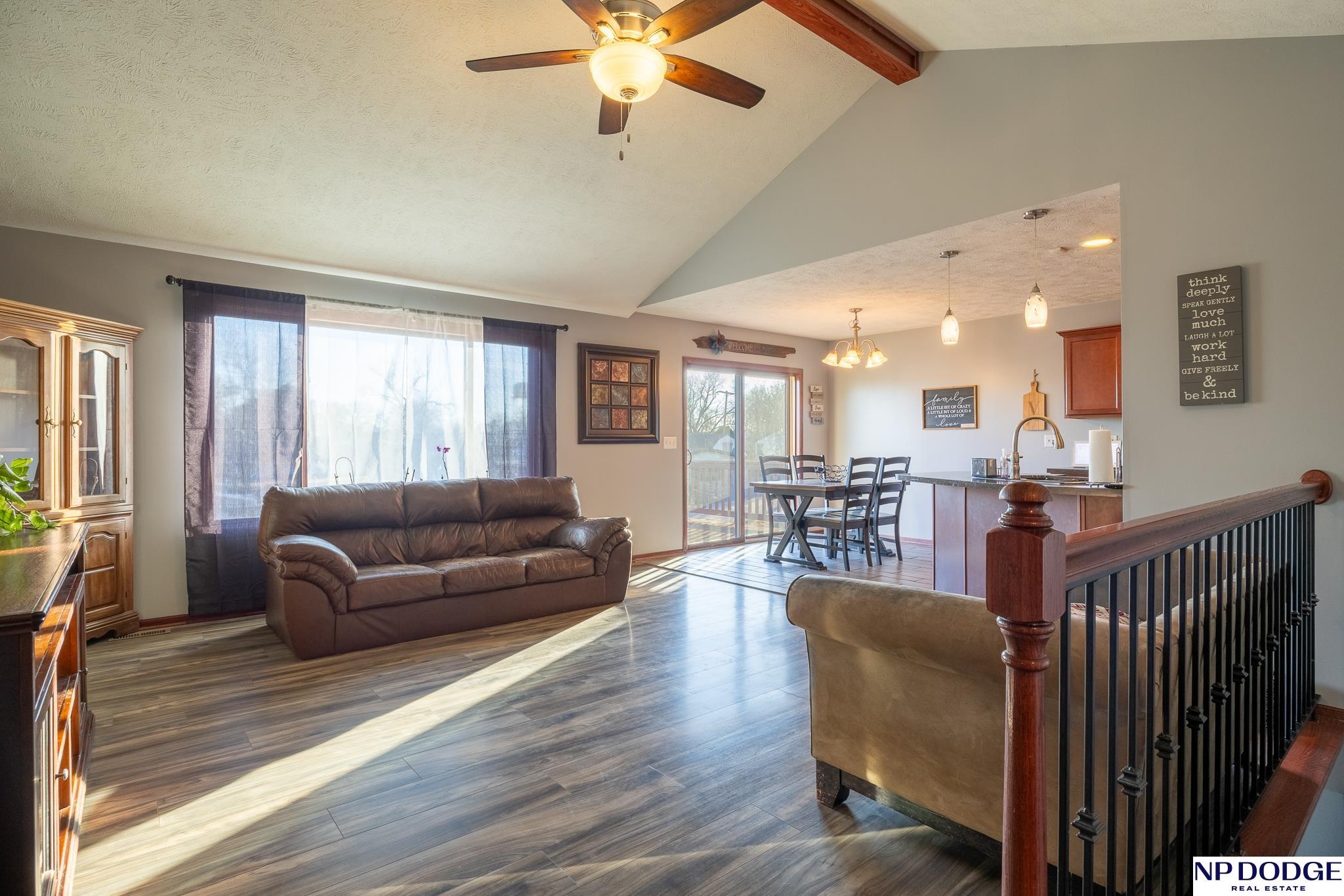 Enjoy the charm of small-town living just minutes from Lincoln in this inviting, move-in ready walkout ranch that blends comfort, space, and practicality. The main floor offers first-floor laundry, three bedrooms, two bathrooms, and a living room highlighted by a vaulted ceiling with newer flooring. The layout flows seamless into the dining area and kitchen, complete with a breakfast bar, that’s perfect for casual meals and everyday living. The finished walkout basement expands your living space with a fourth bedroom, an additional bathroom, and a cozy family room with a bar area, ideal for entertaining or hosting guests. The mechanical room features abundant built-in storage to keep everything neatly organized. You’ll appreciate the oversized 3-stall garage with built-in cabinets and shelving, plus a 14' x 14' shed with electricity and concrete floor provides even more storage options. This home offers small-town convenience with quick access to the city.
