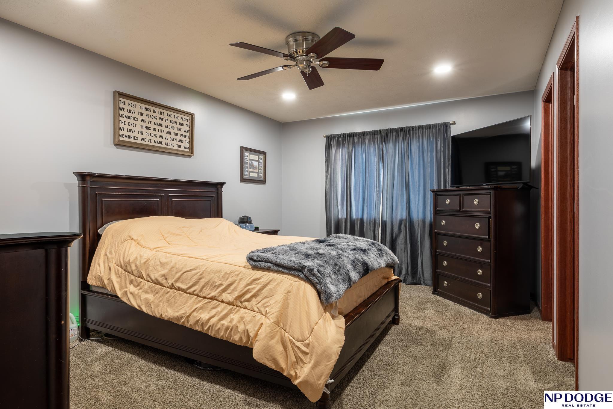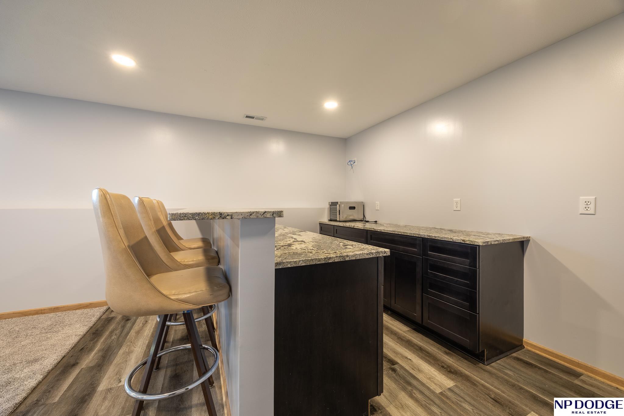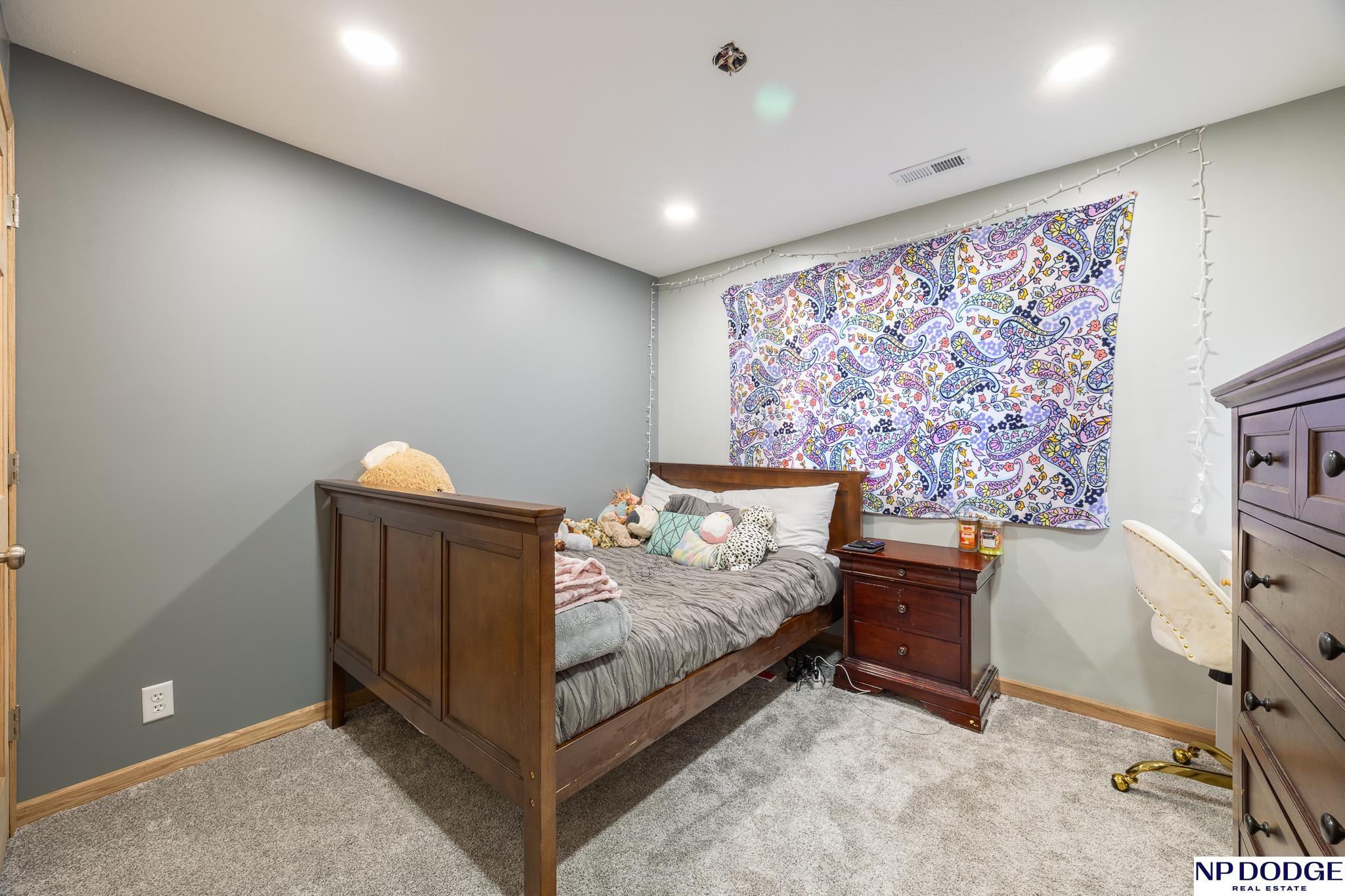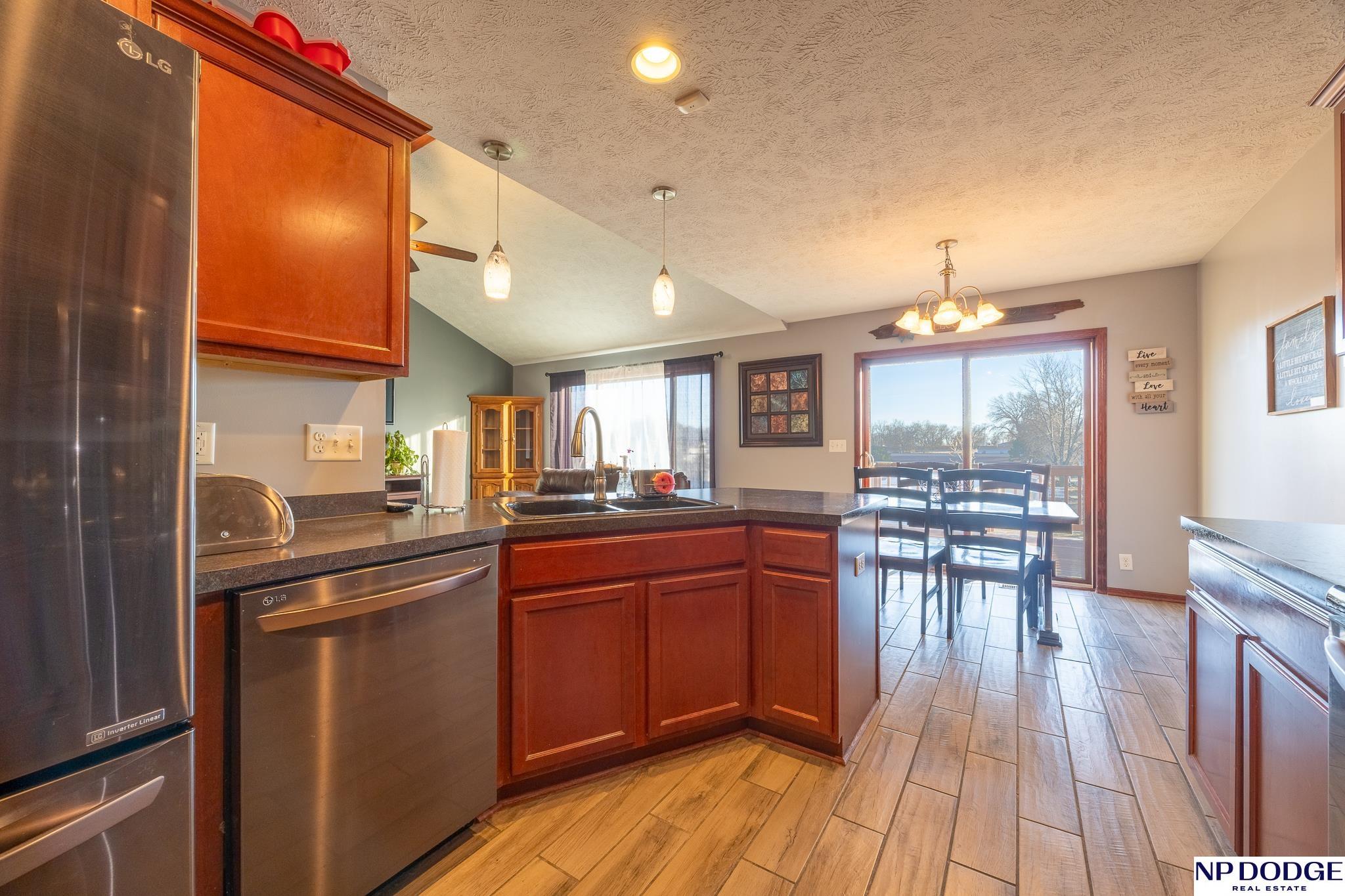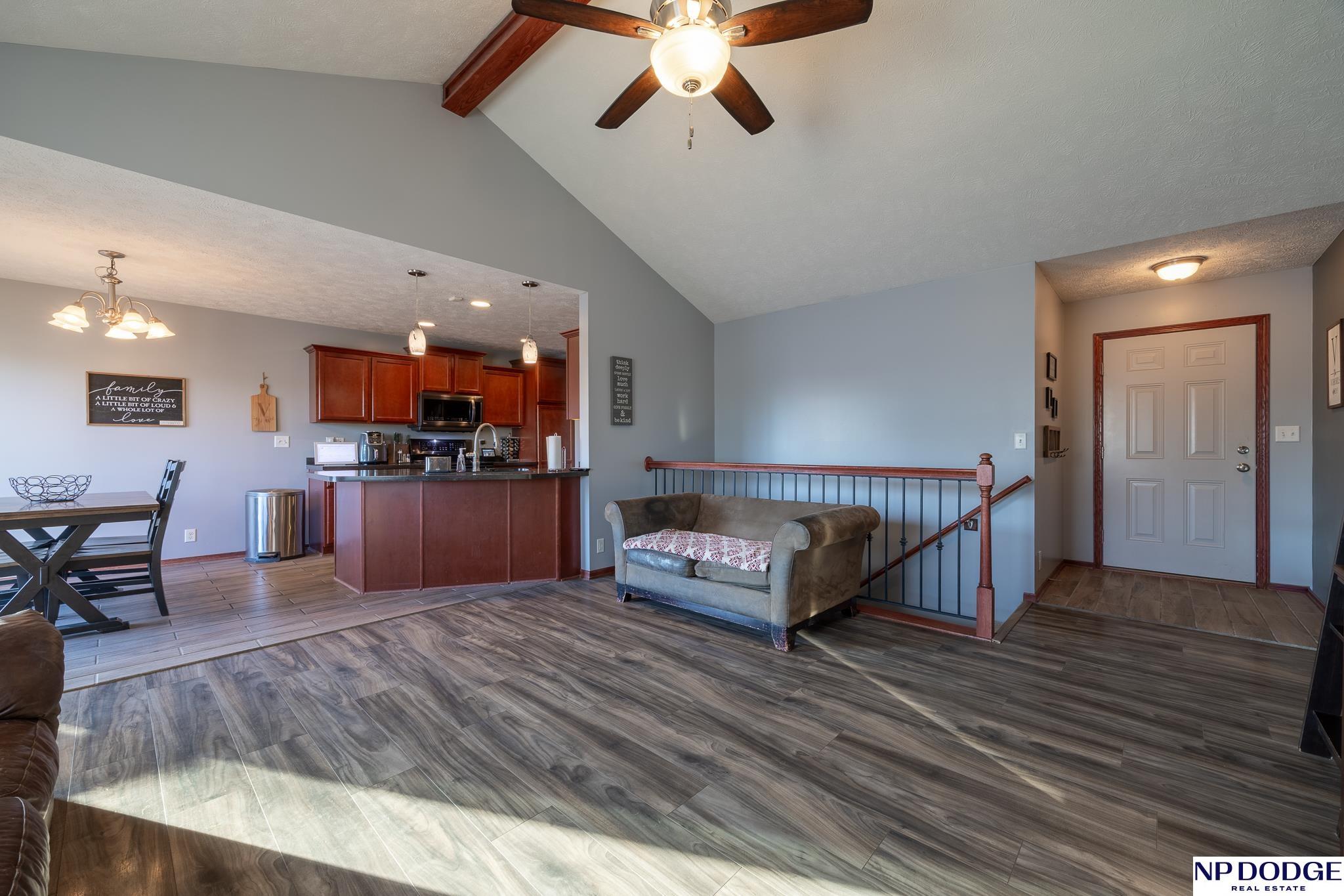 Enjoy the charm of small-town living just minutes from Lincoln in this inviting, move-in ready walkout ranch that blends comfort, space, and practicality. The main floor offers first-floor laundry, three bedrooms, two bathrooms, and a living room highlighted by a vaulted ceiling with newer flooring. The layout flows seamless into the dining area and kitchen, complete with a breakfast bar, that’s perfect for casual meals and everyday living. The finished walkout basement expands your living space with a fourth bedroom, an additional bathroom, and a cozy family room with a bar area, ideal for entertaining or hosting guests. The mechanical room features abundant built-in storage to keep everything neatly organized. You’ll appreciate the oversized 3-stall garage with built-in cabinets and shelving, plus a 14' x 14' shed with electricity and concrete floor provides even more storage options. This home offers small-town convenience with quick access to the city.