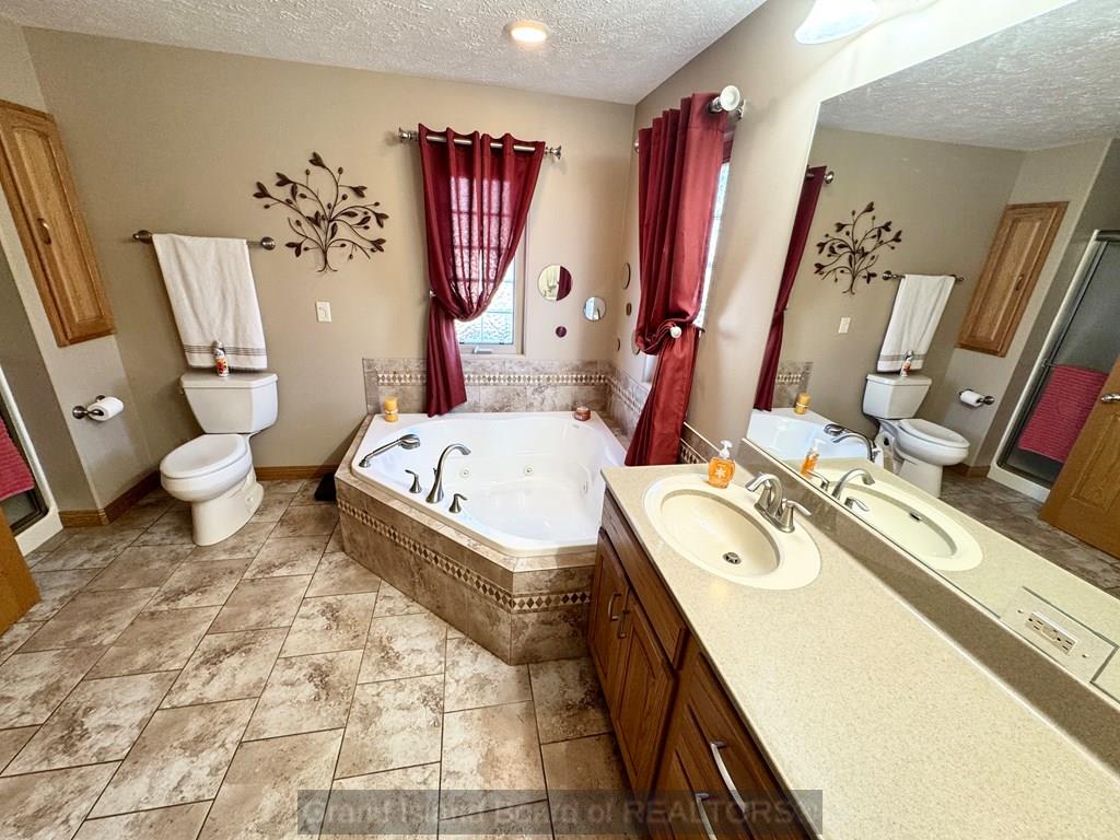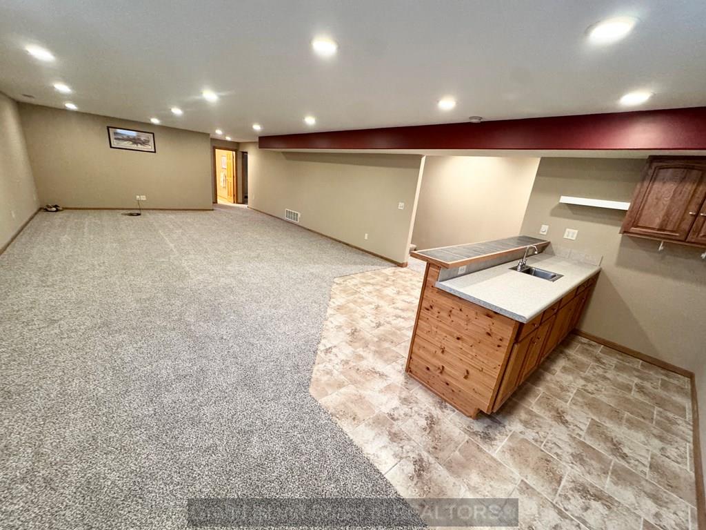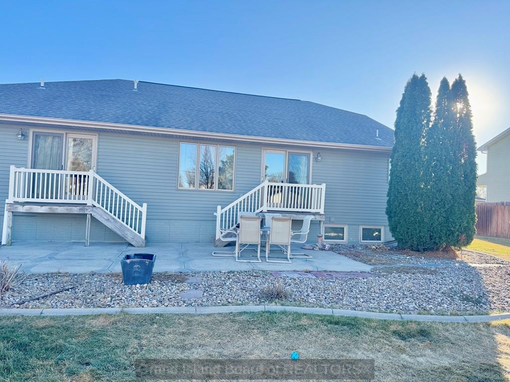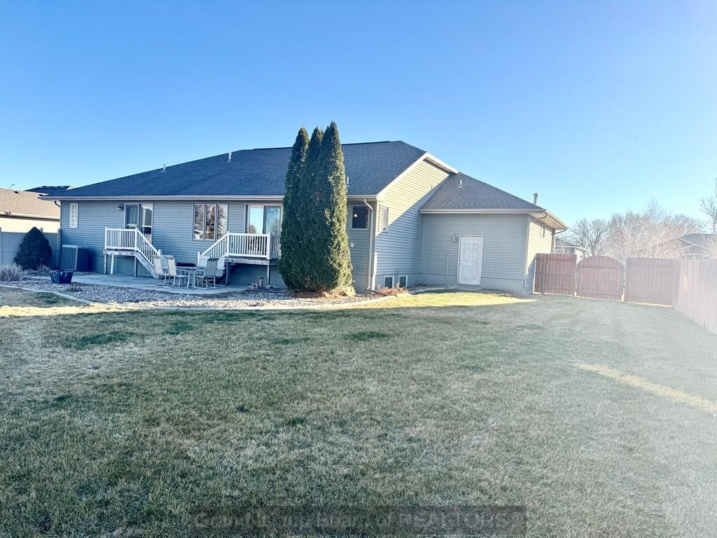 Sprawling ranch home in prime location to schools, shopping etc. Home features over 1,700 on each level, custom built home, oversized 3 car heated garage, open great room concept, huge master bedroom with heated bathroom floors, 5 bedrooms, 4 bath locations, 1/2 acre fenced-in yard, fully finished basement with wet bar, massive family room, extra storage, kitchen with wood floors and center island for gatherings. Water and sewer lines available to back part of lot for a garage/shop with plumbing.