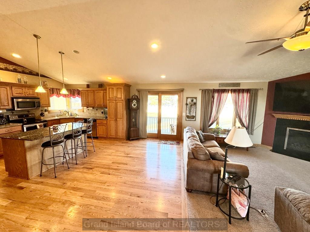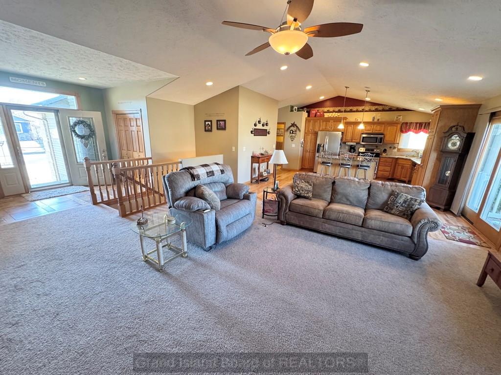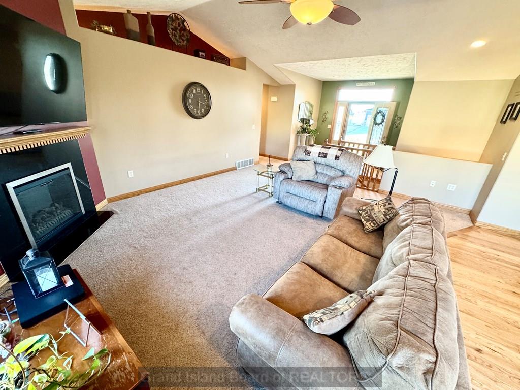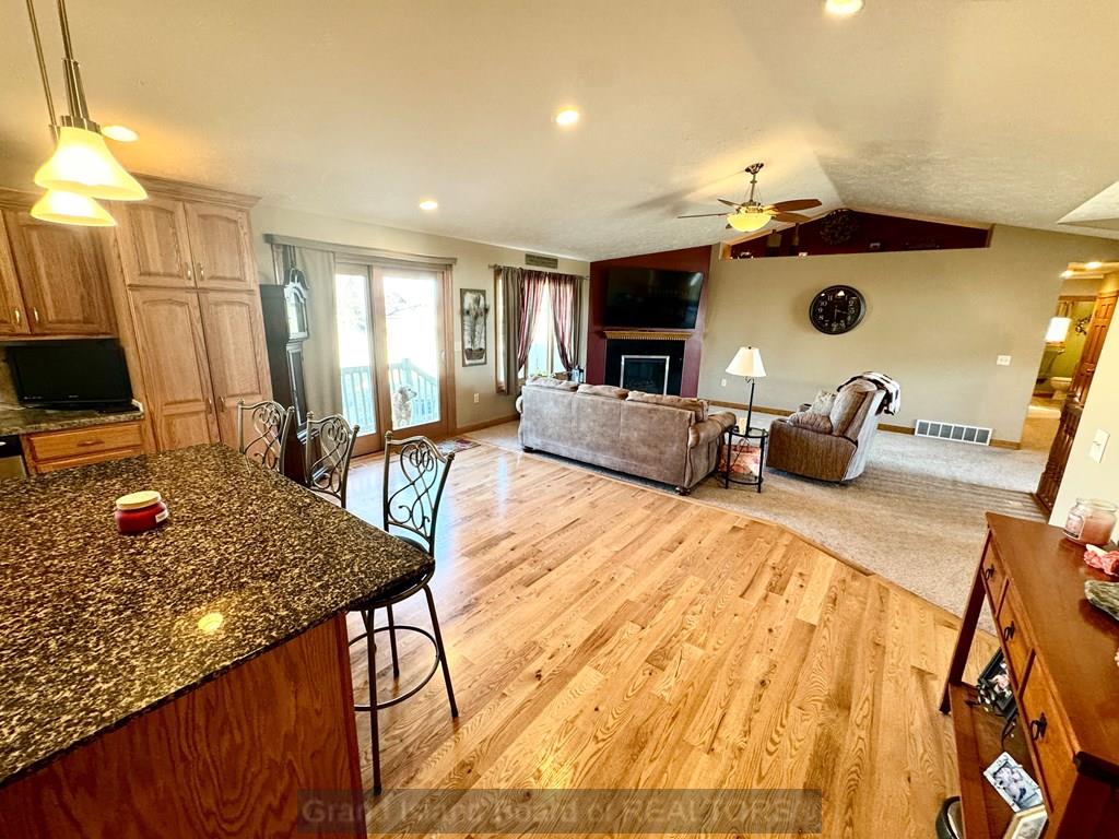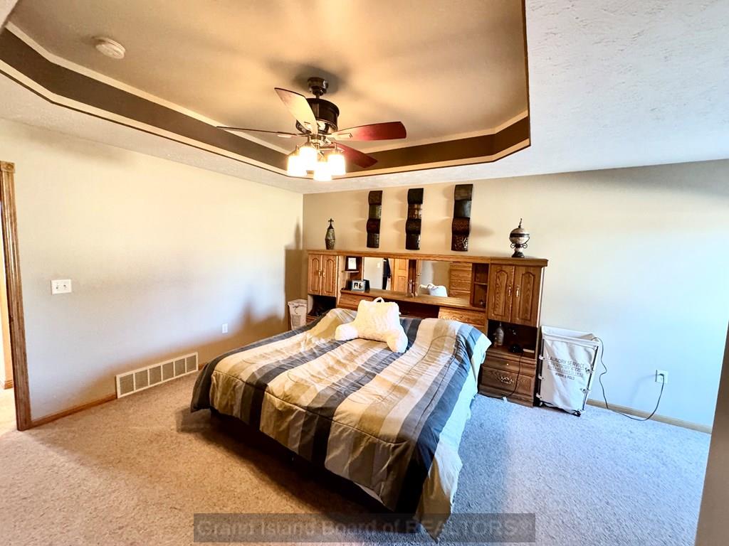 Sprawling ranch home in prime location to schools, shopping etc. Home features over 1,700 on each level, custom built home, oversized 3 car heated garage, open great room concept, huge master bedroom with heated bathroom floors, 5 bedrooms, 4 bath locations, 1/2 acre fenced-in yard, fully finished basement with wet bar, massive family room, extra storage, kitchen with wood floors and center island for gatherings. Water and sewer lines available to back part of lot for a garage/shop with plumbing.