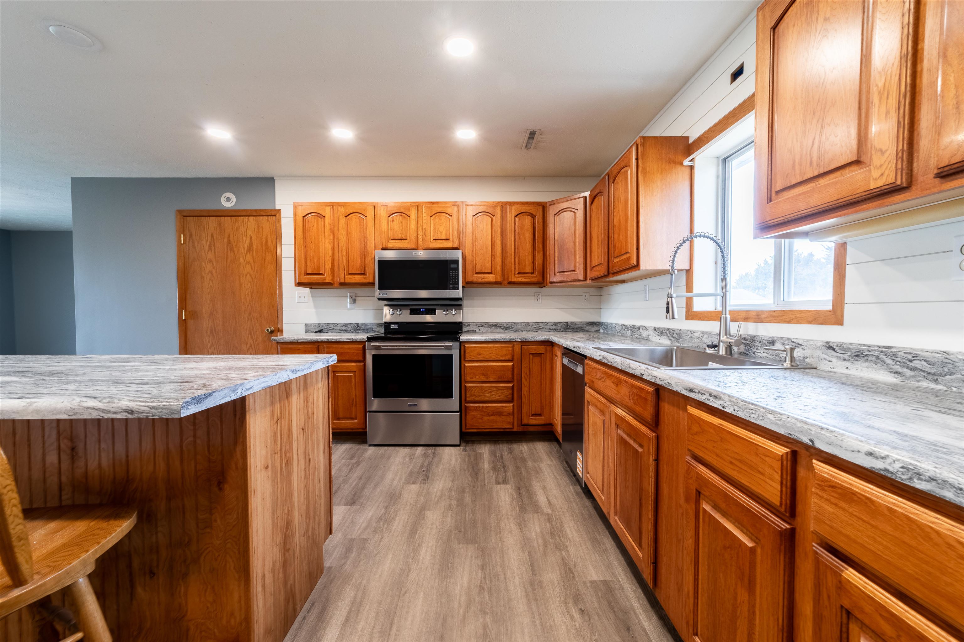 3.81 ACRES! Welcome to this updated acreage property offering the perfect blend of single level living and an abundance of storage/workshops. Built in 1998, the home features an open floor plan with a refreshed kitchen including a center island, brand new stainless steel appliances and new countertops. New flooring throughout the home, complemented by a freshly painted interior and a newly updated shower. The spacious primary bedroom offers a walk-in closet, while a convenient mudroom off the garage includes a ¾ bath and new washer and dryer. This property truly shines with its extensive storage and workspaces. A massive 5-car garage (24x38) is joined by a 26x36 shop, a 26x24 heated shop with overhead doors, and multiple lean-tos (36x12 and 31x21) providing endless versatility. Additional structures include a 38x12 loafing shed/chicken coop with an attached 16x8 pole barn, a 10x16 shed, and a 10x8 shed, ideal for hobbies, equipment or storage. Recent exterior upgrades include a new roof, siding, and patio. Situated on 3.81 acres, which includes the adjacent parcel (010017251), this property offers space, privacy, and unmatched flexibility, perfect for those seeking a rural lifestyle with modern updates and exceptional outbuildings, all located just minutes from town! Crawl space access through mud room. Showings to start Monday, January 19, 2026