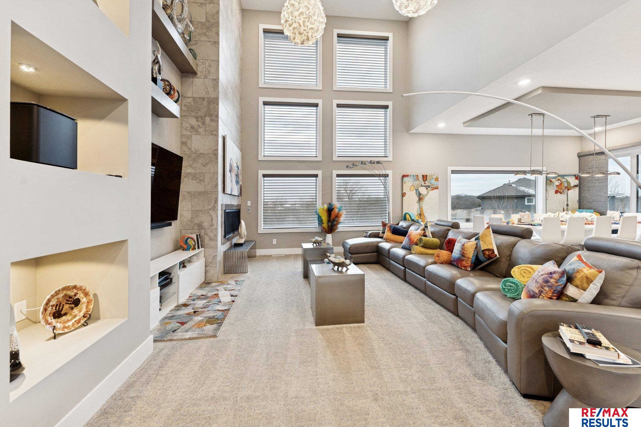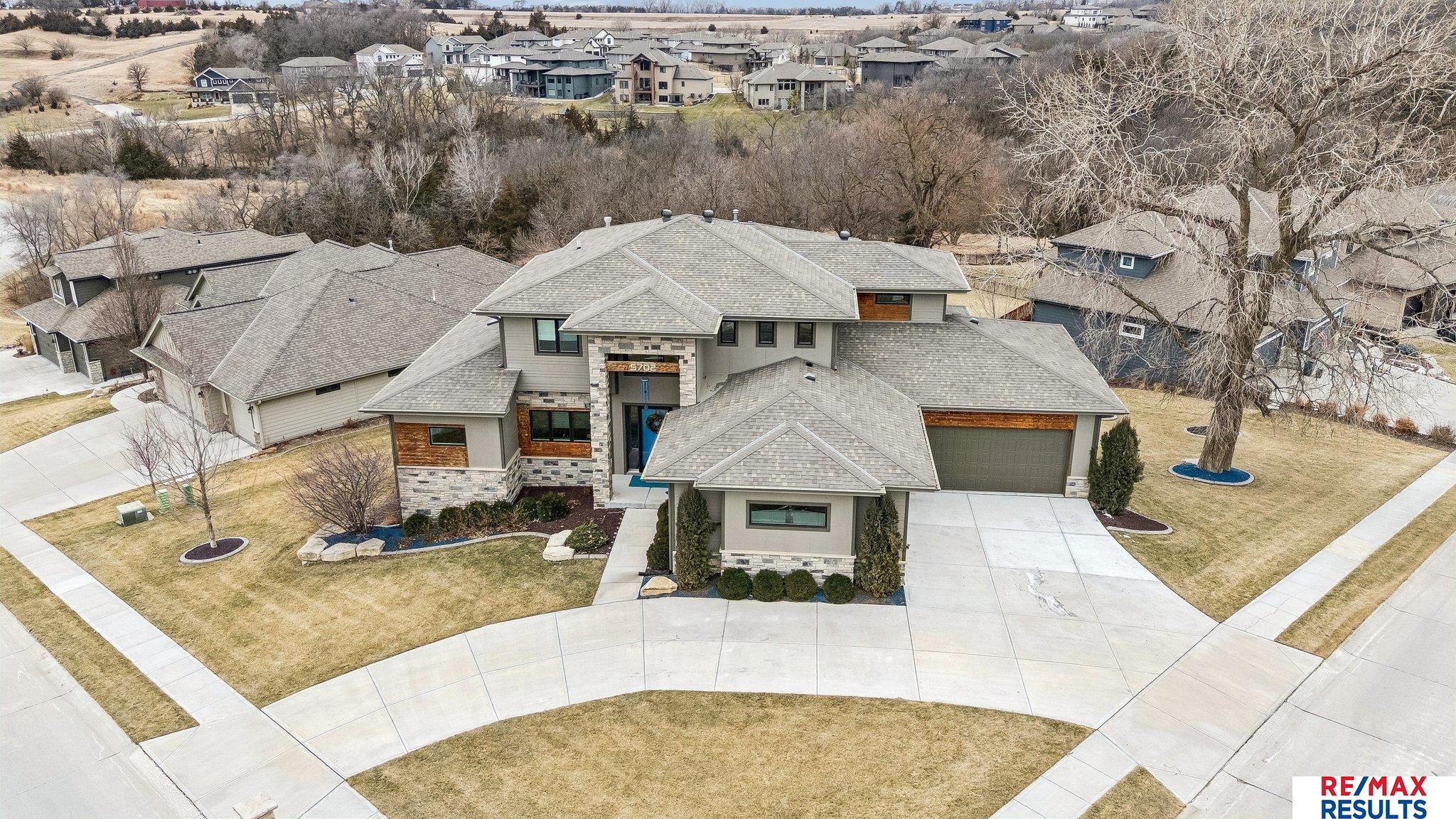 Why build when you can have like-new perfection? This meticulously cared-for home sits majestically on a hill, offering scenic views & impressive curb appeal. A convenient circle drive welcomes you to the stately front entry, setting the tone for what awaits inside. Step into a grand two-story, voluminous entry & great room highlighted by a gas fireplace—perfect for both everyday living & entertaining. The light-filled kitchen is beautifully equipped w/double ovens, induction cooktop, walk-in pantry & generous seating—ideal for gatherings of any occasion. The formal dining room includes a charming coffee nook bar complete w/ice maker & beverage refrigerator for added convenience. The luxurious primary suite is a true retreat, featuring its own fireplace, a fabulous spa-like ensuite tiled walk-in shower & dream walk-in closet. The walkout lower level offers exceptional living space w/wet bar, expansive lounge area, bedroom & bath. Movie lovers will appreciate the private theater room!