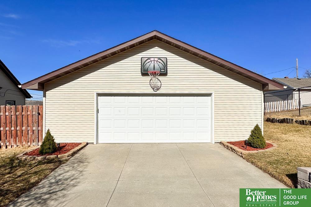 This charming 1.5 story home combines comfort and flexibility with 810 sq ft of main living space and a finished basement. Refinished hardwood floors warm the main living spaces, while a main-level bedroom with newer carpet and direct access to a 3/4 bath adds everyday convenience. The kitchen comes fully equipped with appliances and features an eat-in area with access to a spacious patio, perfect for entertaining or relaxing outdoors. Upstairs, a loft with new carpet works beautifully as a second bedroom, office, or cozy retreat. The finished lower level includes a rec room, non-conforming bedroom or office, laundry, and a fully updated bath with luxury vinyl tile. Set on a nearly 1/3-acre fully fenced lot with garden space and storage shed, the true standout is the impressive 1,080 sq ft garage, ideal for hobbyists, car enthusiasts, or anyone needing serious workspace, room for up to four vehicles. A rare blend of character, function, & space. Don't miss out! AMA