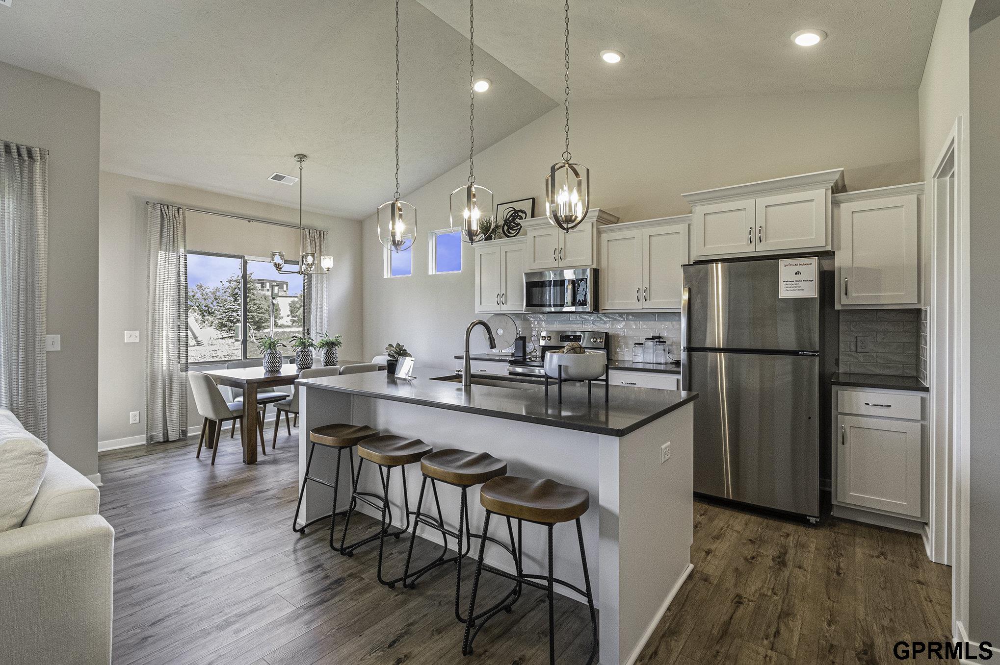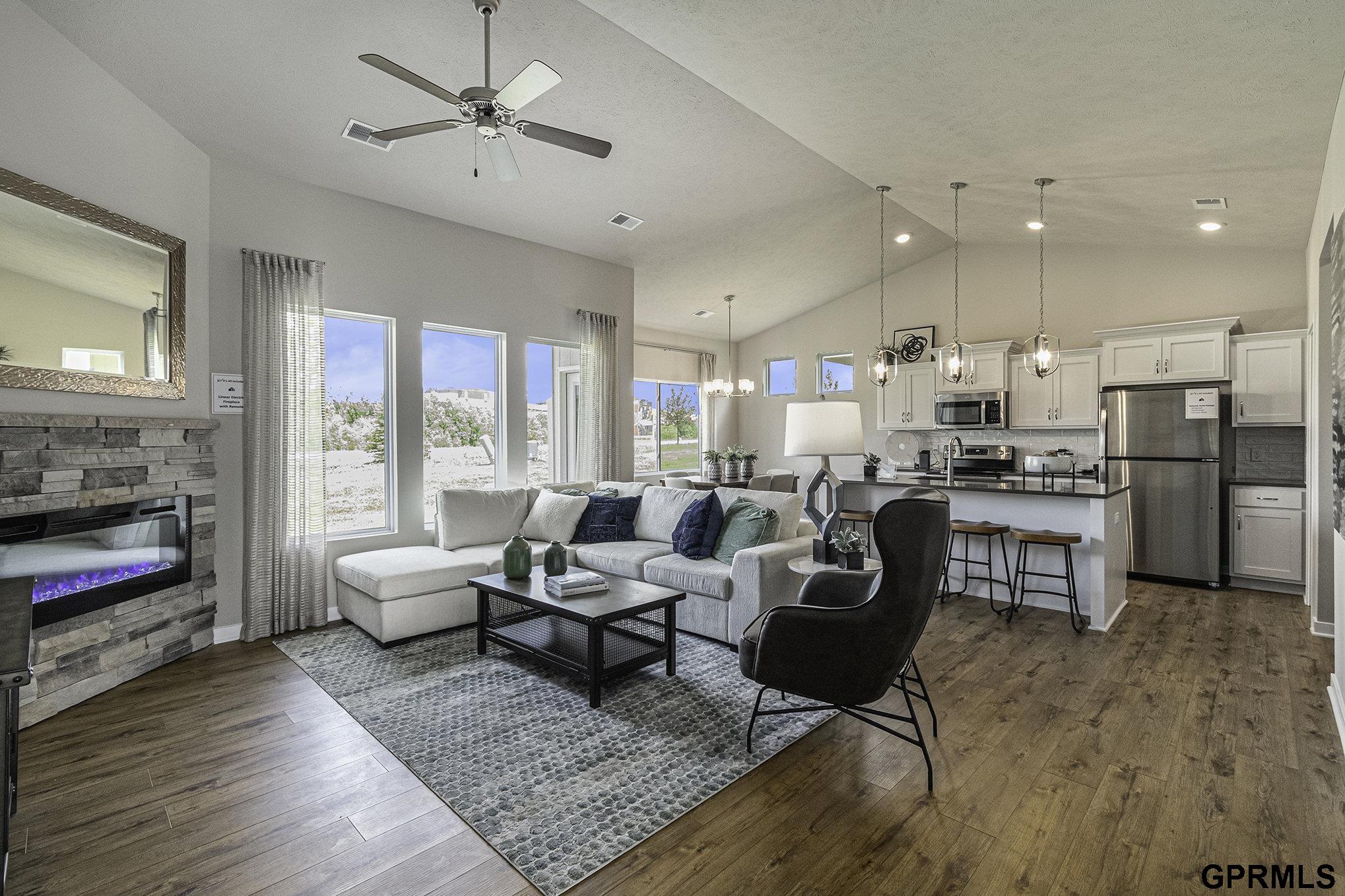 Welcome to The Mirada Patio Home Villa by Celebrity Homes. Villa living w/NO Stairs but plenty of spacious living. Entering the Mirada, you will see the front bedroom & a Pocket Office. You will be surprised by the grandeur of the space & all of the windows in the Gathering Room! The Eat In Island Kitchen has a walk-in pantry & flows into a dining area that shares a view into the main room. A Drop Off Area from the garage is an added bonus! The Owner’s Suite has a walk-in closet, linen closet, ¾ Privacy Bath Design & a Dual Vanity. Features of this 2 PLUS Bedroom, 2 Bath Villa Include: Oversized 2 Car Garage with Garage Door Opener, Refrigerator, Washer/Dryer Package, Quartz Countertops, Luxury Vinyl Panel Flooring (LVP) Package, Sprinkler System, Extended 2-10 Warranty, Professionally Installed Blinds, & that’s just the start! Snow Removal, Lawn Maintenance, even Trash Removal are all included! (Pictures of Model Home) Price may reflect promotional discounts, if applicable