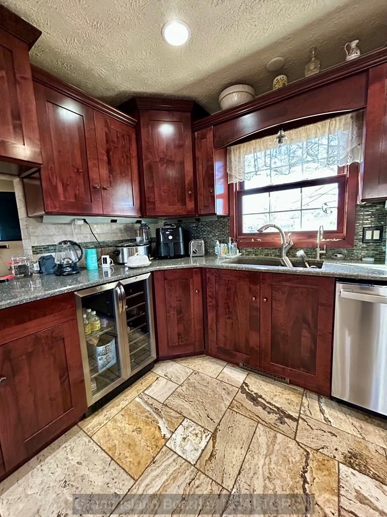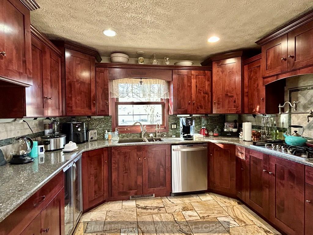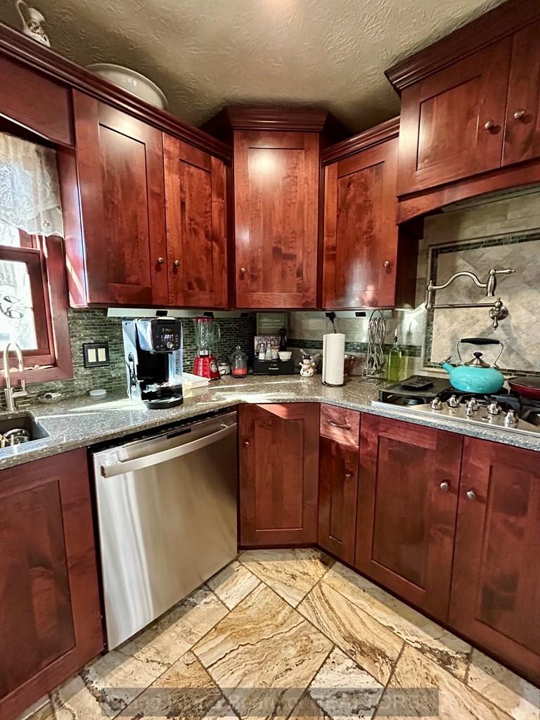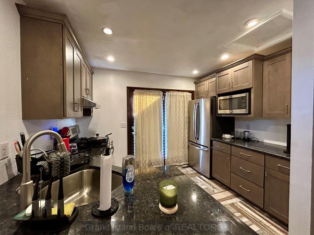 This 2490 sq ft home is located on a quiet street and is customized throughout. The main floor apartment provides the opportunity for income. The apartment features an updated kitchen with heated floor, living and bedroom area. The beautiful kitchen with limestone backsplash, travertine, heated flooring and many other custom touches is a highlight of the home. Elegant tile showers in all bathrooms make these areas inviting as well. The home has office and workshop space to fit your needs. Outside you will find a well established yard, composite deck and 30 amp camper plug. Don't miss this spacious, unique property.