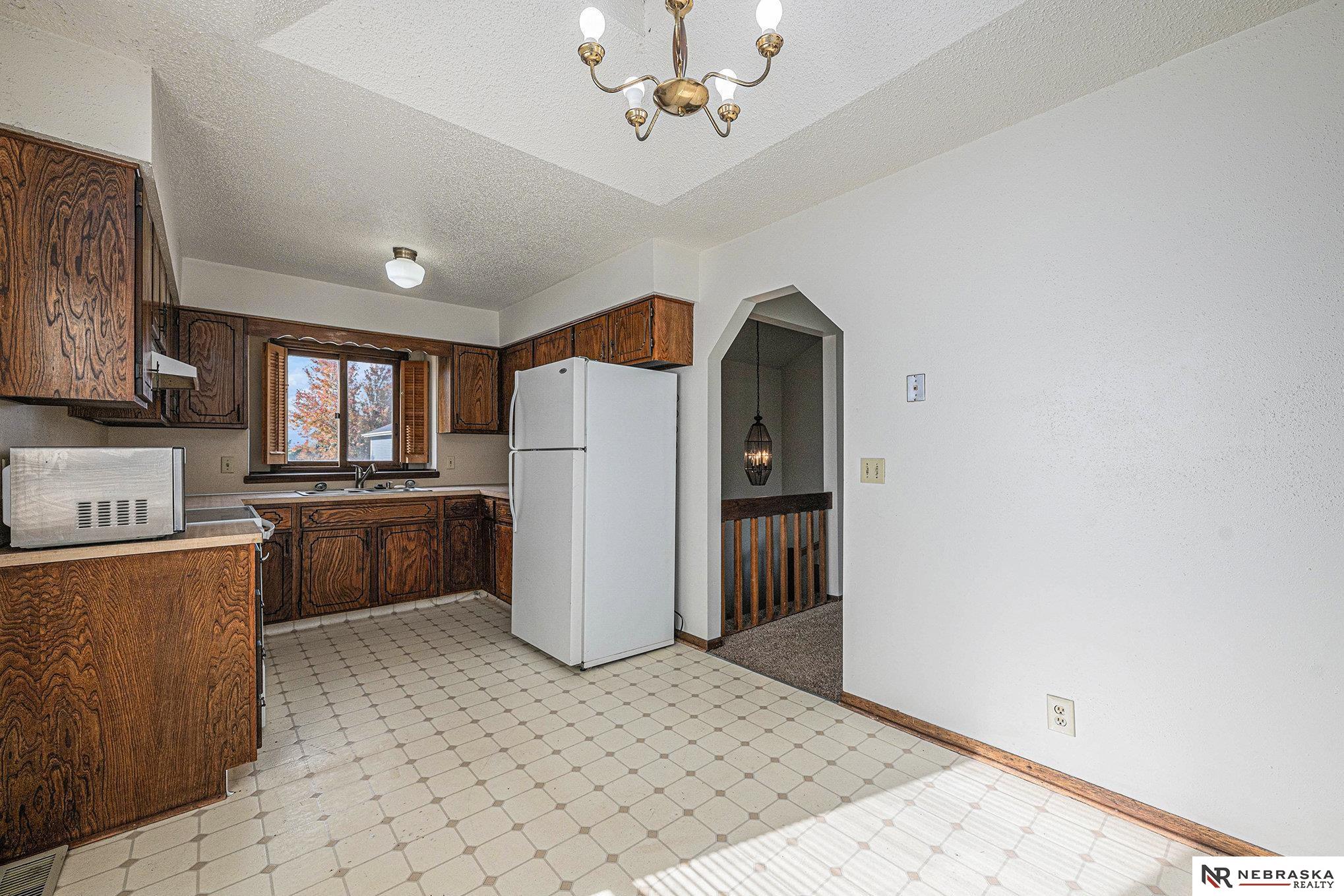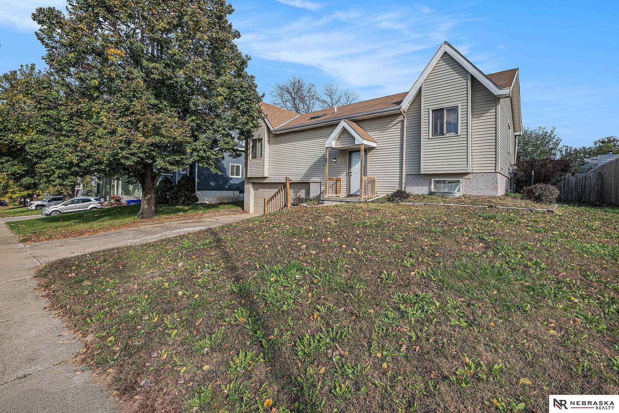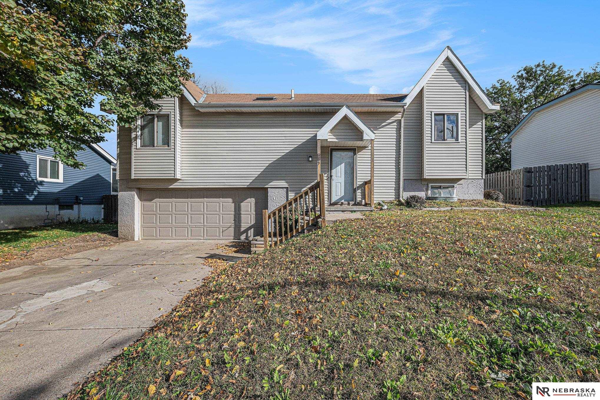 Millard South split with unique layout for multi-purposes. 2-story entry rolls in to open and bright living spaces. Dining room boasts vaulted ceiling. Kitchen with real wood cabinets, newer appliances and updated faucet. AND laundry just off the kitchen. This makes a very functional space on the main floor. Unique open basement has the 3rd bedroom and 2nd bath along with a cozy living room with fireplace. Oversized 2-car garage gives you space for vehicles and lawn/storage. Deck off the back and fully privacy fenced yard are great for keeping your crew in. AMA