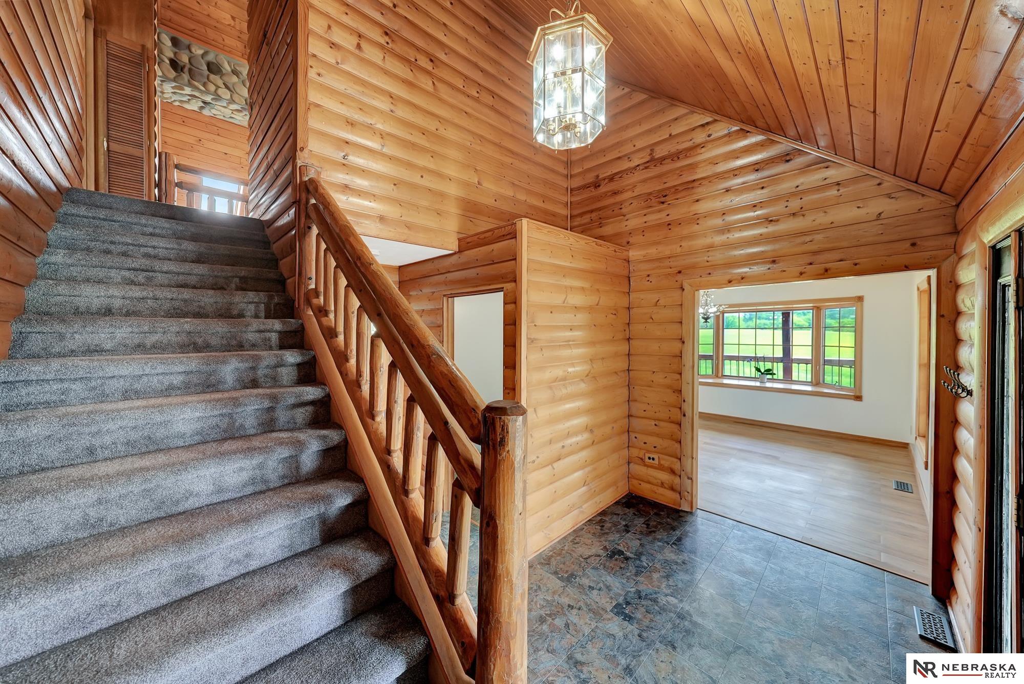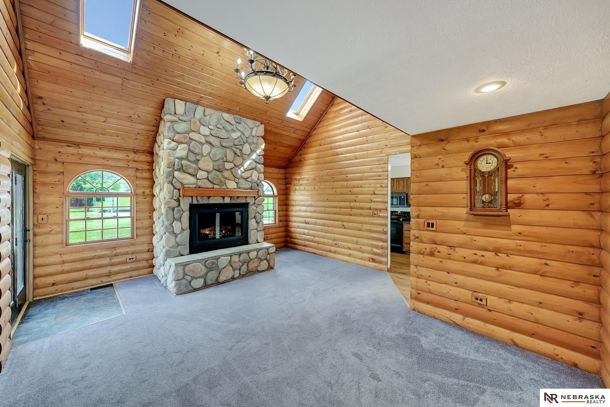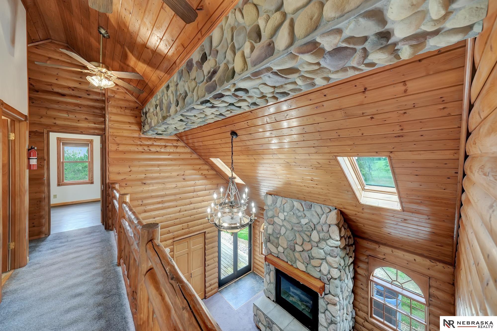 Escape to this stunning retreat just outside of Lincoln and 5 minutes away from Branched Oak Lake, nestled on over 21acres of peaceful countryside. This beautifully crafted 4-bedroom, 4-bathroom home blends rustic charm with modern comfort. Step into the living room centered around a grand fireplace, perfect for cozy nights in. The open kitchen and dining area provide plenty of room for family meals or entertaining guests. The main-floor primary suite offers privacy and convenience, while two additional bedrooms upstairs and one in the finished walkout basement provide flexible living options. Enjoy serene views from the covered wraparound porch with multiple entry points. A utility building sits out back with an attached carport for extra storage or hobbies. This is the perfect property for those who crave space, tranquility, and the warmth of cabin living, don’t miss your chance to make it yours!