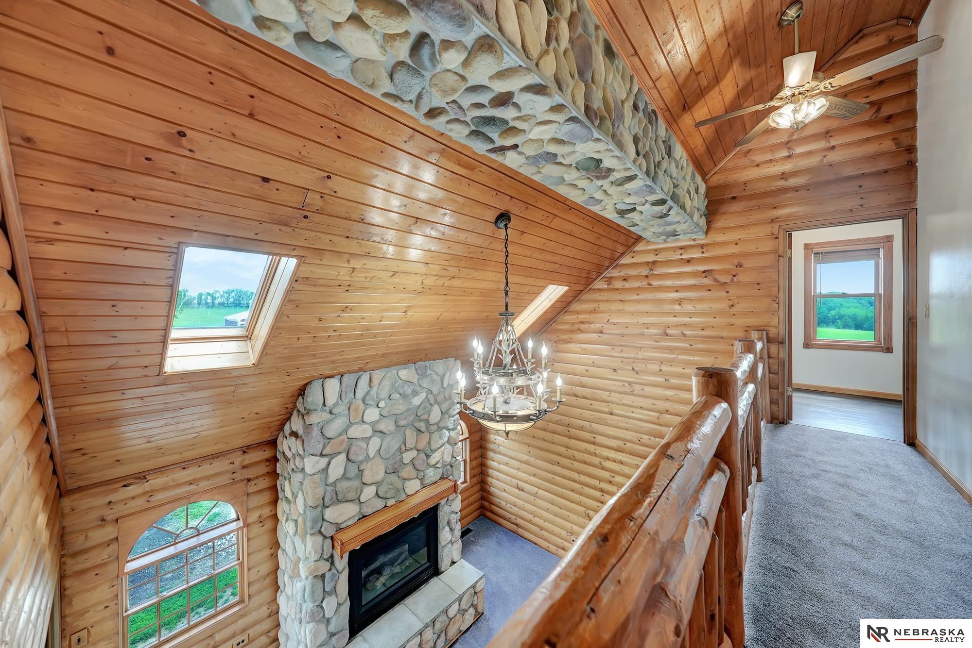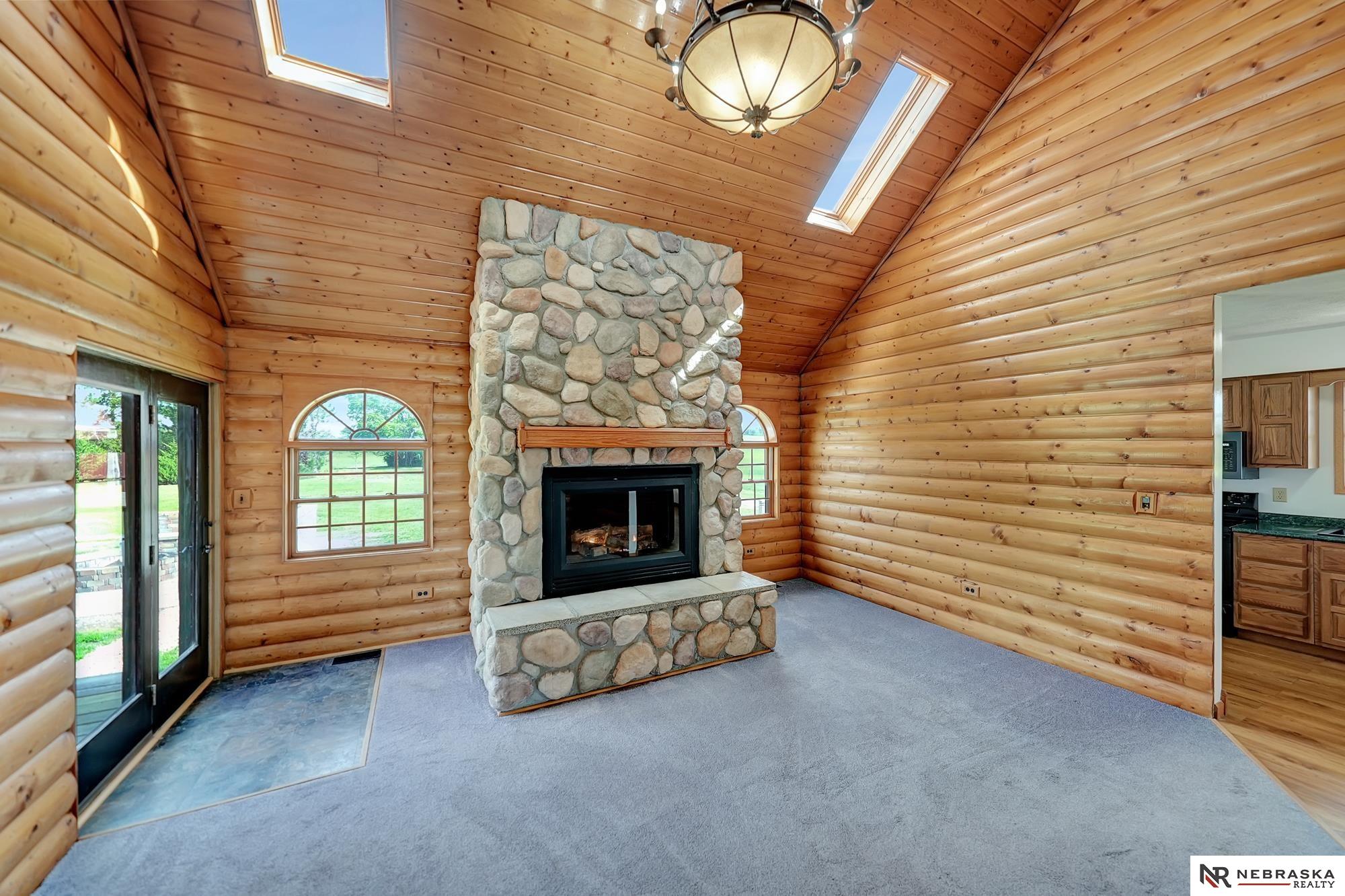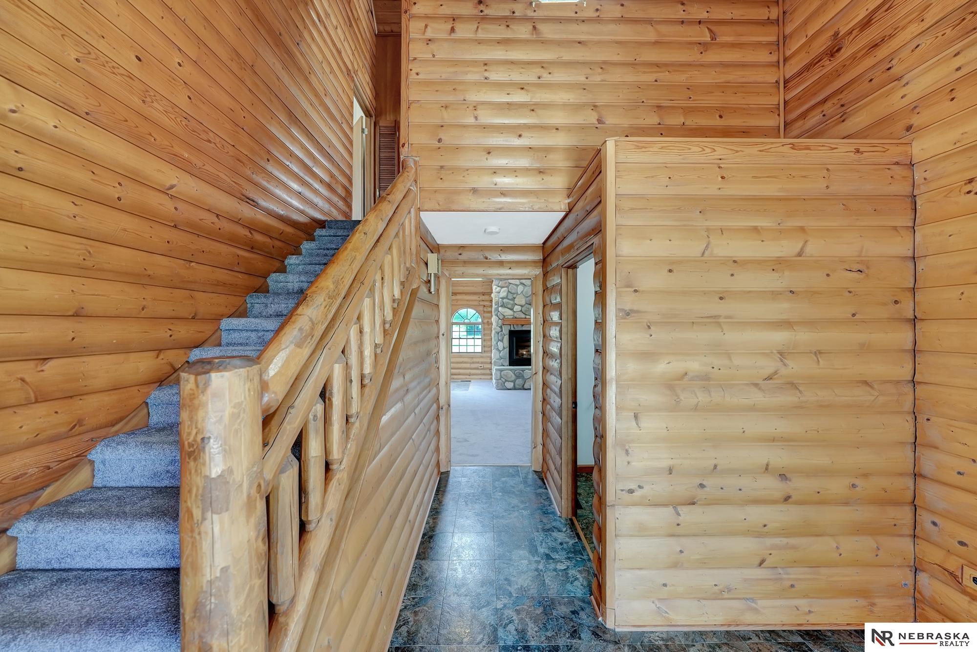 Escape to this stunning retreat just outside of Lincoln and 5 minutes away from Branched Oak Lake, nestled on over 21acres of peaceful countryside. This beautifully crafted 4-bedroom, 4-bathroom home blends rustic charm with modern comfort. Step into the living room centered around a grand fireplace, perfect for cozy nights in. The open kitchen and dining area provide plenty of room for family meals or entertaining guests. The main-floor primary suite offers privacy and convenience, while two additional bedrooms upstairs and one in the finished walkout basement provide flexible living options. Enjoy serene views from the covered wraparound porch with multiple entry points. A utility building sits out back with an attached carport for extra storage or hobbies. This is the perfect property for those who crave space, tranquility, and the warmth of cabin living, don’t miss your chance to make it yours!
