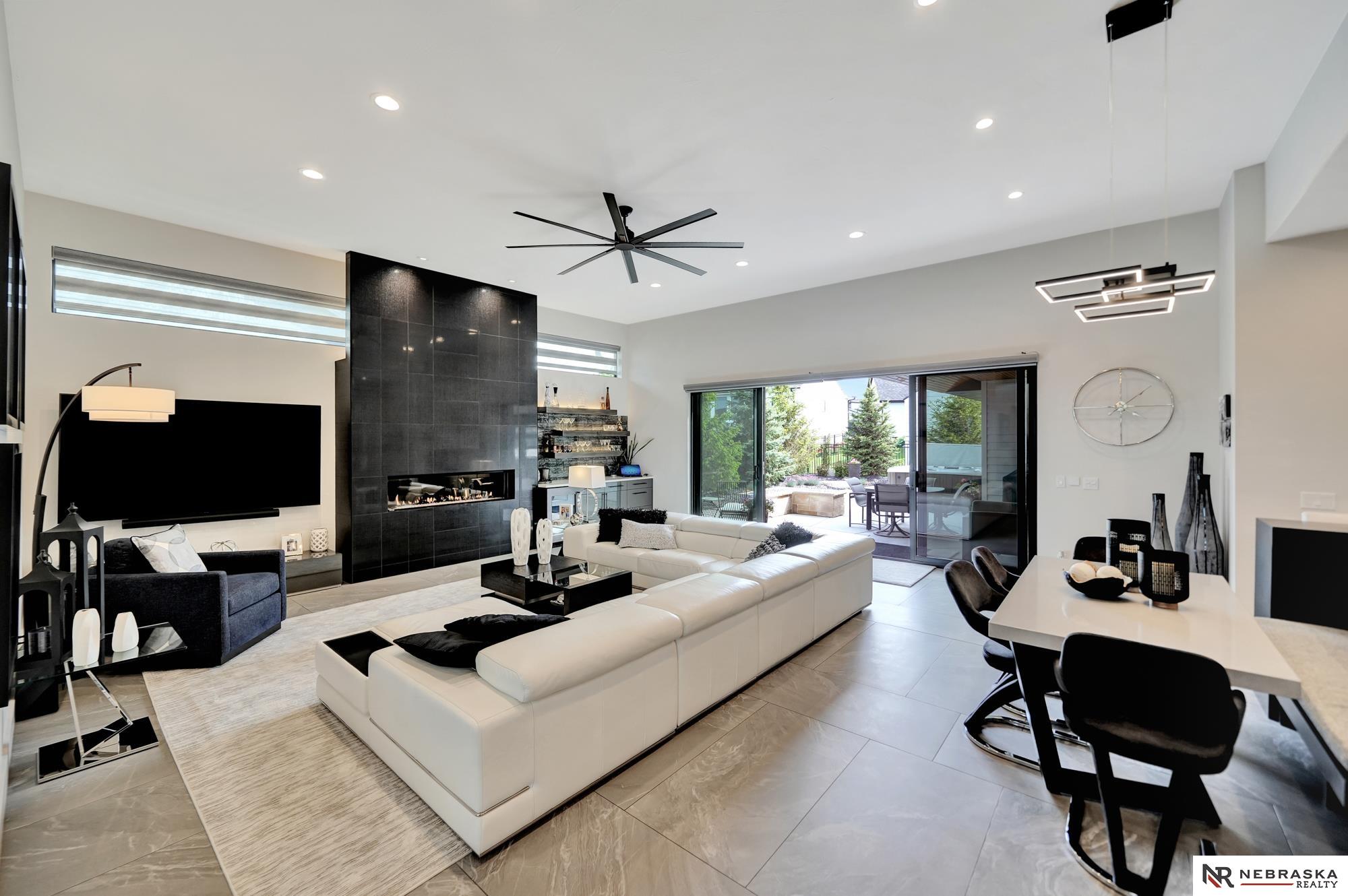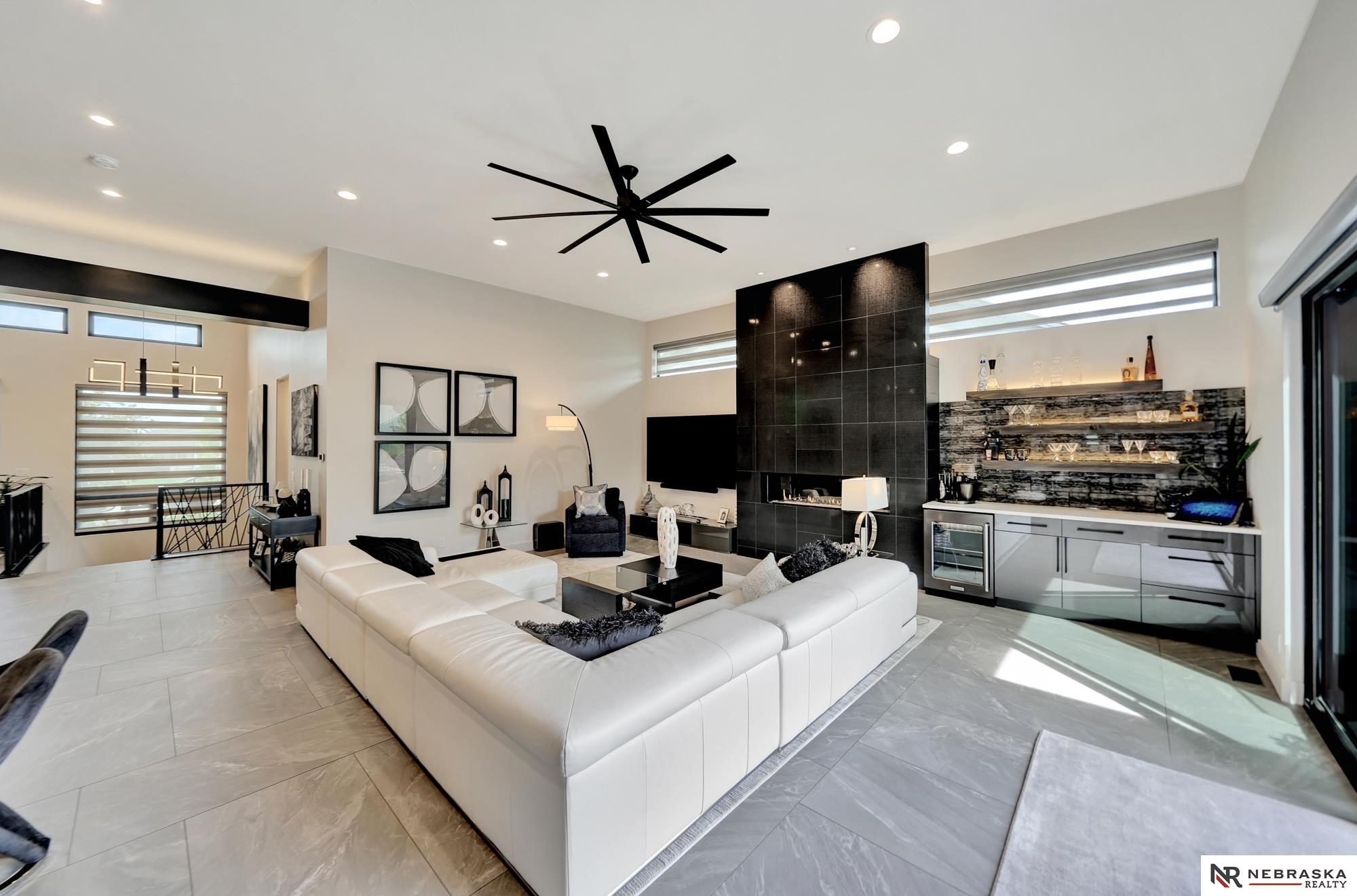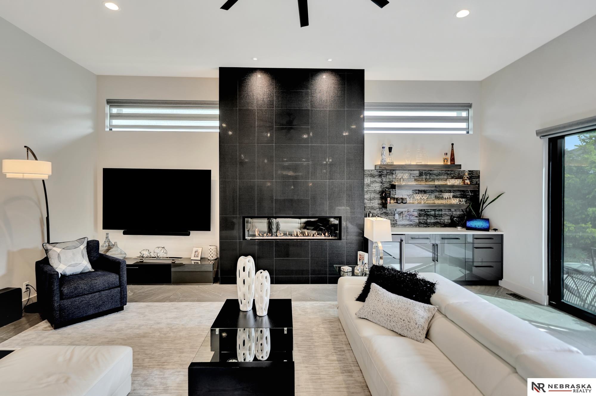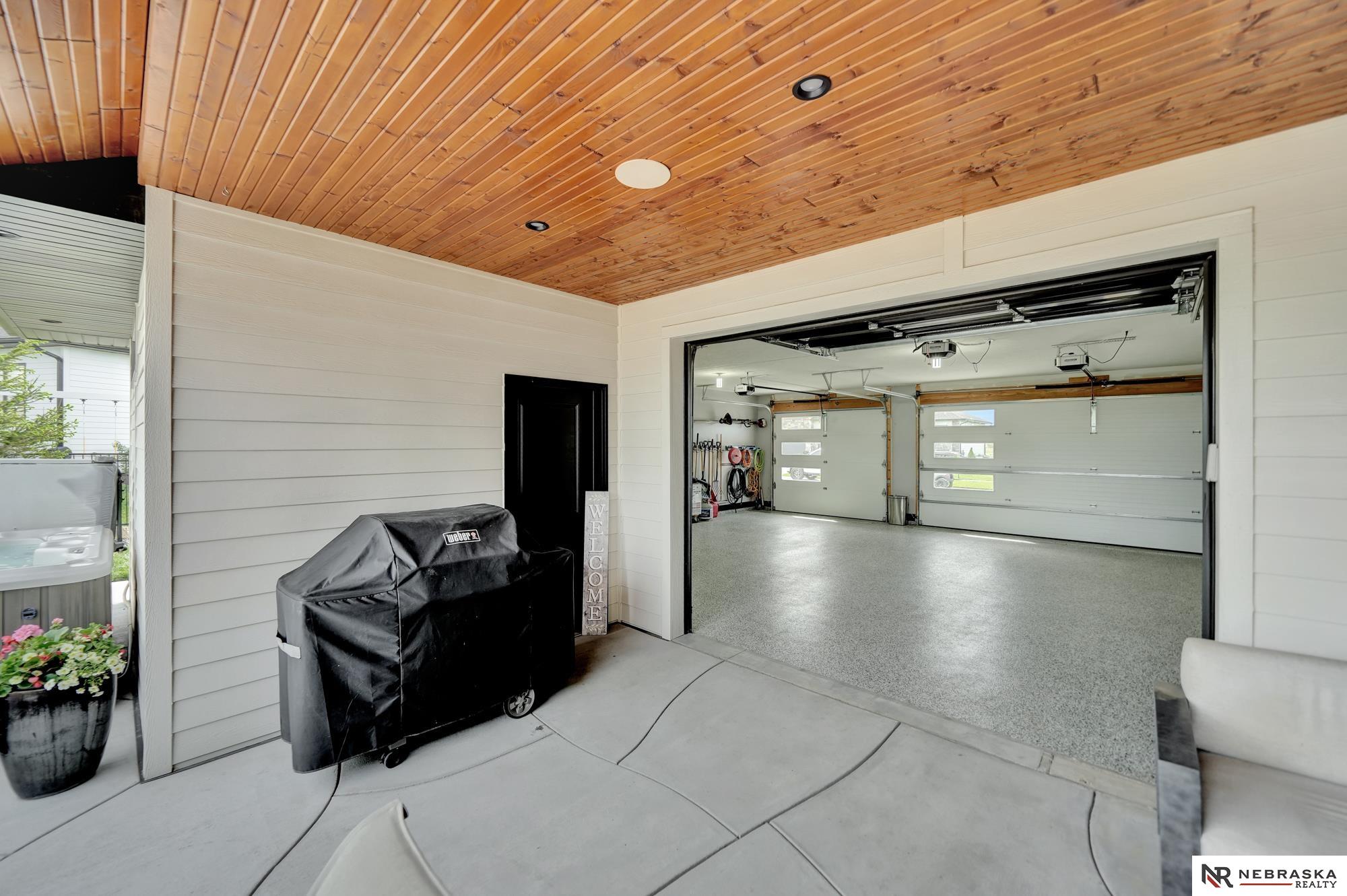Beautiful custom-built 4 bed, 4 bath home on a large corner lot with thoughtful design throughout! Oversized 3-stall garage features an epoxy floor and rear garage door that opens to a private patio with firepit and hot tub - perfect for entertaining. Inside you'll find 12' ceilings, quartz countertops, custom cabinetry and lighting, plus smart features including LED lighting and automatic blinds. The living room connects seamlessly to the patio through oversized sliding glass doors. The stunning primary suite is a true retreat with heated floors, jetted soaking tub and luxury shower with 7 heads including rainfall. The lower level offers a spacious family room, wet bar and built-in wine cooler with accent lighting. Zero-entry, beautifully landscaped yard, iron fence and a gorgeous gas fireplace on the patio complete this home!