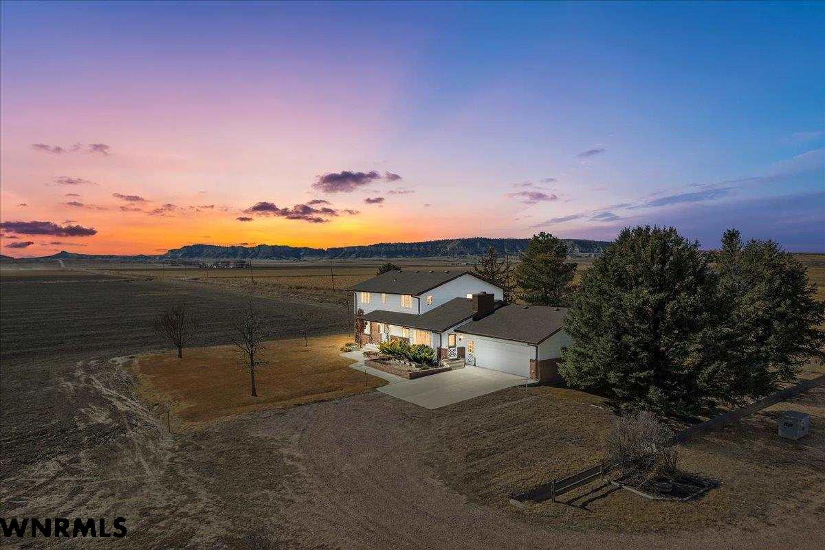 Welcome to a rare opportunity where productive farmland meets breathtaking Western Nebraska beauty. This exceptional farm property offers the perfect blend of agricultural potential and stunning panoramic views that will take your breath away every single morning. The spacious 3,139-square-foot home features five generous bedrooms and three full bathrooms provide ample space for everyone. Cozy wood-burning fireplace is the massive main floor family room. Laundry room just steps from the large kitchen! Unfinished basement has over 1900 square feet of additional living space if finished. Every window frames a picture-worthy scene, from the iconic Scotts Bluff National Monument rising majestically on the horizon to the rolling silhouette of the Wildcat Hills stretching across the landscape. Well established yard that the sisters would love to NOT mow again this summer! What truly sets this property apart is its productive farmland complete with water rights through the Gering/Fort Laramie Irrigation District — a tremendous asset for any agricultural operation. Whether you're an established farmer looking to expand or someone dreaming of embracing the farming lifestyle, this land is ready to work for you. Location couldn't be more convenient. Enjoy easy access to both Scottsbluff and Mitchell for shopping, schools or employment. Properties like this — where fertile ground, water rights, and million-dollar views converge — simply don't come along often. Schedule your private showing today before this incredible Nebraska gem is gone.