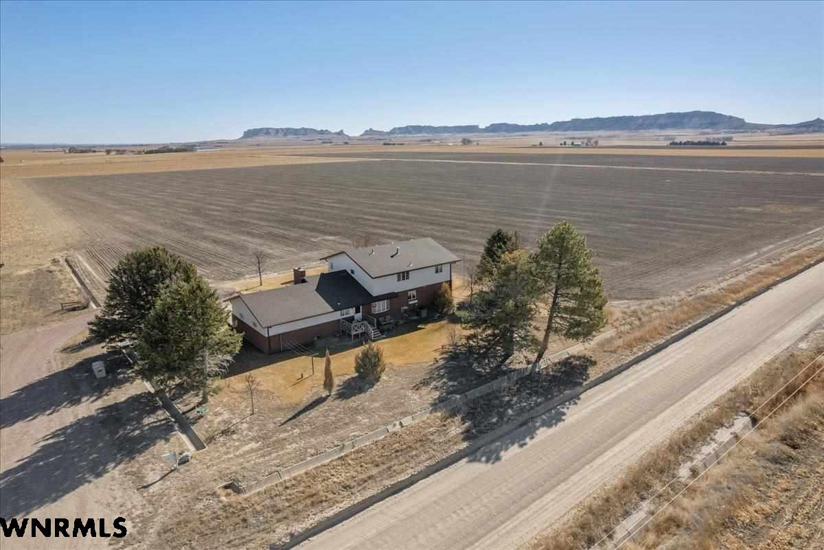Welcome to a rare opportunity where productive farmland meets breathtaking Western Nebraska beauty. This exceptional farm property offers the perfect blend of agricultural potential and stunning panoramic views that will take your breath away every single morning. The spacious 3,139-square-foot home features five generous bedrooms and three full bathrooms provide ample space for everyone. Cozy wood-burning fireplace is the massive main floor family room. Laundry room just steps from the large kitchen! Unfinished basement has over 1900 square feet of additional living space if finished. Every window frames a picture-worthy scene, from the iconic Scotts Bluff National Monument rising majestically on the horizon to the rolling silhouette of the Wildcat Hills stretching across the landscape. Well established yard that the sisters would love to NOT mow again this summer! What truly sets this property apart is its productive farmland complete with water rights through the Gering/Fort Laramie Irrigation District — a tremendous asset for any agricultural operation. Whether you're an established farmer looking to expand or someone dreaming of embracing the farming lifestyle, this land is ready to work for you. Location couldn't be more convenient. Enjoy easy access to both Scottsbluff and Mitchell for shopping, schools or employment. Properties like this — where fertile ground, water rights, and million-dollar views converge — simply don't come along often. Schedule your private showing today before this incredible Nebraska gem is gone.