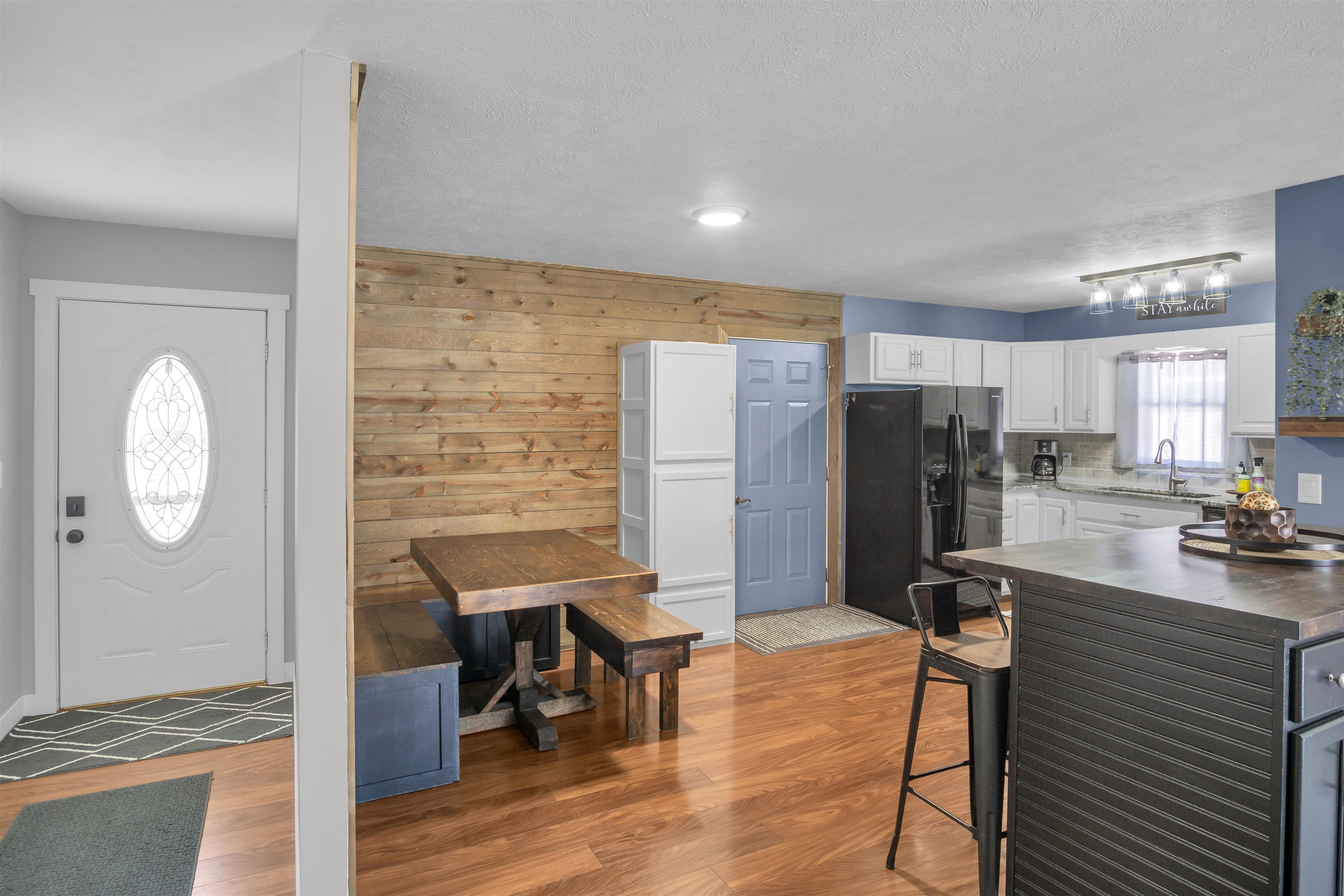 This fantastic home is located in a great neighborhood close to Kenwood Elementary, Kearney High School, Yanney Park, and Centennial Park and Pool! The driveway has an extra pad for additional off-street parking, the vinyl privacy fence is newer, and the large patio was recently poured. The gutters were replaced in 2022. Inside the home you will appreciate the improvements throughout! Most of the interior of the home was recently repainted, the flooring is newer, and the bathrooms and kitchen have been tastefully updated. The kitchen features granite countertops, a moveable island for flexible prep and seating space, and a charming breakfast nook that will stay. The laundry is conveniently located on the main floor. The spacious primary suite offers a roomy en-suite bathroom and the living room showcases a custom striking accent wall that adds character and style. Downstairs the finished basement provides even more living space with a large family room, 2 roomy bedrooms (1 is non-conforming), a bathroom, and a storage room complete with heavy-duty shelving that stays. This price in this neighborhood does not come along often, don’t miss this opportunity to make this outstanding property yours!