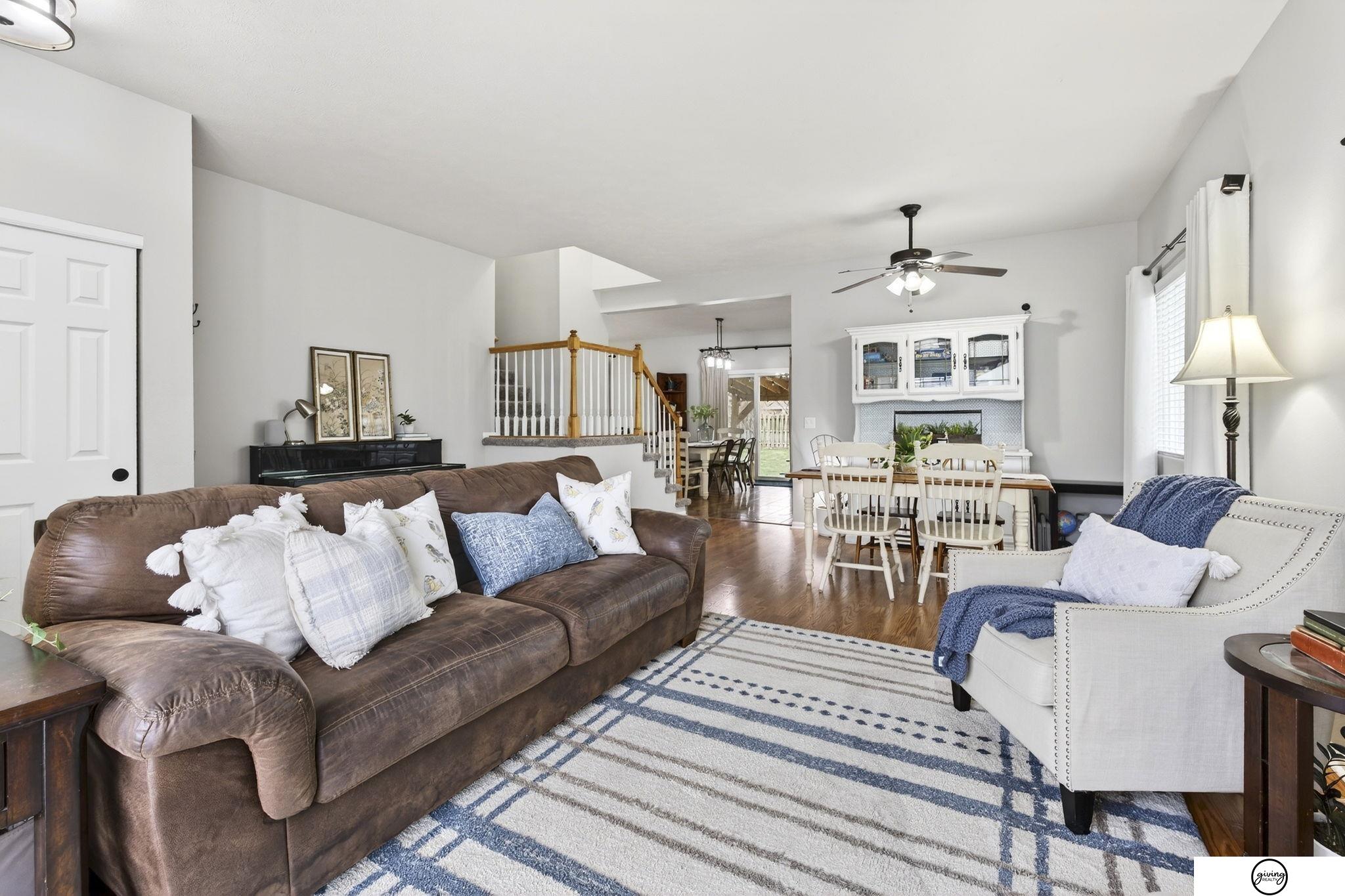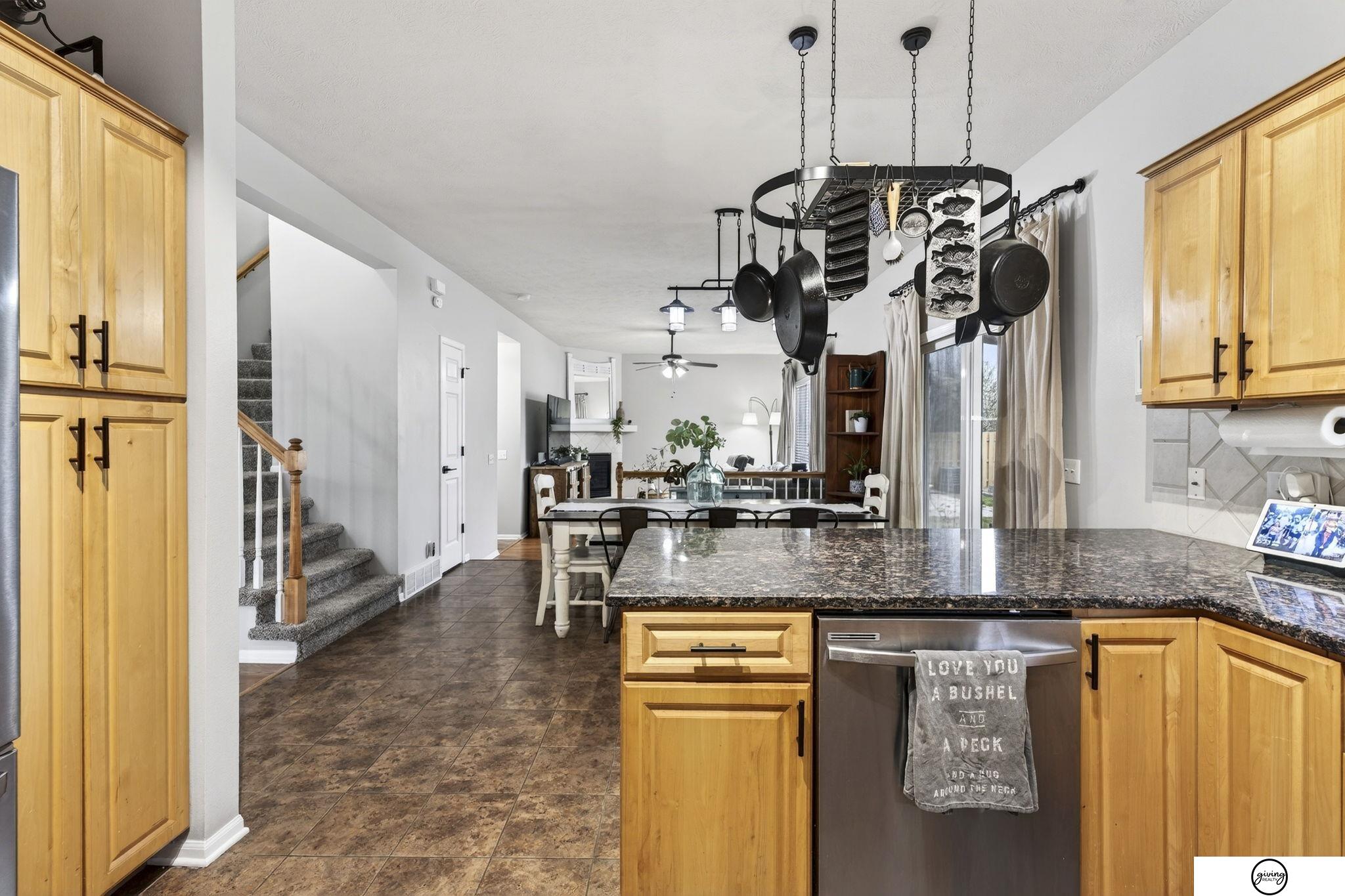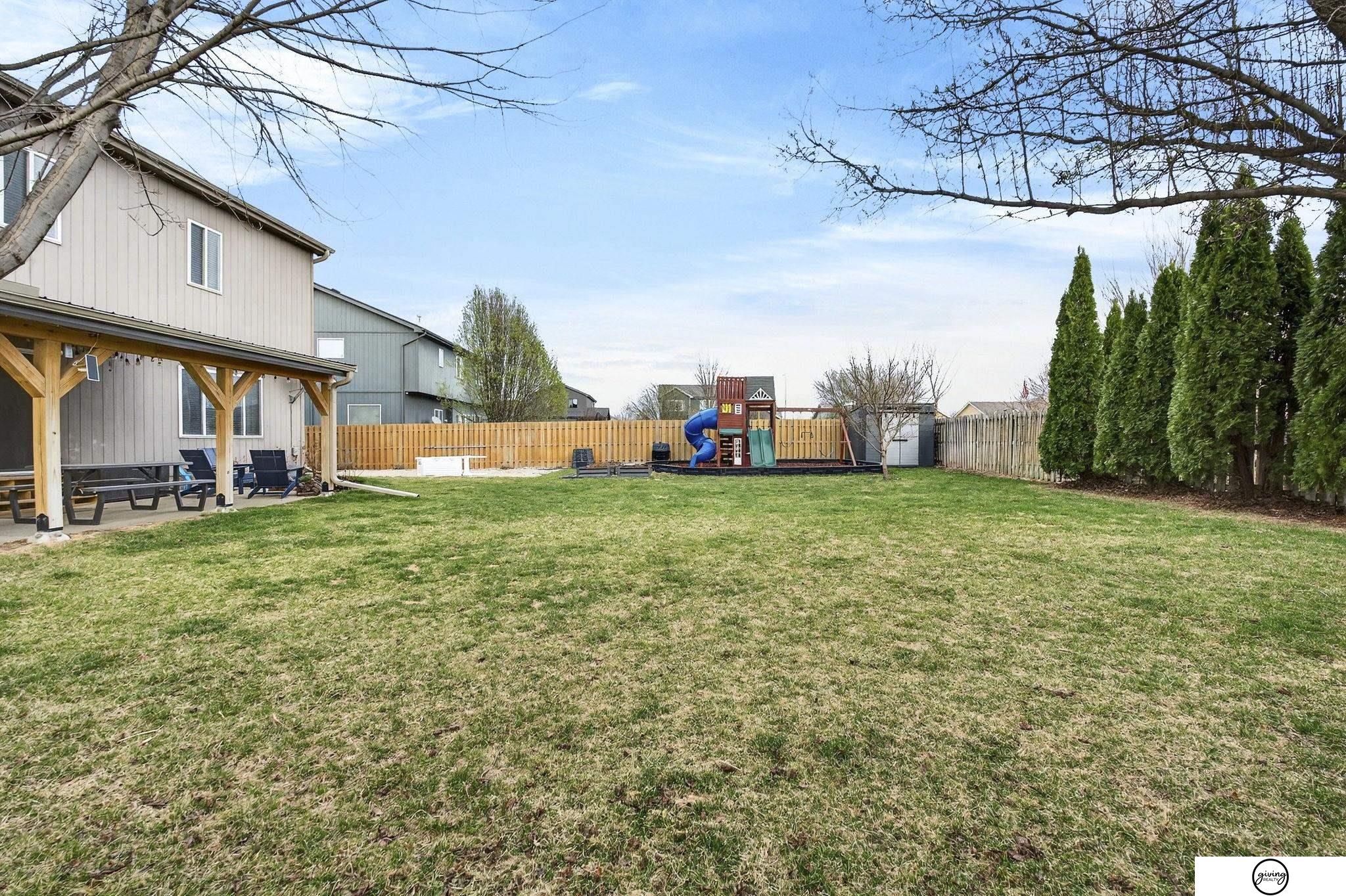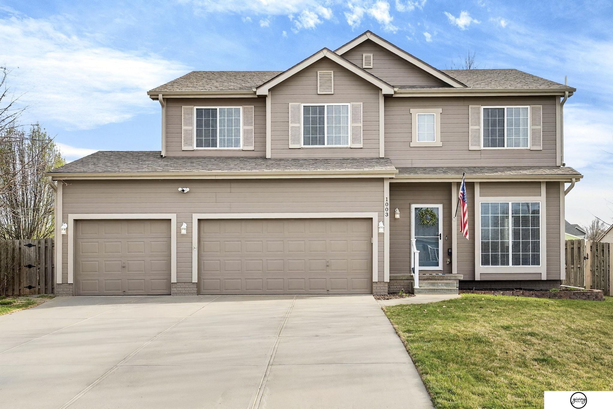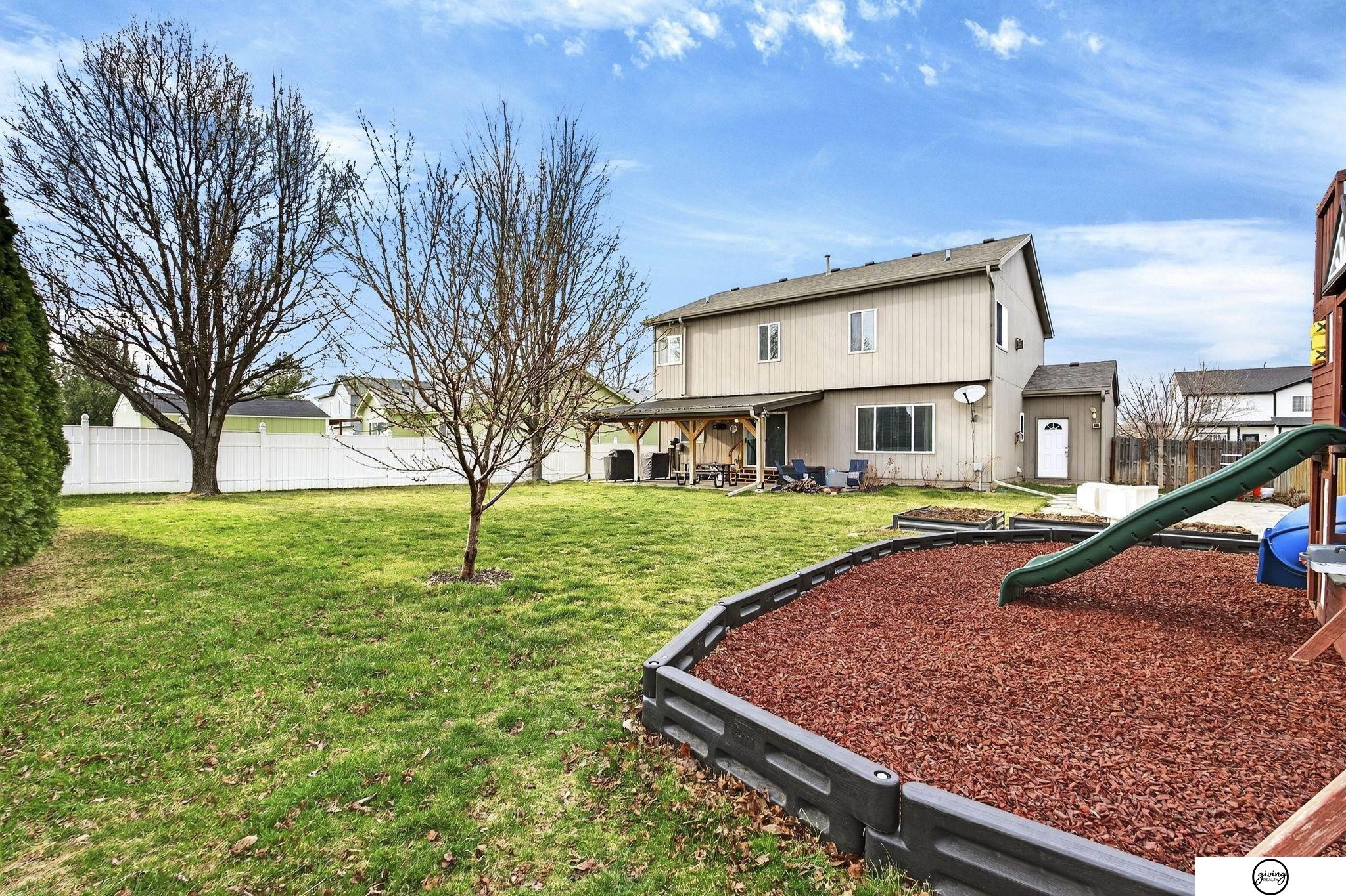 Welcome to this beautifully updated 2-story home in a sought-after Papillion neighborhood near the Walnut Creek Recreation area! From the moment you enter, you’re greeted by a versatile front living space perfect for an office, dining room, or play area. The open-concept main floor features a spacious kitchen with granite countertops, pantry, island peninsula, and flows into a cozy living room with electric fireplace. Upstairs offers 4 bedrooms with generous closets, including an impressive primary suite with a reading nook, fireplace, jetted tub, and large walk-in closet. The finished basement includes a 3/4 bath, egress window, wet bar area, and extra storage. Enjoy a huge covered patio in the back yard, new carpet and paint throughout, updated light fixtures, and tasteful updates across the home. The fully fenced .24 acre yard features a garden, a play set, plenty of open green space, and has both peach and apple trees! Seller requests a June 1 closing.