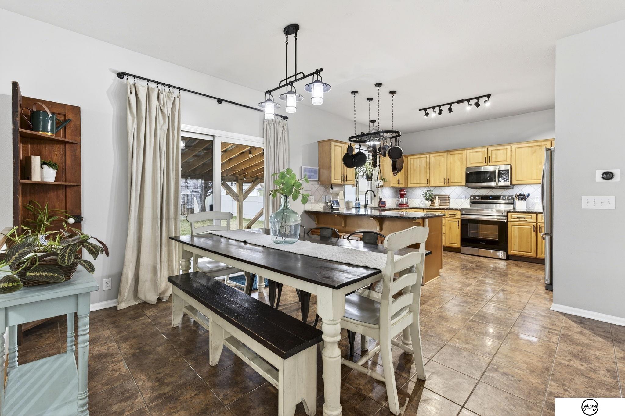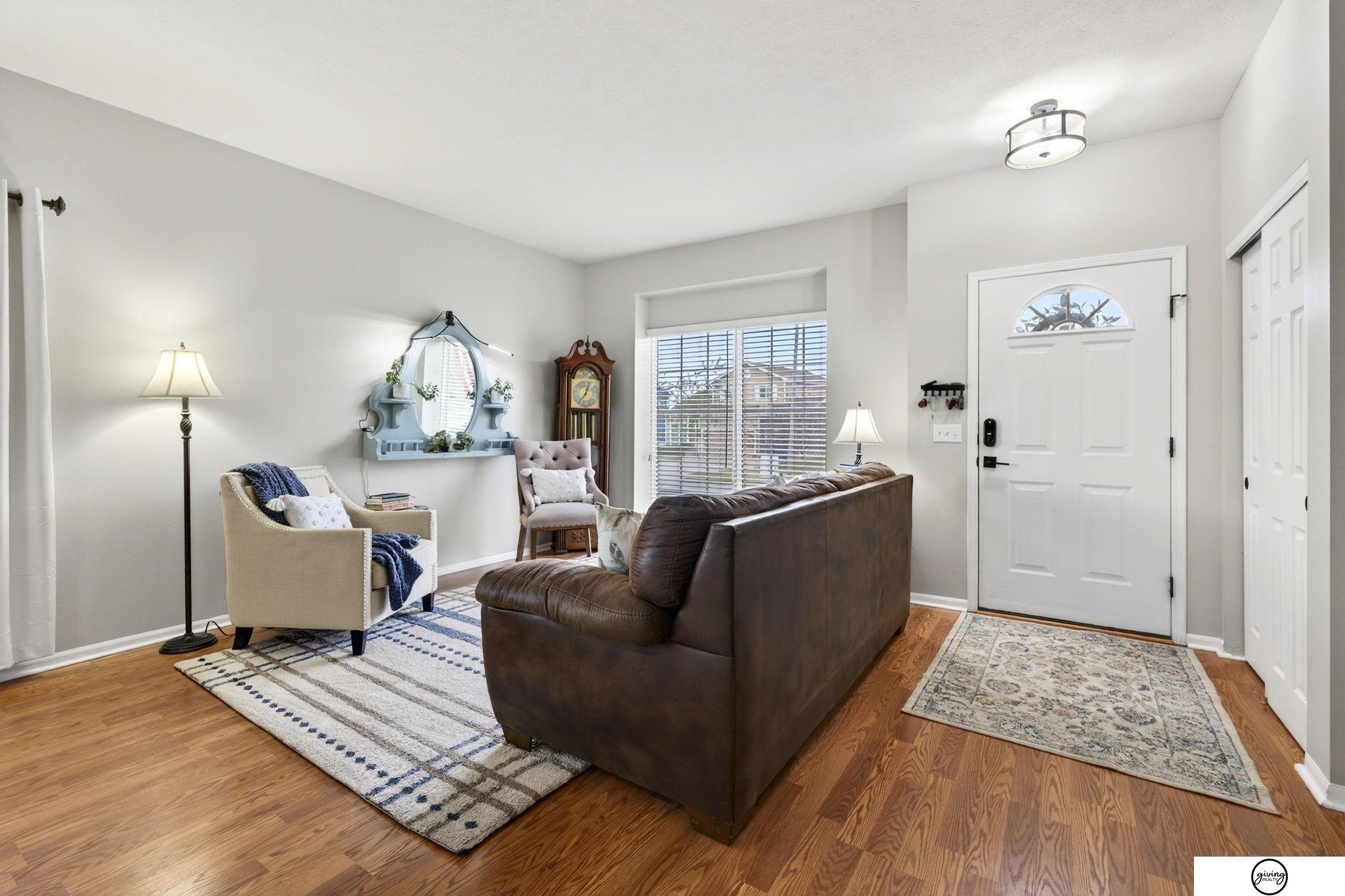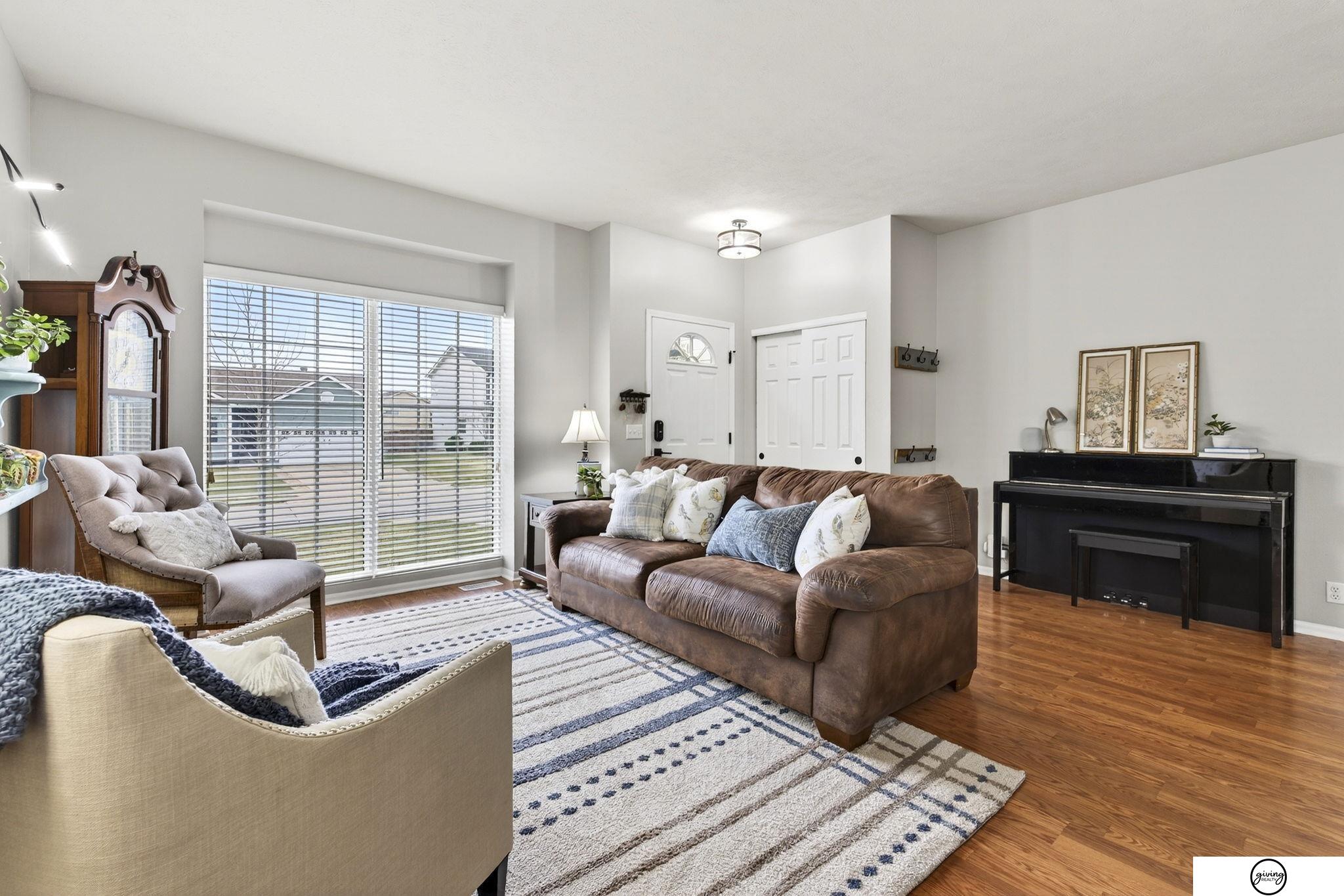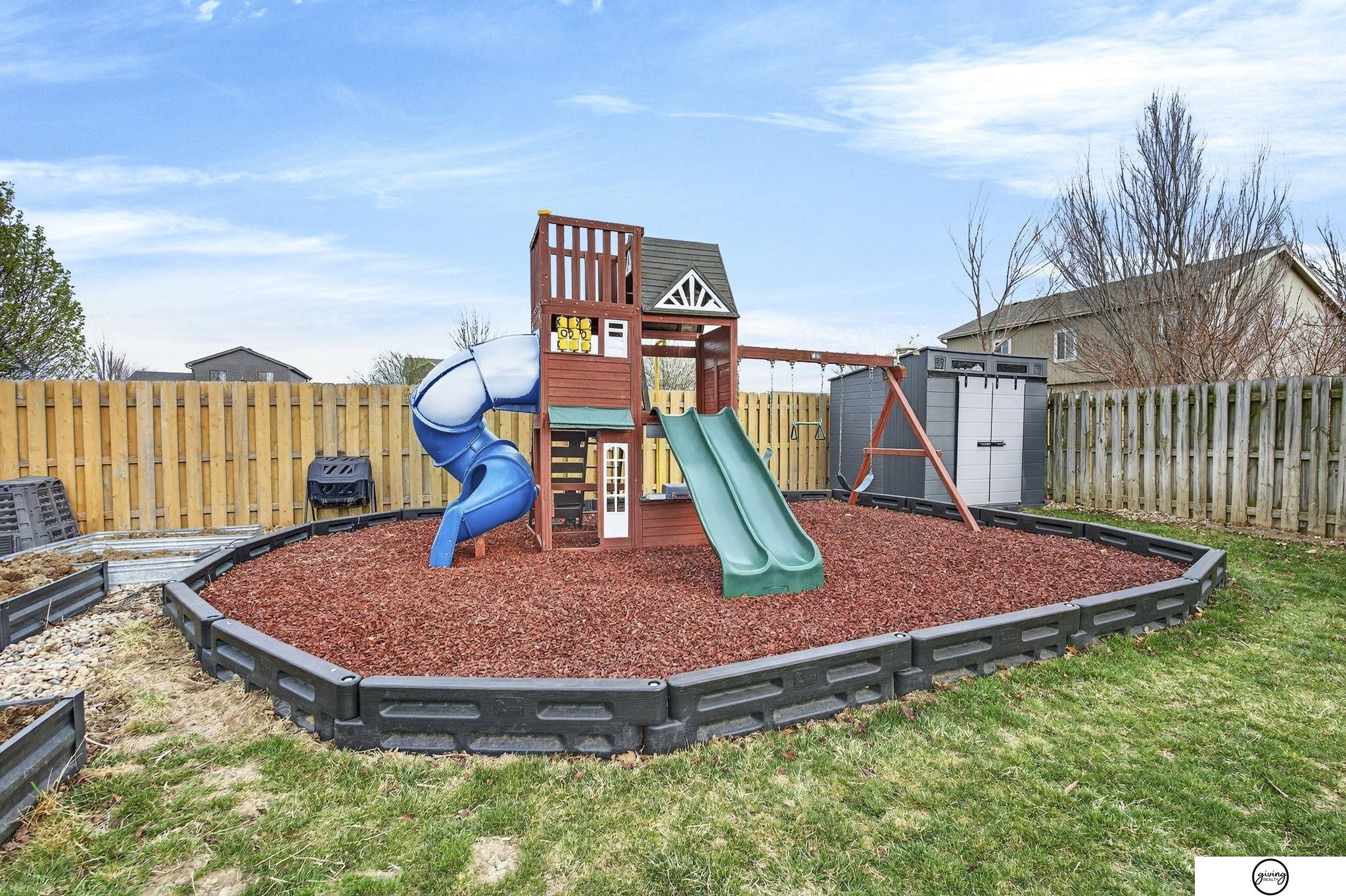 Welcome to this beautifully updated 2-story home in a sought-after Papillion neighborhood near the Walnut Creek Recreation area! From the moment you enter, you’re greeted by a versatile front living space perfect for an office, dining room, or play area. The open-concept main floor features a spacious kitchen with granite countertops, pantry, island peninsula, and flows into a cozy living room with electric fireplace. Upstairs offers 4 bedrooms with generous closets, including an impressive primary suite with a reading nook, fireplace, jetted tub, and large walk-in closet. The finished basement includes a 3/4 bath, egress window, wet bar area, and extra storage. Enjoy a huge covered patio in the back yard, new carpet and paint throughout, updated light fixtures, and tasteful updates across the home. The fully fenced .24 acre yard features a garden, a play set, plenty of open green space, and has both peach and apple trees! Seller requests a June 1 closing.