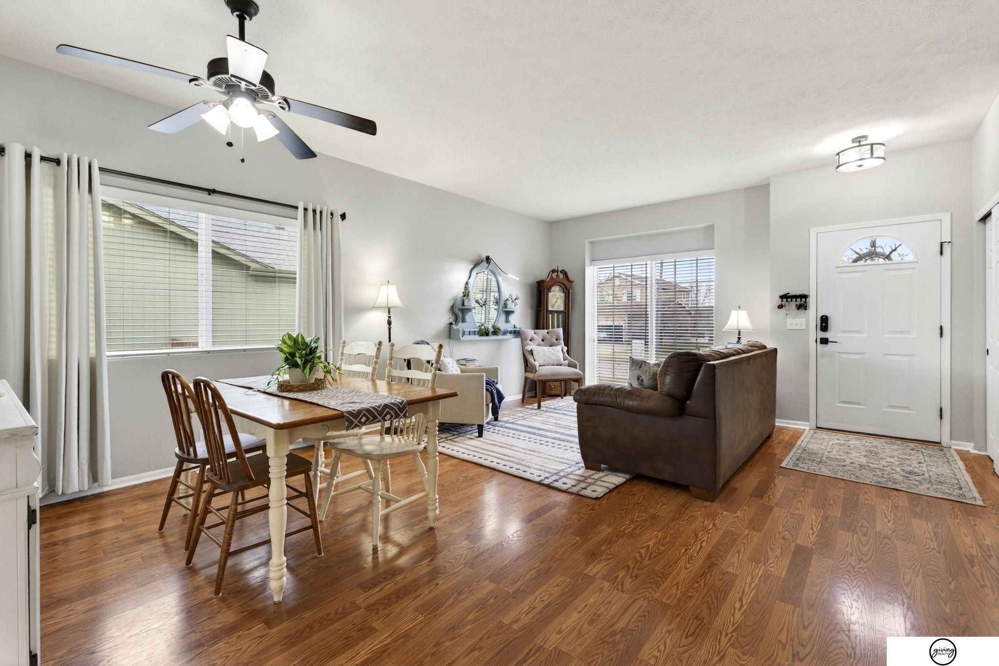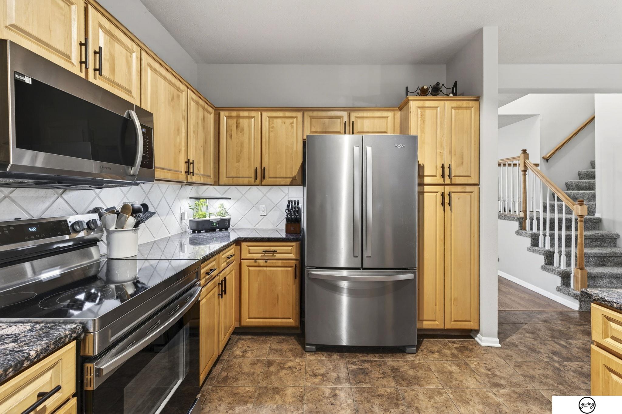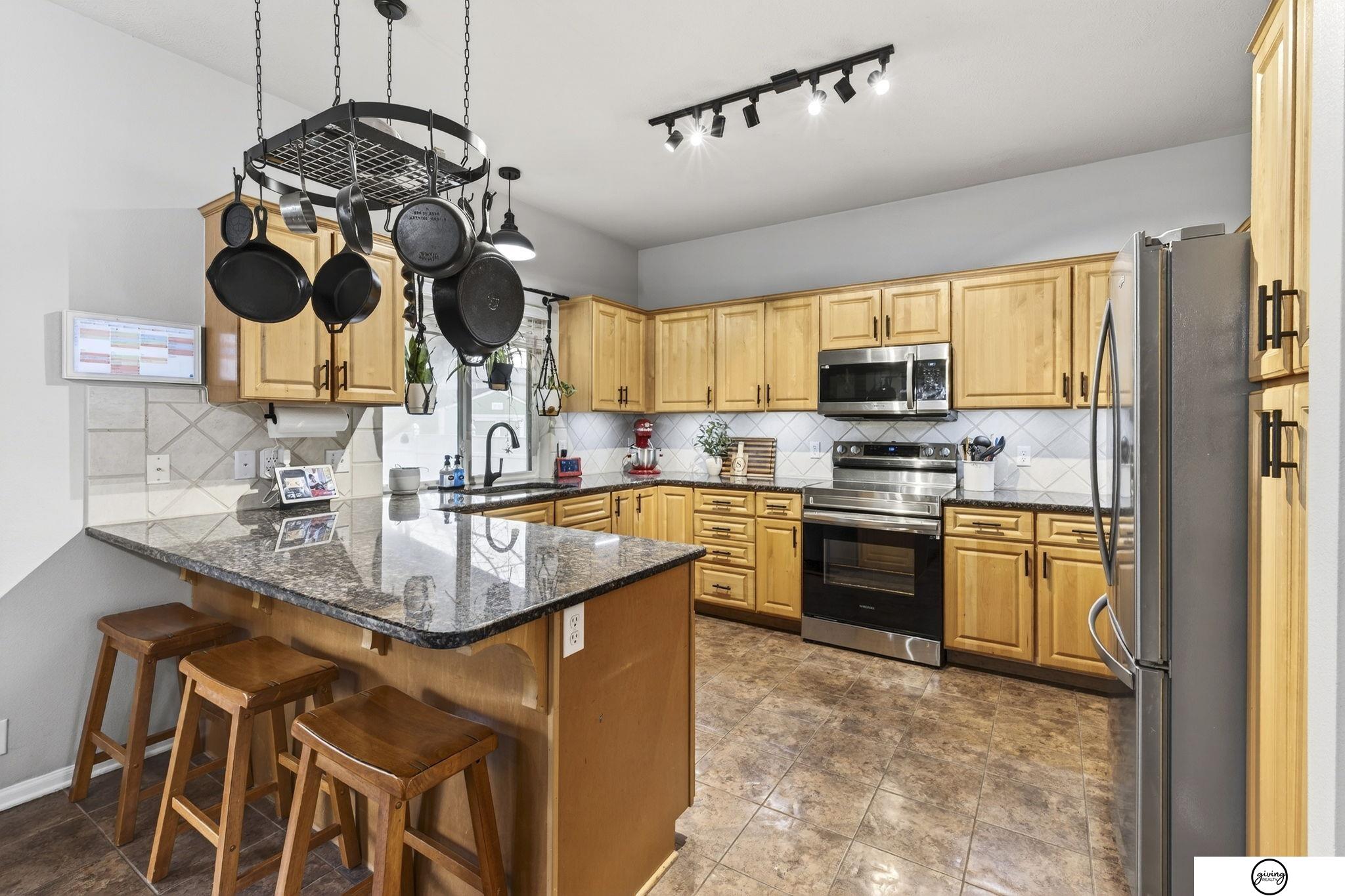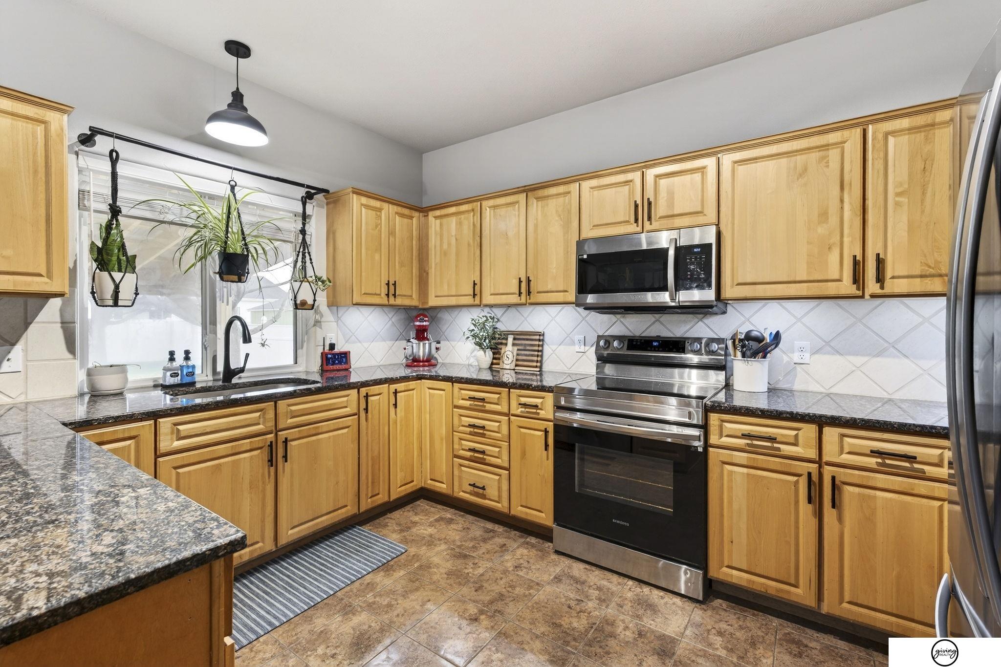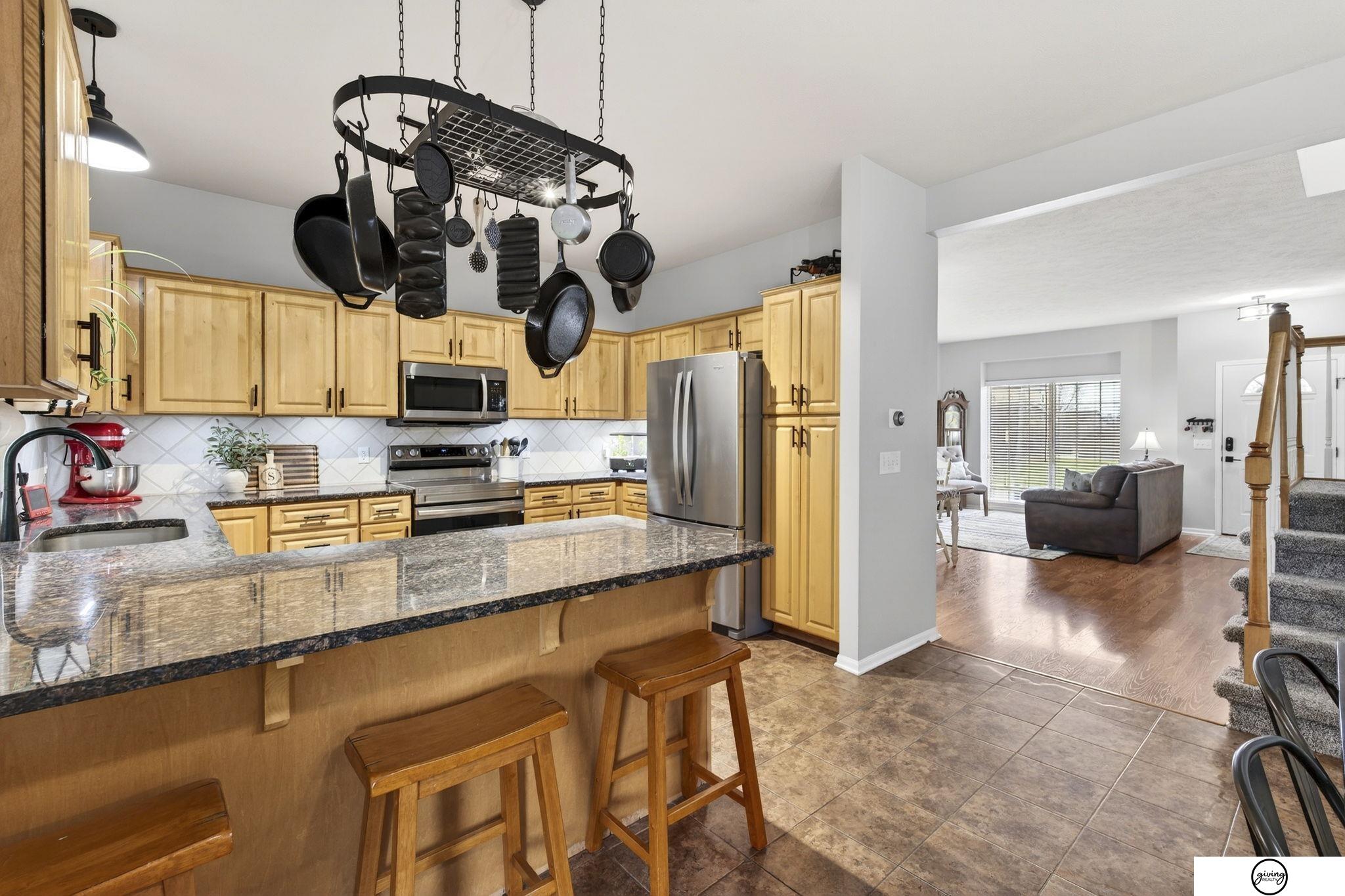 Welcome to this beautifully updated 2-story home in a sought-after Papillion neighborhood near the Walnut Creek Recreation area! From the moment you enter, you’re greeted by a versatile front living space perfect for an office, dining room, or play area. The open-concept main floor features a spacious kitchen with granite countertops, pantry, island peninsula, and flows into a cozy living room with electric fireplace. Upstairs offers 4 bedrooms with generous closets, including an impressive primary suite with a reading nook, fireplace, jetted tub, and large walk-in closet. The finished basement includes a 3/4 bath, egress window, wet bar area, and extra storage. Enjoy a huge covered patio in the back yard, new carpet and paint throughout, updated light fixtures, and tasteful updates across the home. The fully fenced .24 acre yard features a garden, a play set, plenty of open green space, and has both peach and apple trees! Seller requests a June 1 closing.