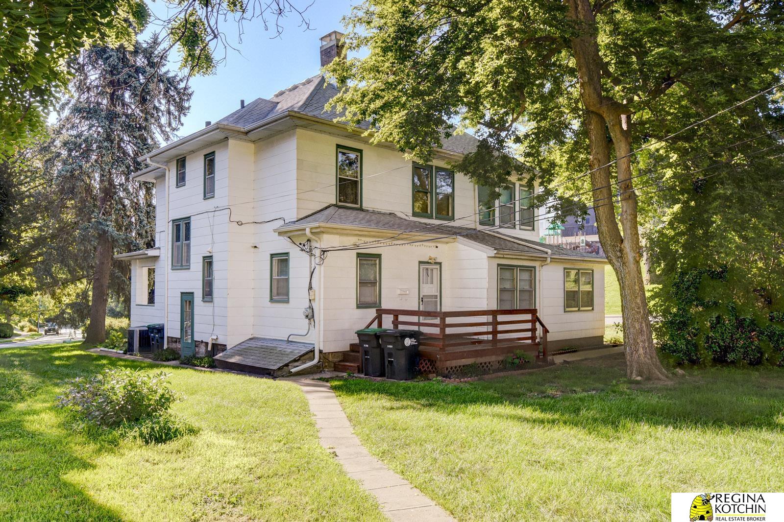 What a great opportunity! Spotless, well maintained home in Historic Bemis Park. Same Owner over 40 years. Live in one Apt and have rental income from the other two apartments and garages. Apt 2 features new carpet, new paint, Mannington flooring, 3 bedrooms, full bath, and private deck. This home has GREAT BONES and is built like a FORTRESS. Multi-family Home w/drop zone. Rental income potential or use as a Single Family Home w/detached 2 car garage. Situated on a double lot w/mature trees and inviting front porch. Extraordinary 32" block foundation. GROUNDSWORKS installed a waterproofing system, sump pump and April Aire Dehumidifier in Sept 2025. Hardwood floors on most floors. Apt 1 is available - 1 bedroom with enchanting views of the trees, a large living room, kitchen and full bath. Apt 3 Efficiency Apt is RENTED with a combination living room/sleeping area, kitchen and full bath. Close proximity to Dundee, Old Market, Creighton and UNMC. VA/FHA financing is welcome.