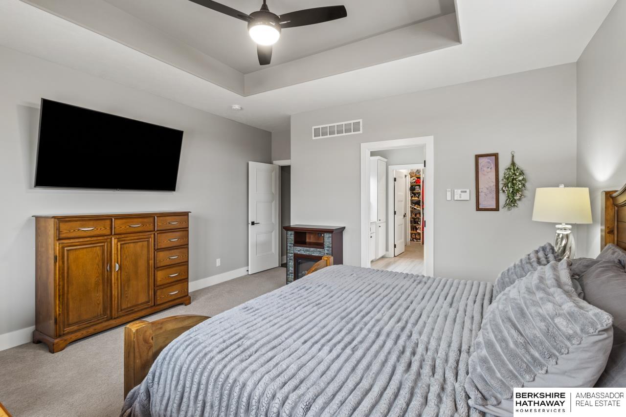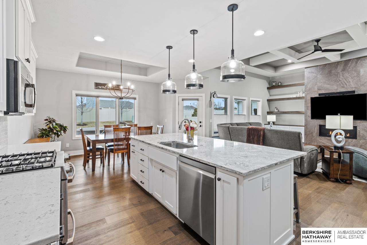 Your welcomed w/ engineered wood floors flowing through the living areas & into the living room, highlighted by a custom ceiling & a dramatic floor-to-ceiling tiled gas fireplace.The kitchen features a gas range, island sink, walk-in pantry with a coffee bar,& all kitchen appliances included.The primary suite w/ walk in closet & private bath, two more bedrooms including one w/ French doors perfect for a home office, plus a full bath & laundry room complete the main level.The basement is ideal for entertaining w/ a spacious family room, rec area, wet bar w/ sink, two more bedrooms, a 3/4 bath, & generous storage.Enjoy outdoor living on the oversized, partially covered patio w/ composite decking & a fully fenced yard. A heated 3 car garage, sprinkler system, & passive radon complete this exceptional home. HOA: Villa dues $450 quarterly (Trash, lawn care, fertilizer treatment, snow removal, & exterior washing of windows yearly) & $850 yearly (pool & common green space).