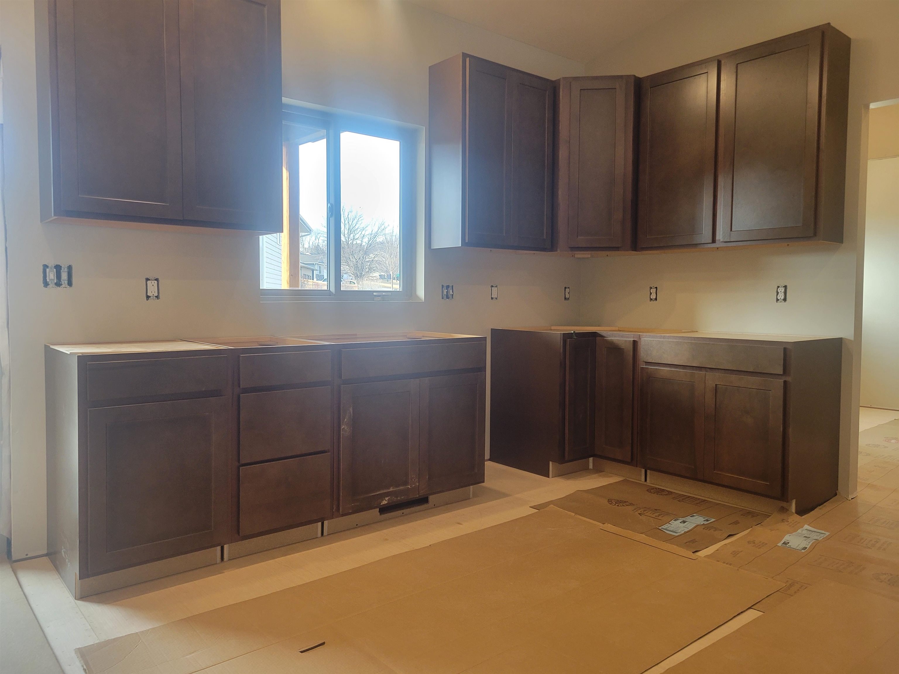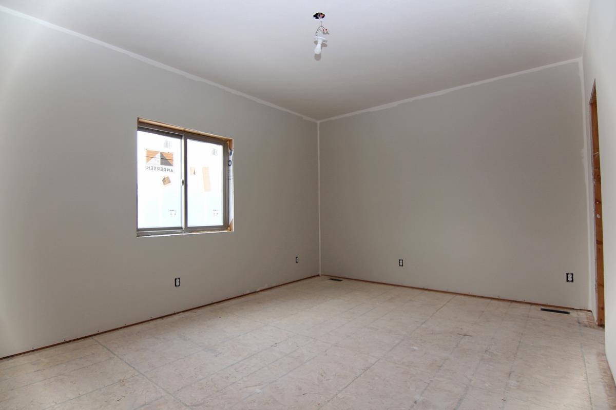 This new construction home sits on a corner lot, sod & underground sprinklers are included. Diamond Kote Rigidstack Siding with partial stone front, covered front porch and partially covered back deck featuring composite decking. An additional 80 sq. ft. patio will be poured adjacent to the deck. Finished & insulated two car garage measures 26x24 and has an additional 11x9'8" shop space in addition. Andersen windows, 2x6 exterior walls and a Trane high-efficiency gas furnace. Main floor laundry with a separate drop zone including cabinets. Vaulted ceiling in the great room features decorative nooks with a switched outlet. also there is an exterior soffit electrical switch (Christmas Lights). Master bath has dual vanities and tiled shower. Rough-in for a wet bar in the basement. Each bathroom has some unique characteristics which are hard to find.
