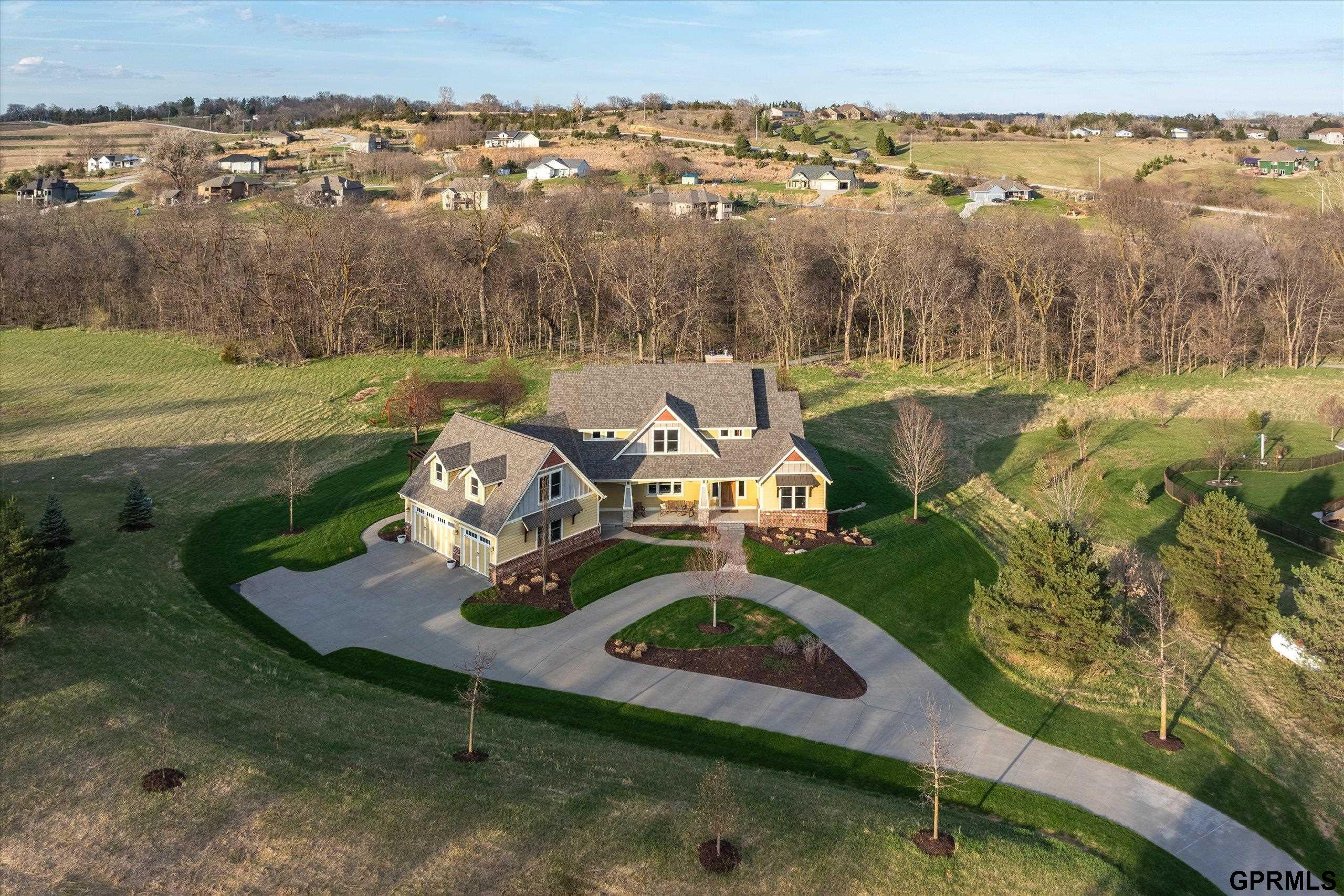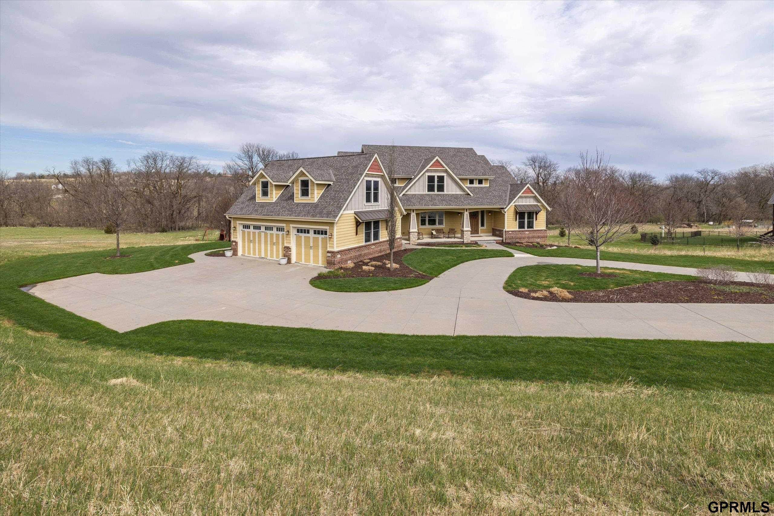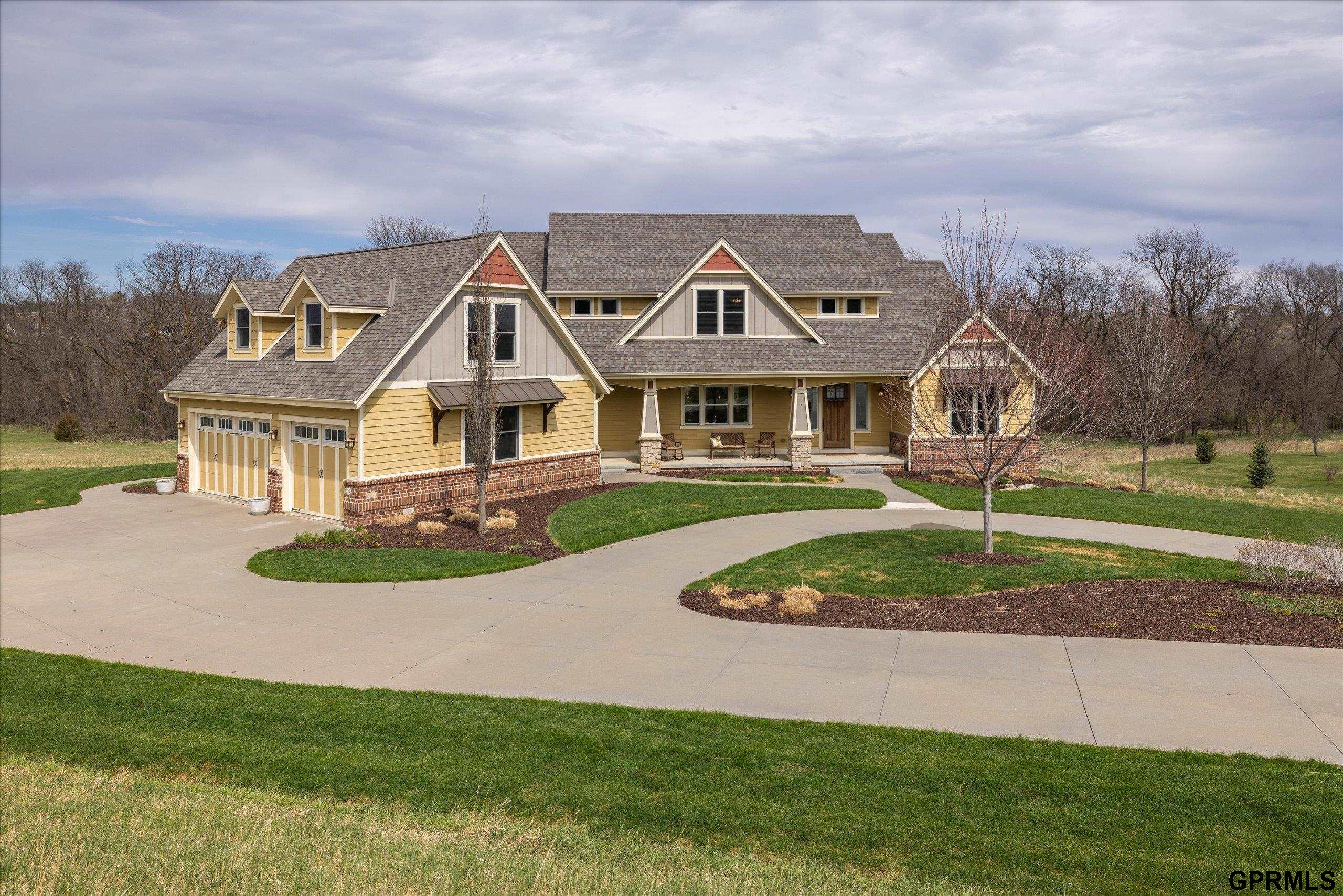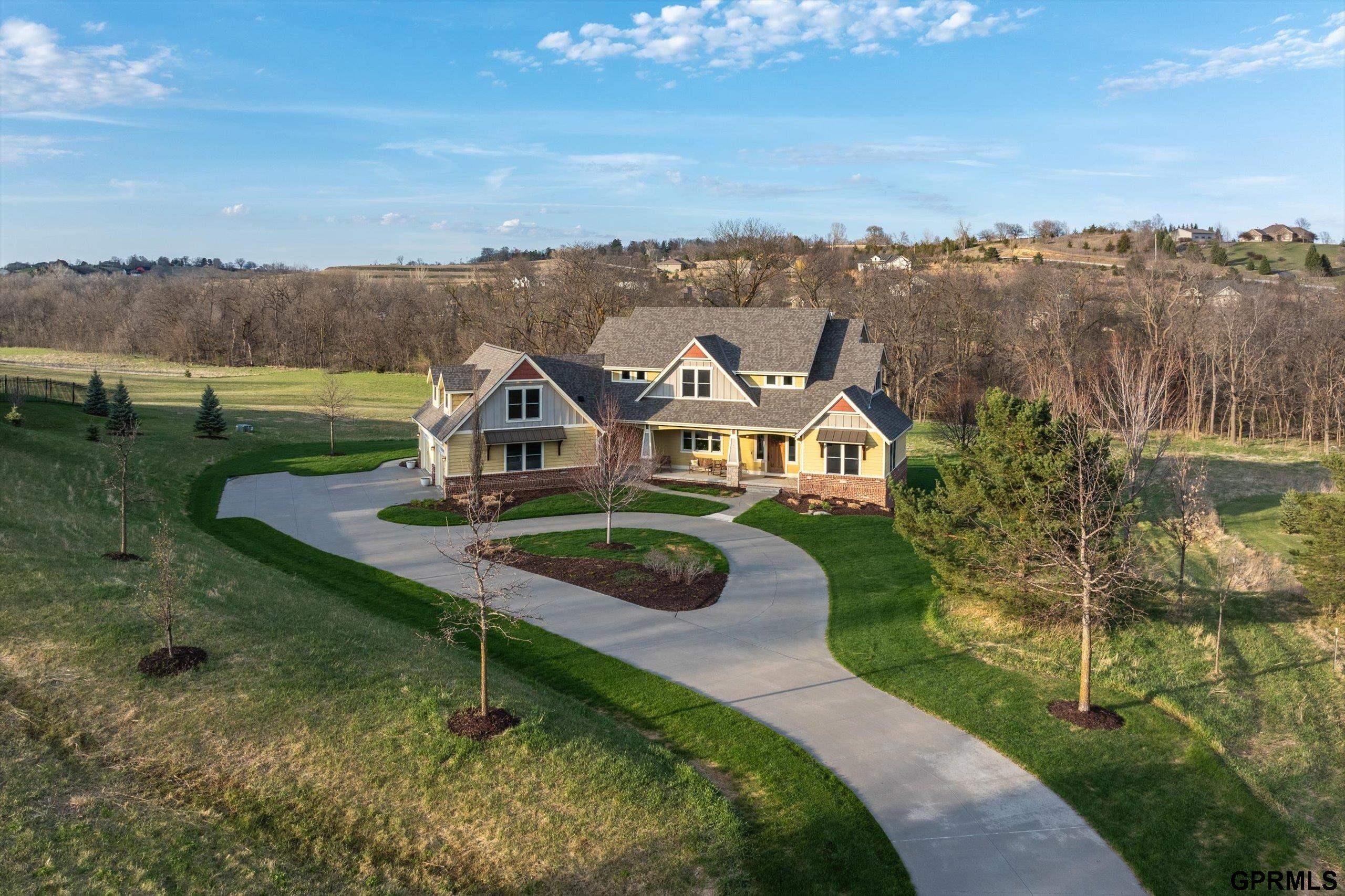 Timeless craftsmanship meets modern luxury in this exceptional custom-built Craftsman acreage estate offering nearly 5,000 sf of refined living space on 2.11 acres. Expansive windows capture peaceful views while Quarter & Rift Sawn Oak millwork and rich hardwood flooring create warmth and architectural character rarely found in today's homes. Two private master suites with luxury ensuite bathrooms, main floor bedroom with vaulted ceiling, 5 bedrooms, 5 bathrooms, 4 garage stalls, 3 floor-to-ceiling stone fireplaces, hardwood floors on main and upper levels, oversized bedrooms, gourmet kitchen, 2 pantry rooms, reclaimed barnwood kitchen island, custom live-edge wood bar, and stone wine cellar. Acreage backs to private paved nature trail, low 1.7% tax levy, energy efficient construction, private roads- ATVs allowed, all paved roads- no gravel. Estate is located in the exclusive Cottonwood Creek Estates, 10 minutes from the metro. New roof August 2025.