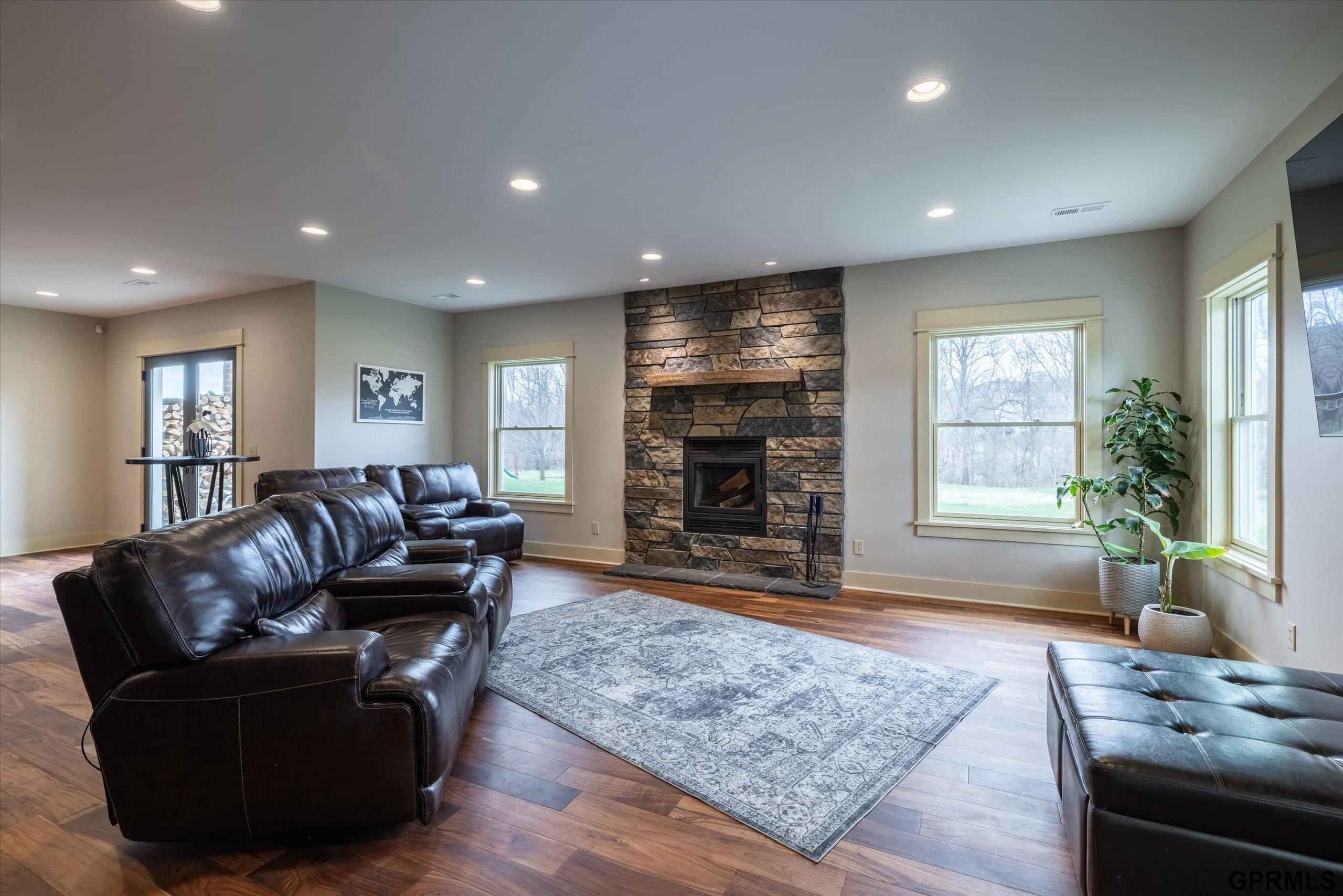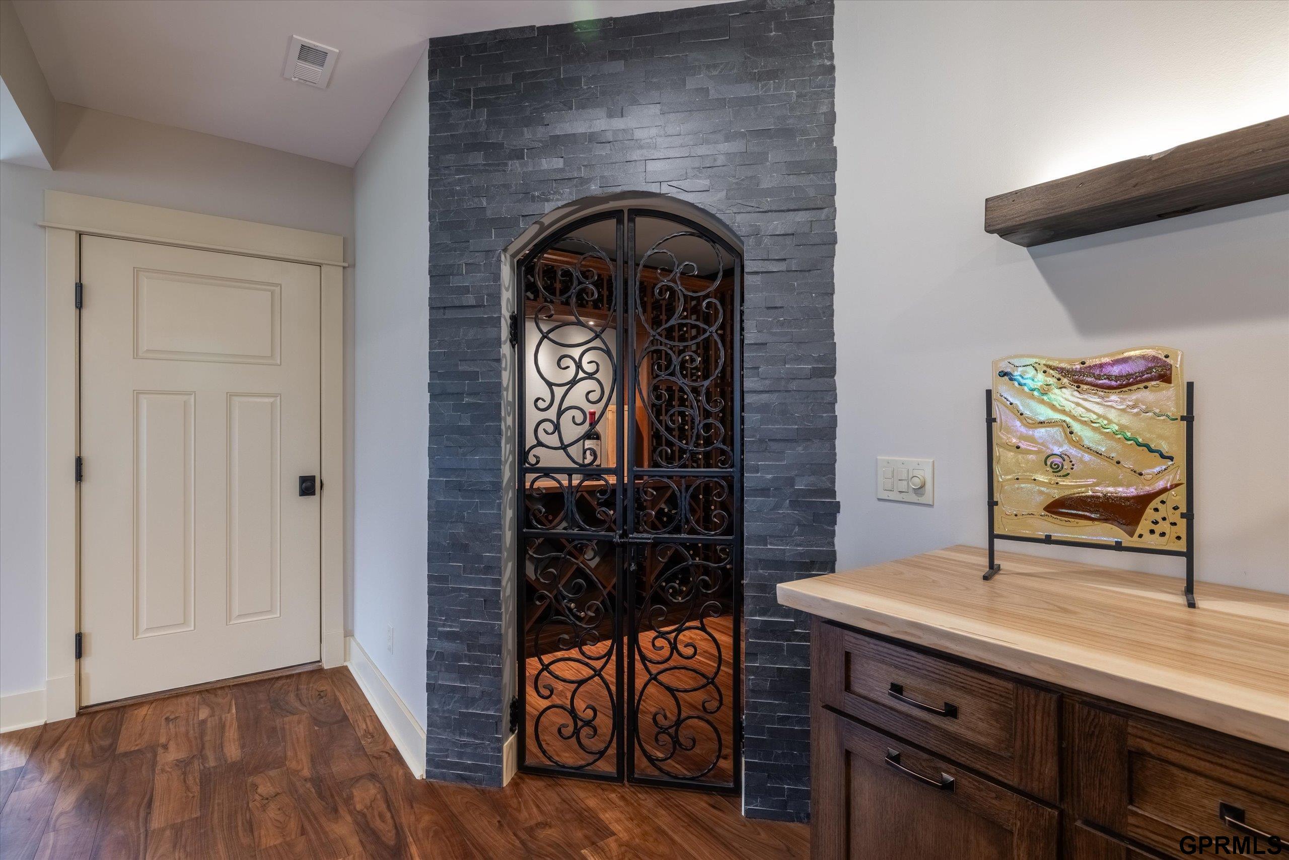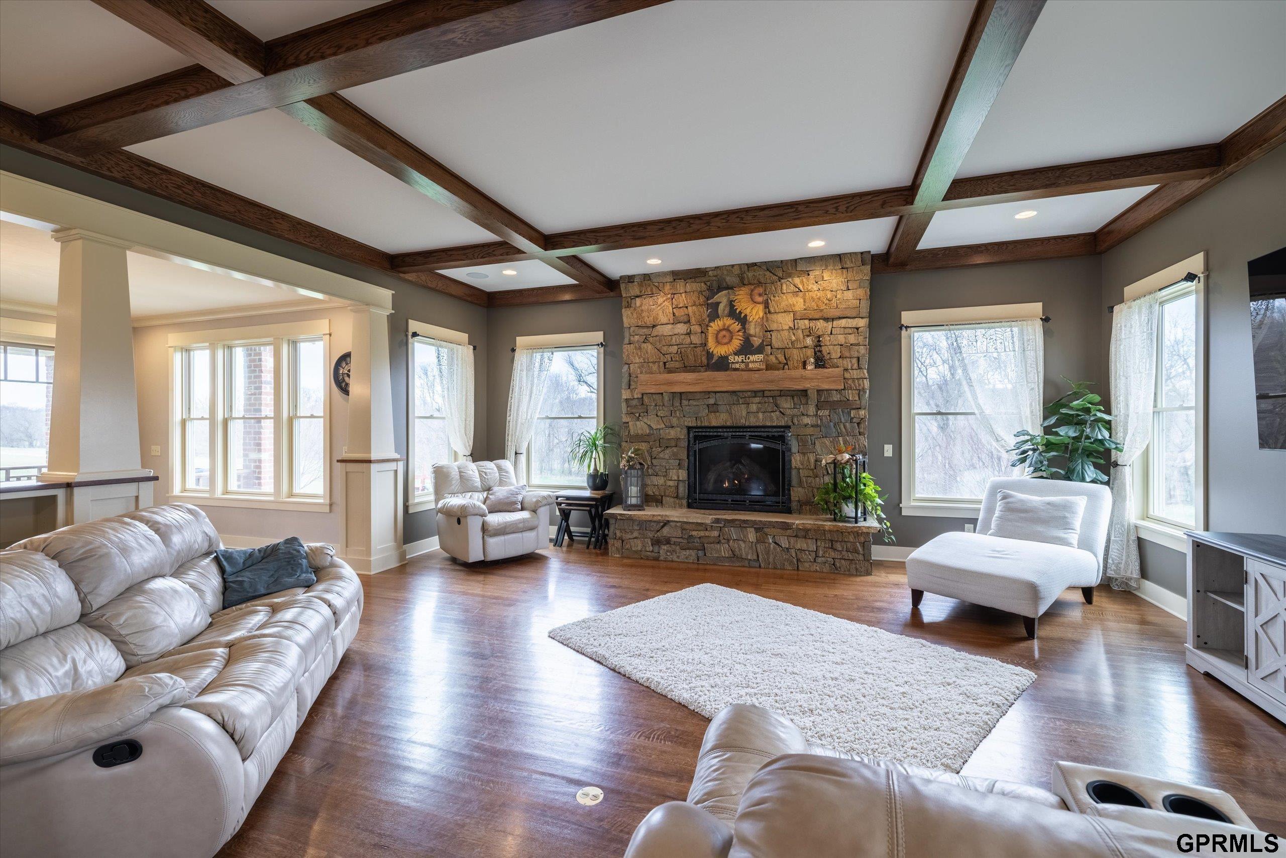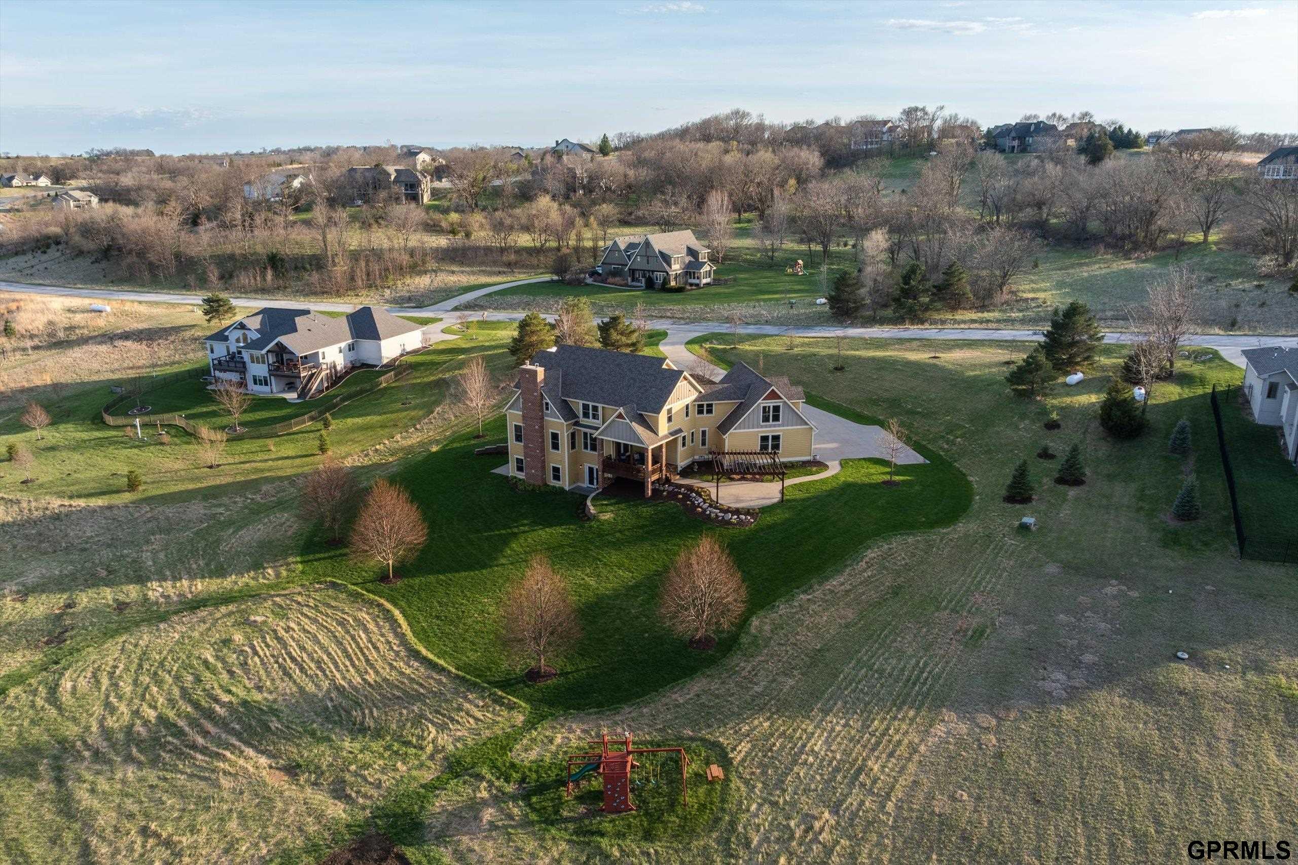 Timeless craftsmanship meets modern luxury in this exceptional custom-built Craftsman acreage estate offering nearly 5,000 sf of refined living space on 2.11 acres. Expansive windows capture peaceful views while Quarter & Rift Sawn Oak millwork and rich hardwood flooring create warmth and architectural character rarely found in today's homes. Two private master suites with luxury ensuite bathrooms, main floor bedroom with vaulted ceiling, 5 bedrooms, 5 bathrooms, 4 garage stalls, 3 floor-to-ceiling stone fireplaces, hardwood floors on main and upper levels, oversized bedrooms, gourmet kitchen, 2 pantry rooms, reclaimed barnwood kitchen island, custom live-edge wood bar, and stone wine cellar. Acreage backs to private paved nature trail, low 1.7% tax levy, energy efficient construction, private roads- ATVs allowed, all paved roads- no gravel. Estate is located in the exclusive Cottonwood Creek Estates, 10 minutes from the metro. New roof August 2025.
