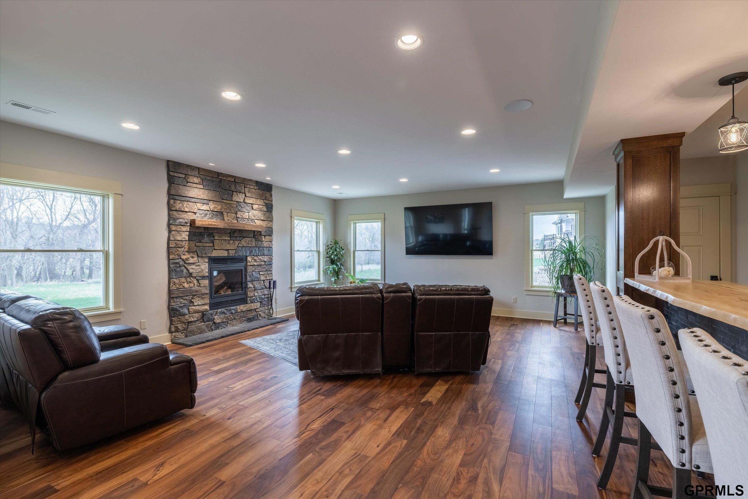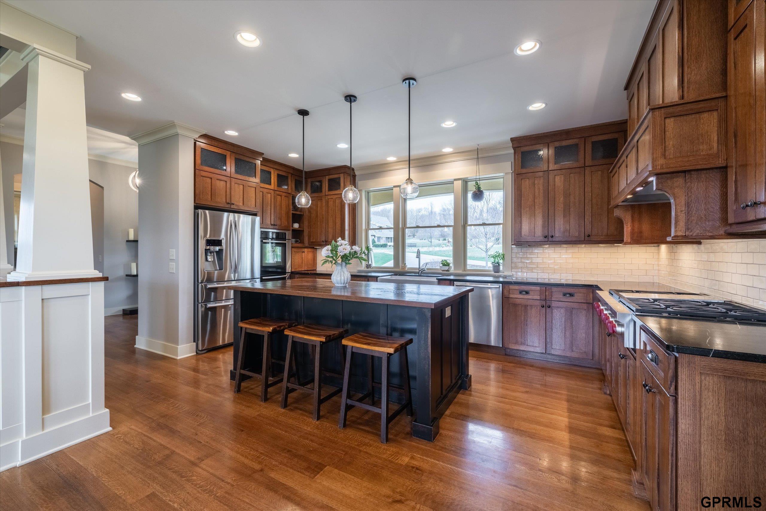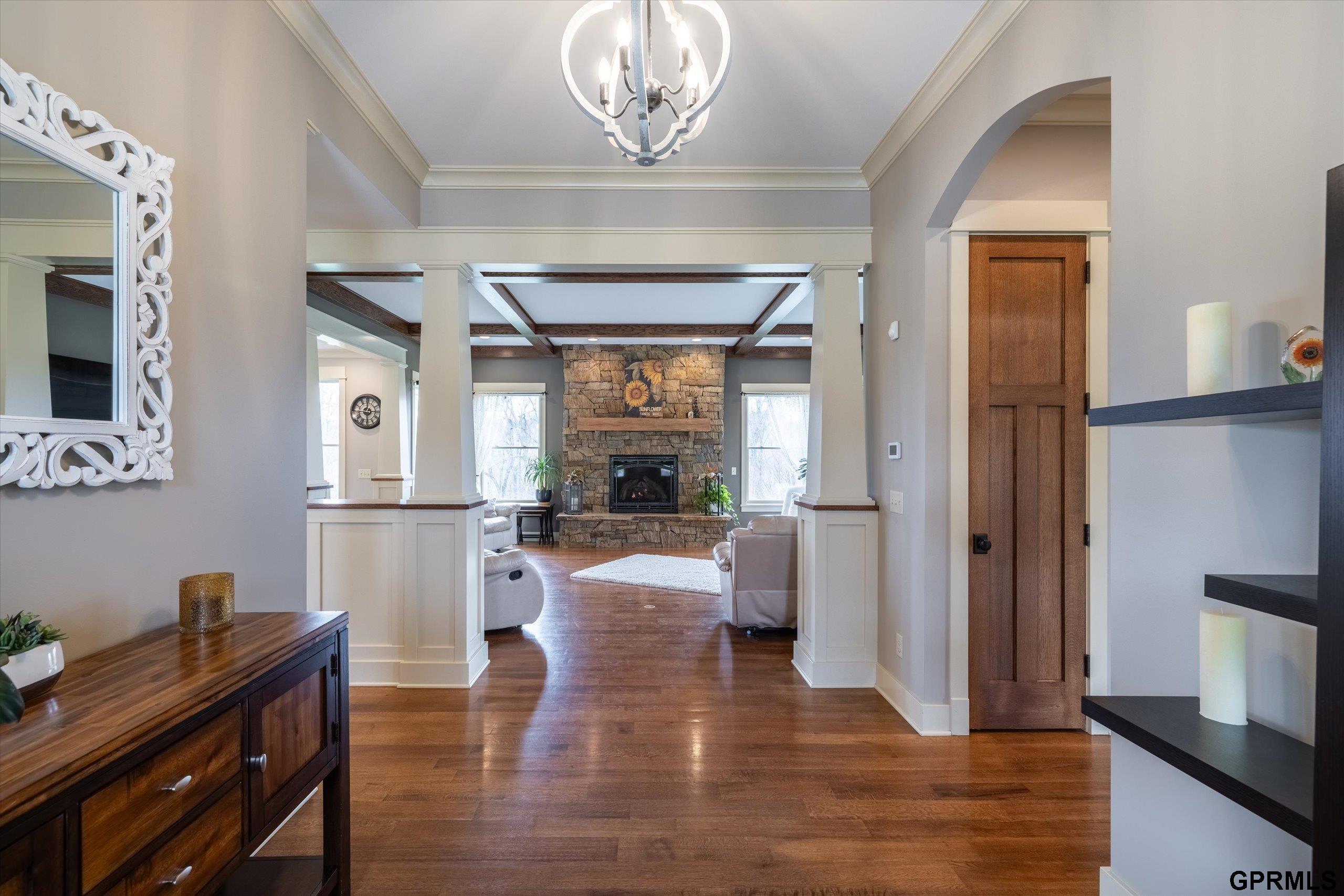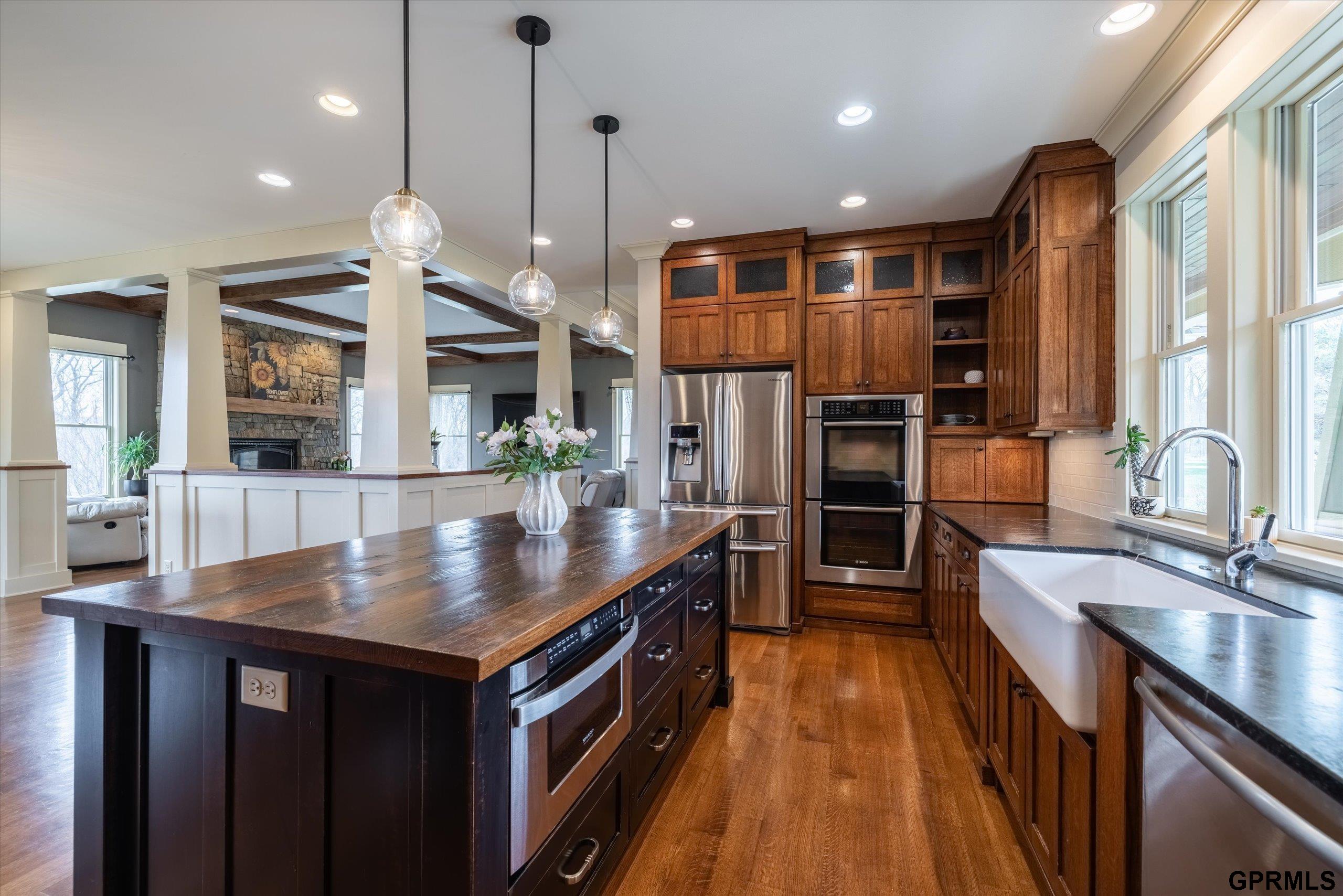 Timeless craftsmanship meets modern luxury in this exceptional custom-built Craftsman acreage estate offering nearly 5,000 sf of refined living space on 2.11 acres. Expansive windows capture peaceful views while Quarter & Rift Sawn Oak millwork and rich hardwood flooring create warmth and architectural character rarely found in today's homes. Two private master suites with luxury ensuite bathrooms, main floor bedroom with vaulted ceiling, 5 bedrooms, 5 bathrooms, 4 garage stalls, 3 floor-to-ceiling stone fireplaces, hardwood floors on main and upper levels, oversized bedrooms, gourmet kitchen, 2 pantry rooms, reclaimed barnwood kitchen island, custom live-edge wood bar, and stone wine cellar. Acreage backs to private paved nature trail, low 1.7% tax levy, energy efficient construction, private roads- ATVs allowed, all paved roads- no gravel. Estate is located in the exclusive Cottonwood Creek Estates, 10 minutes from the metro. New roof August 2025.