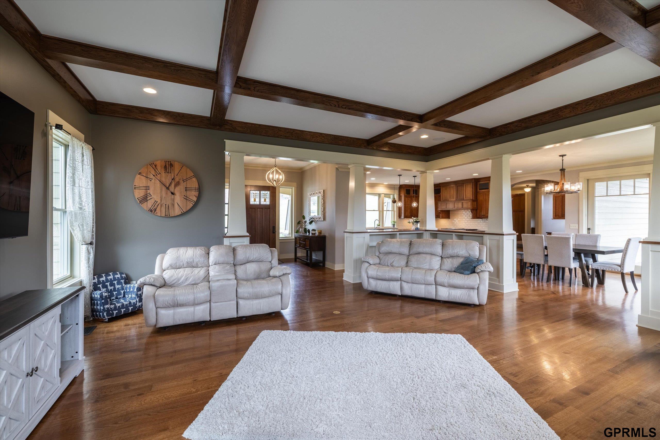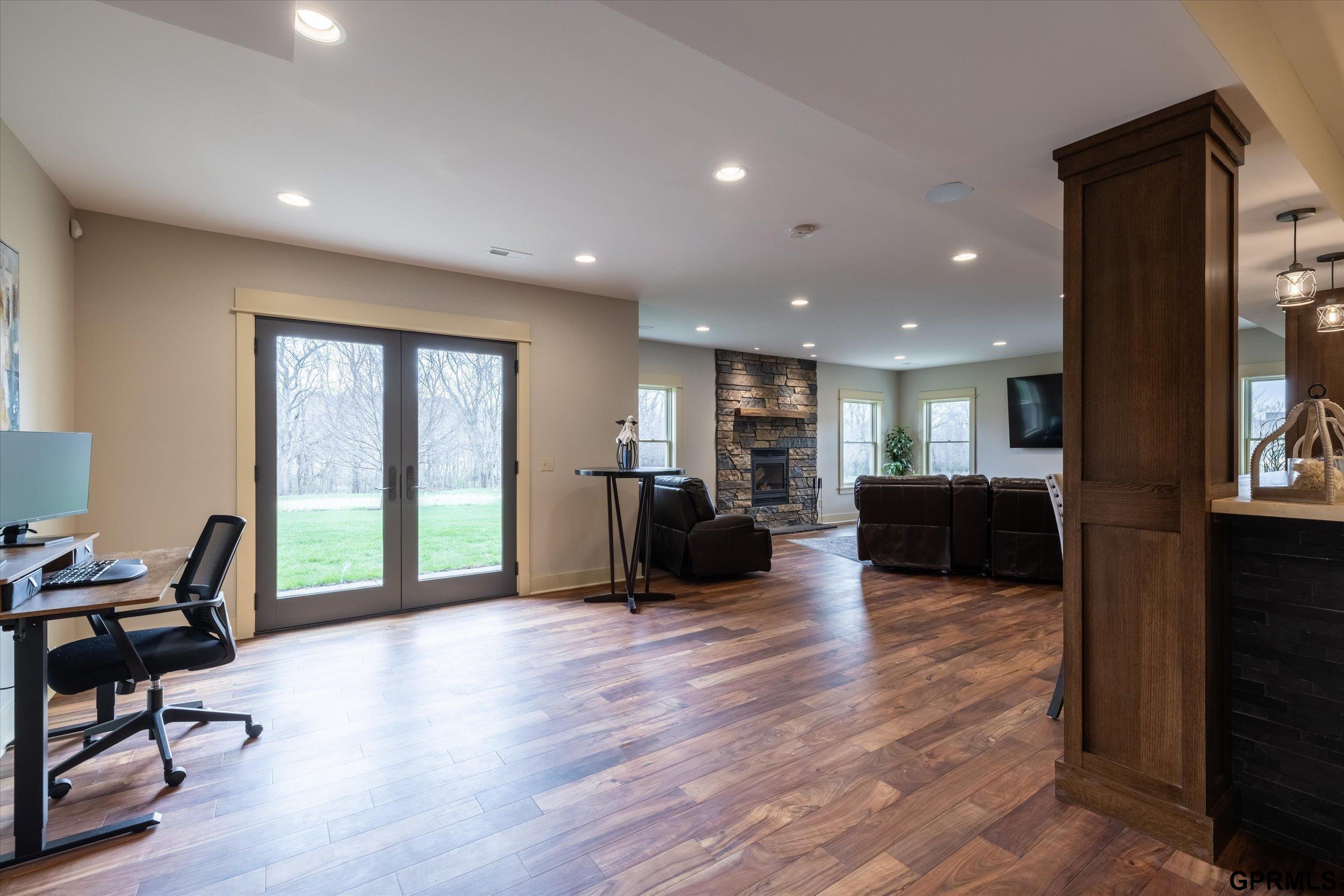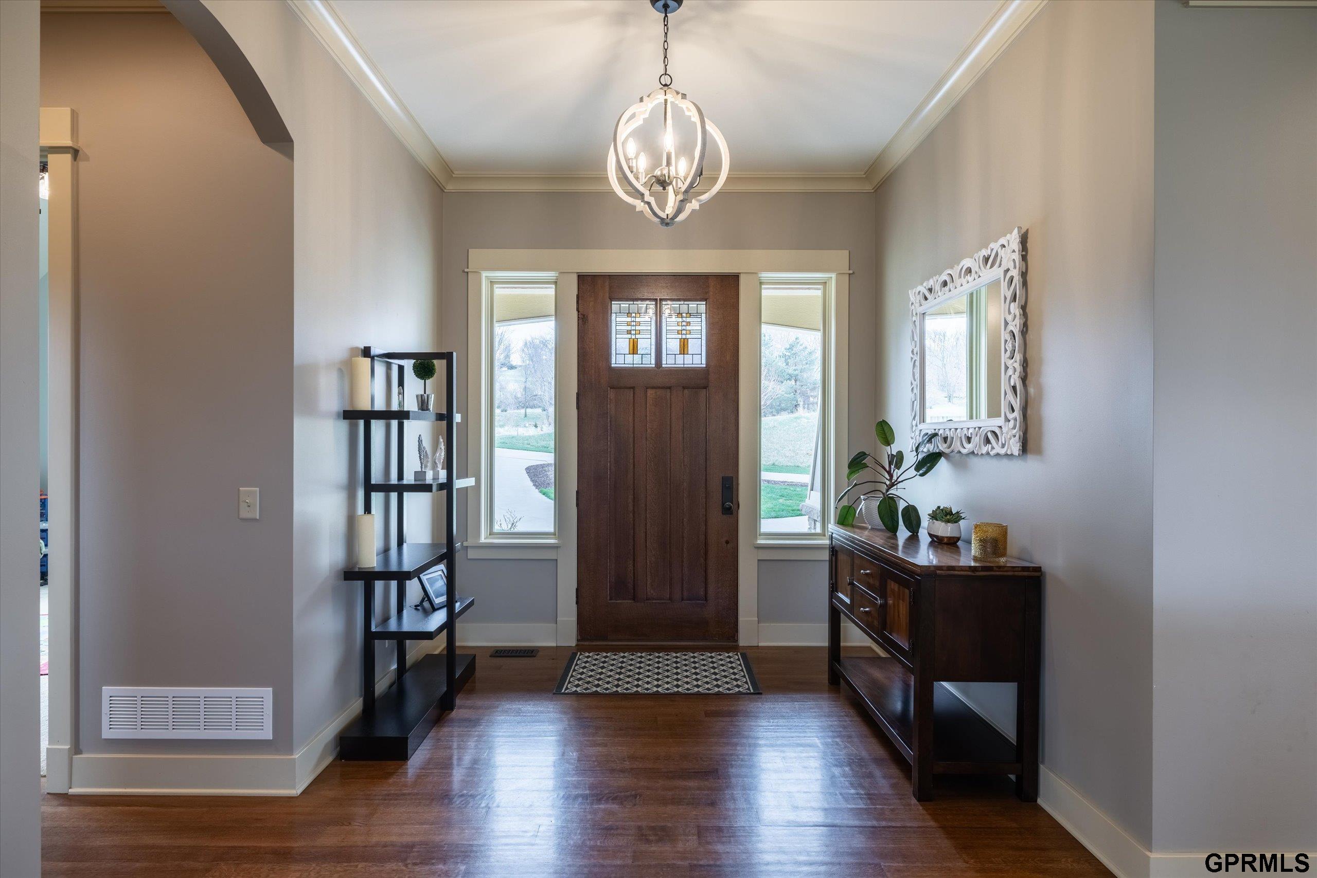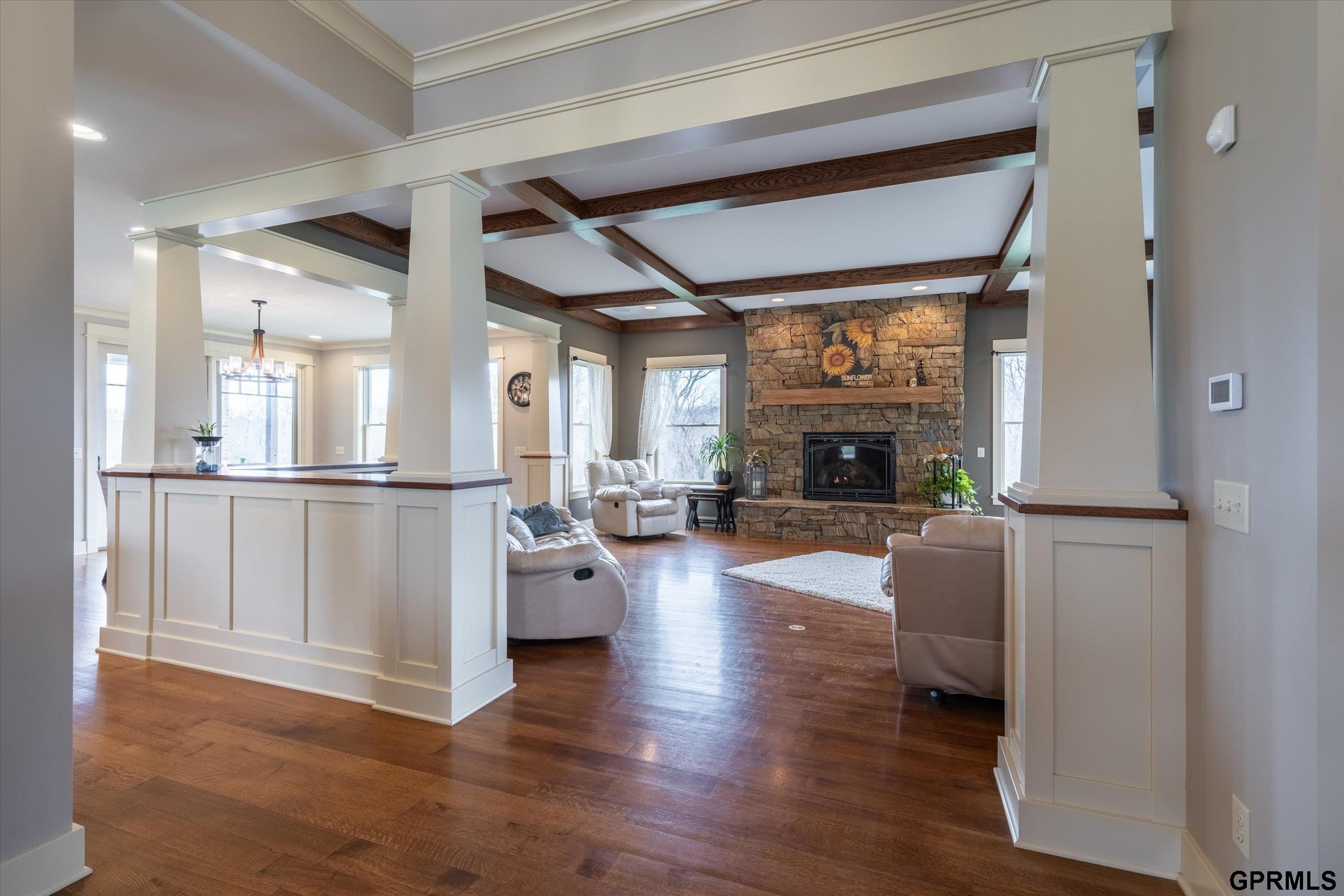 Timeless craftsmanship meets modern luxury in this exceptional custom-built Craftsman acreage estate offering nearly 5,000 sf of refined living space on 2.11 acres. Expansive windows capture peaceful views while Quarter & Rift Sawn Oak millwork and rich hardwood flooring create warmth and architectural character rarely found in today's homes. Two private master suites with luxury ensuite bathrooms, main floor bedroom with vaulted ceiling, 5 bedrooms, 5 bathrooms, 4 garage stalls, 3 floor-to-ceiling stone fireplaces, hardwood floors on main and upper levels, oversized bedrooms, gourmet kitchen, 2 pantry rooms, reclaimed barnwood kitchen island, custom live-edge wood bar, and stone wine cellar. Acreage backs to private paved nature trail, low 1.7% tax levy, energy efficient construction, private roads- ATVs allowed, all paved roads- no gravel. Estate is located in the exclusive Cottonwood Creek Estates, 10 minutes from the metro. New roof August 2025.
