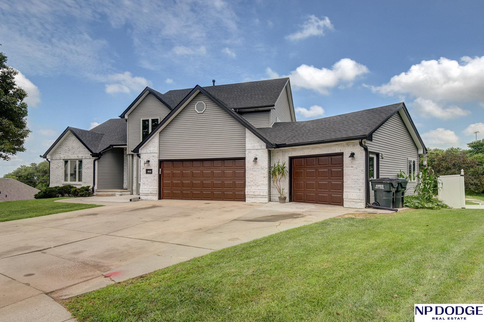 This massive one-and-a-half story 3 car garage home sits on a quiet circle in a great neighborhood and boasts incredible curb appeal. Inside, you’ll find soaring ceilings in the living room, a warm wood-burning fireplace, and five generously sized bedrooms. Laundry & primary bedroom are on the main. The spacious main level has an open concept, a dedicated dining as well as an eat-on kitchen. Don’t miss the bar seating at the island. You will love all the natural light beaming in from the amazing windows. Need more space yet? Check out he walkout basement offering a large rec room and additional living space and 4th bath—perfect for entertaining or relaxing. You will also find multiple storage areas. Two decks overlook the yard, providing great outdoor living. A rare blend of space, updates, and style! 2025 updates include a new roof, new windows, new siding, new garage doors, new gutters, new downspouts, new exterior doors and exterior lighting.