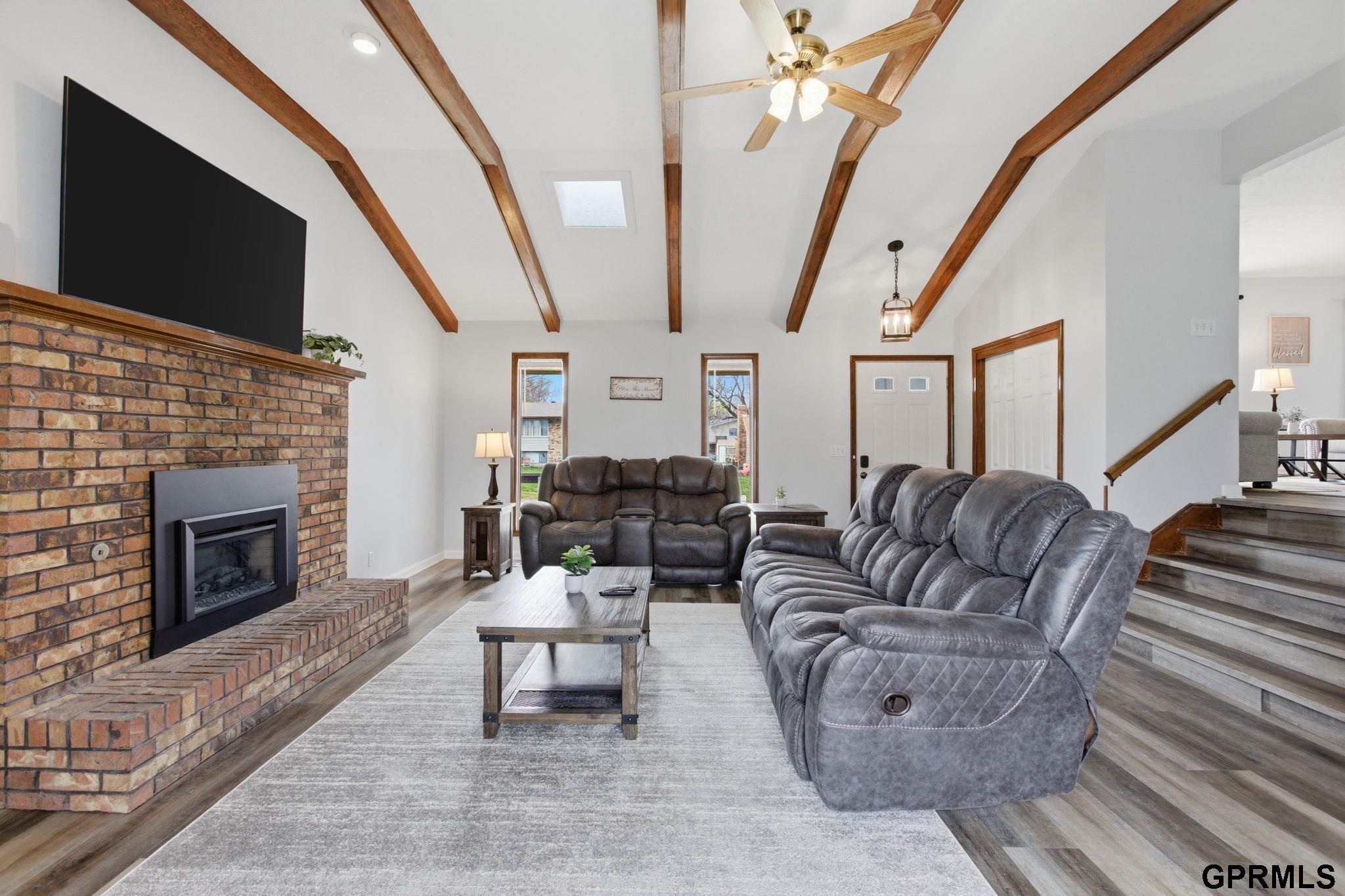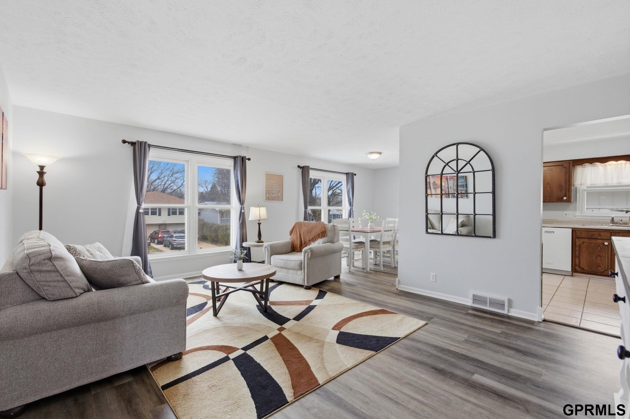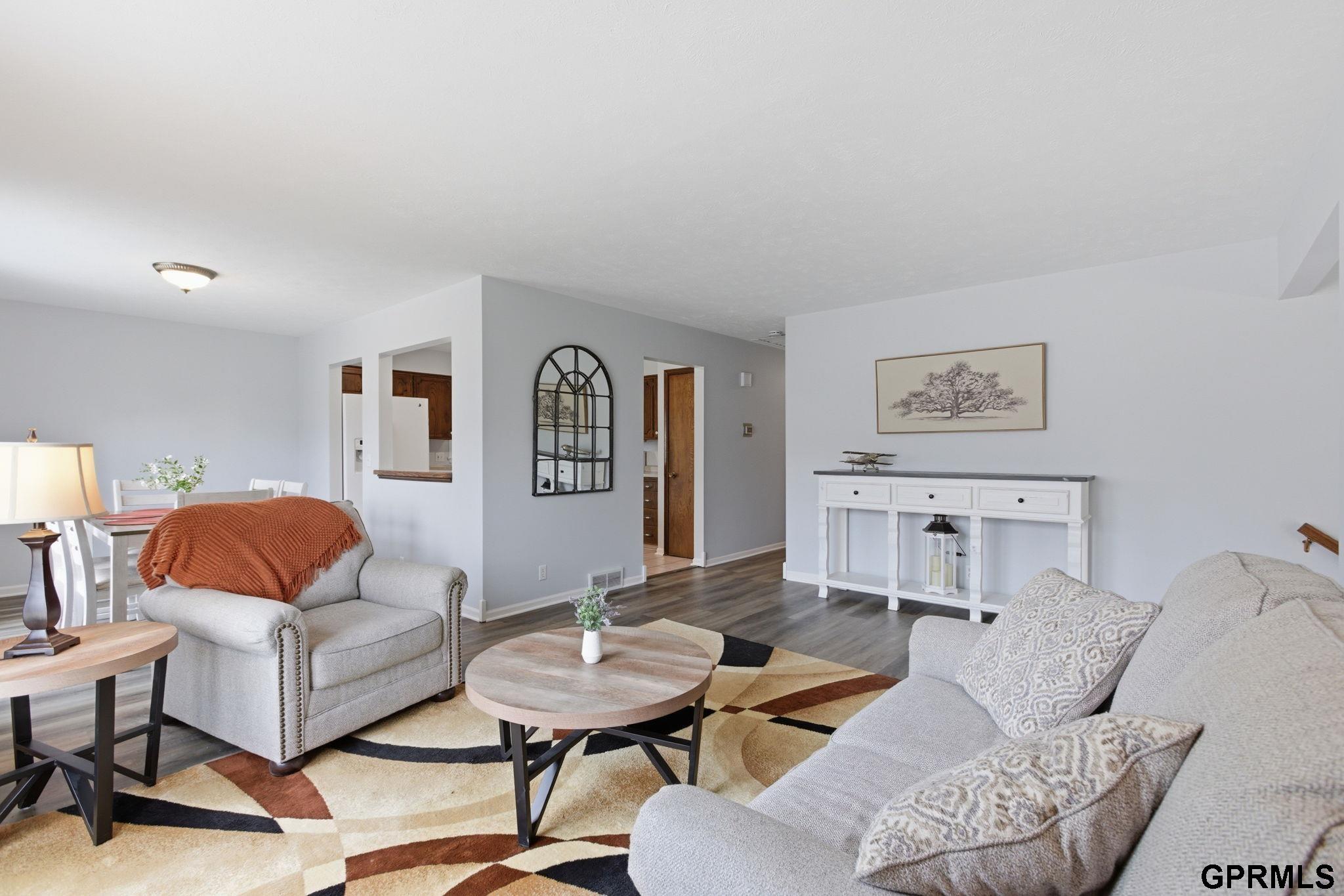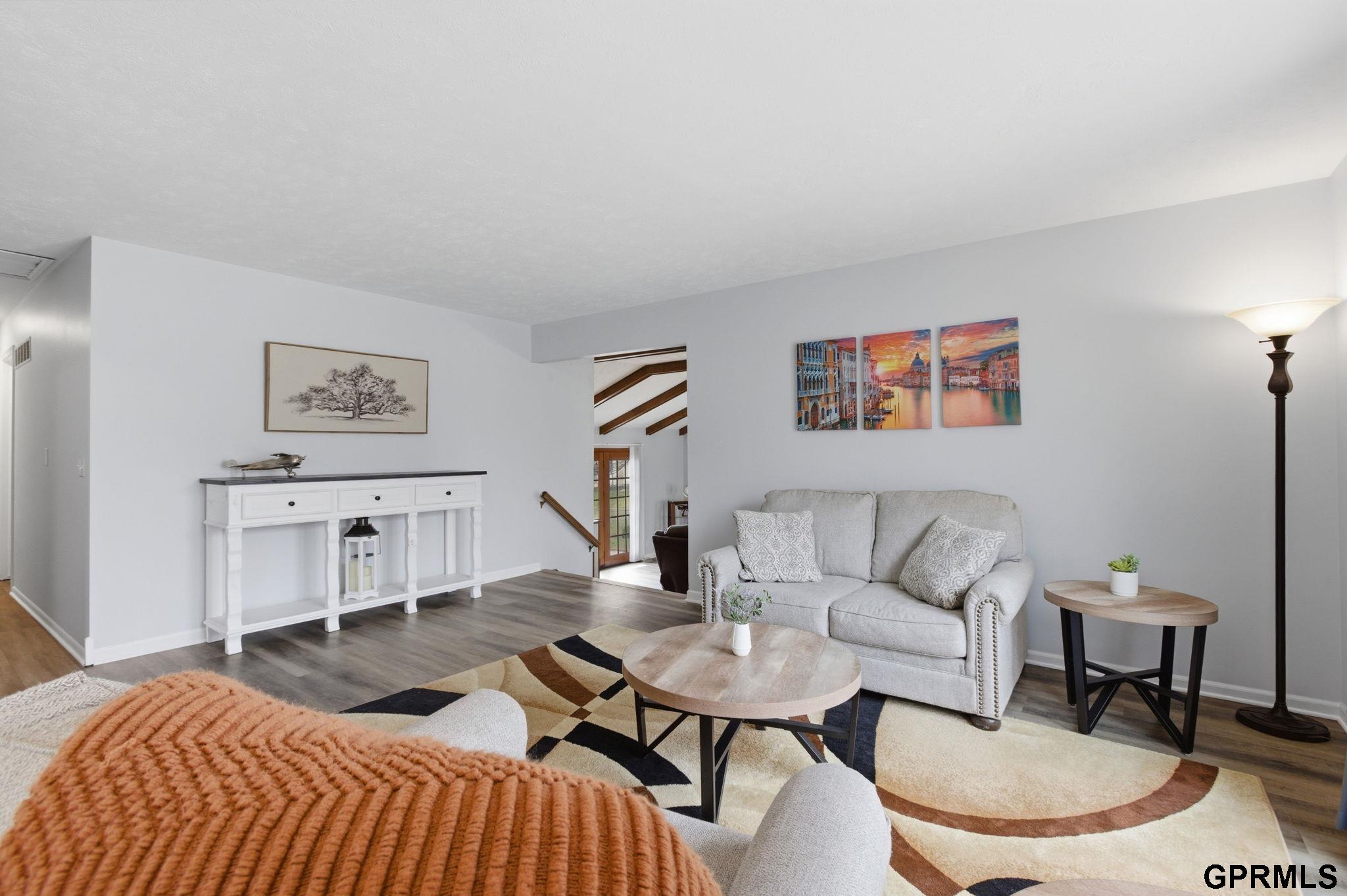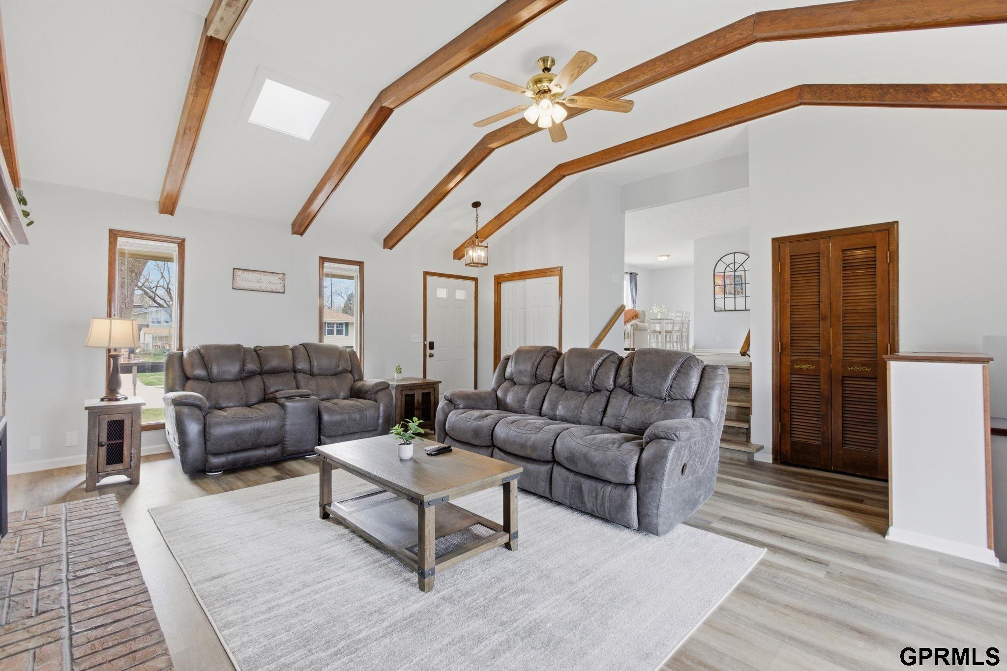 Extra-spacious Ralston gem packed with updates, character, and charm! This true 4-bedroom home also offers a 5th non-conforming bedroom in the walkout basement perfect for added flexibility. The main level features a large family room with vaulted beamed ceilings, a cozy brick fireplace, and wet bar. You’ll love the LVP flooring that runs throughout most of the home, along with the comfortable and functional layout. The primary suite includes a private ¾ en-suite bath. Downstairs, the walkout basement is perfectly set up for multi-generational living or an in-law suite complete with its own entry, second kitchen, bathroom, and spacious living area. Step outside to enjoy the extended patio overlooking the backyard, great for relaxing or hosting. Oversized garage and 3-car-wide driveway provide plenty of parking and storage. The elementary school is just a quick 2-minute walk away. HVAC new in 2021 and roof new in 2019. All appliances are included—move right in and enjoy!