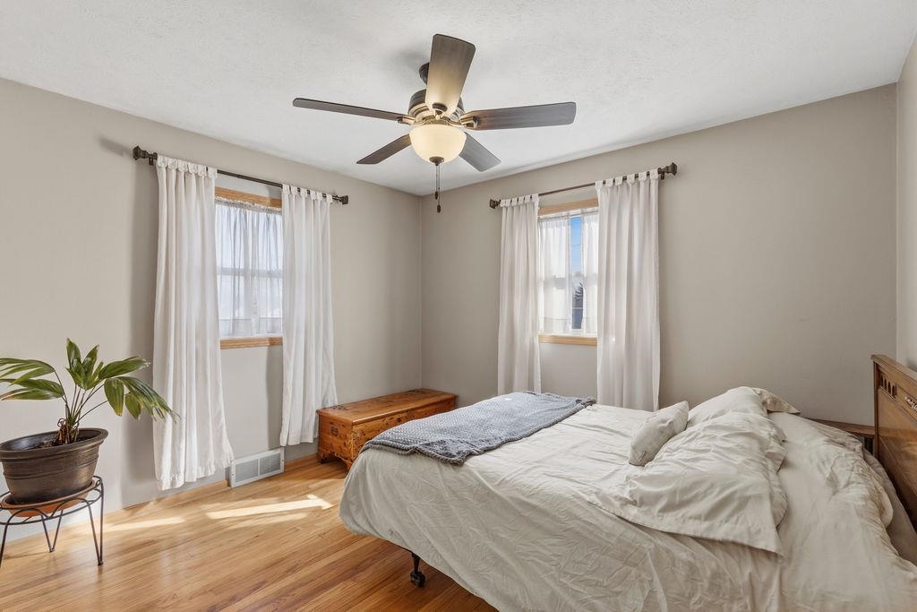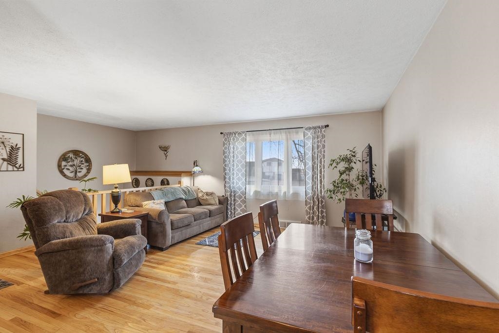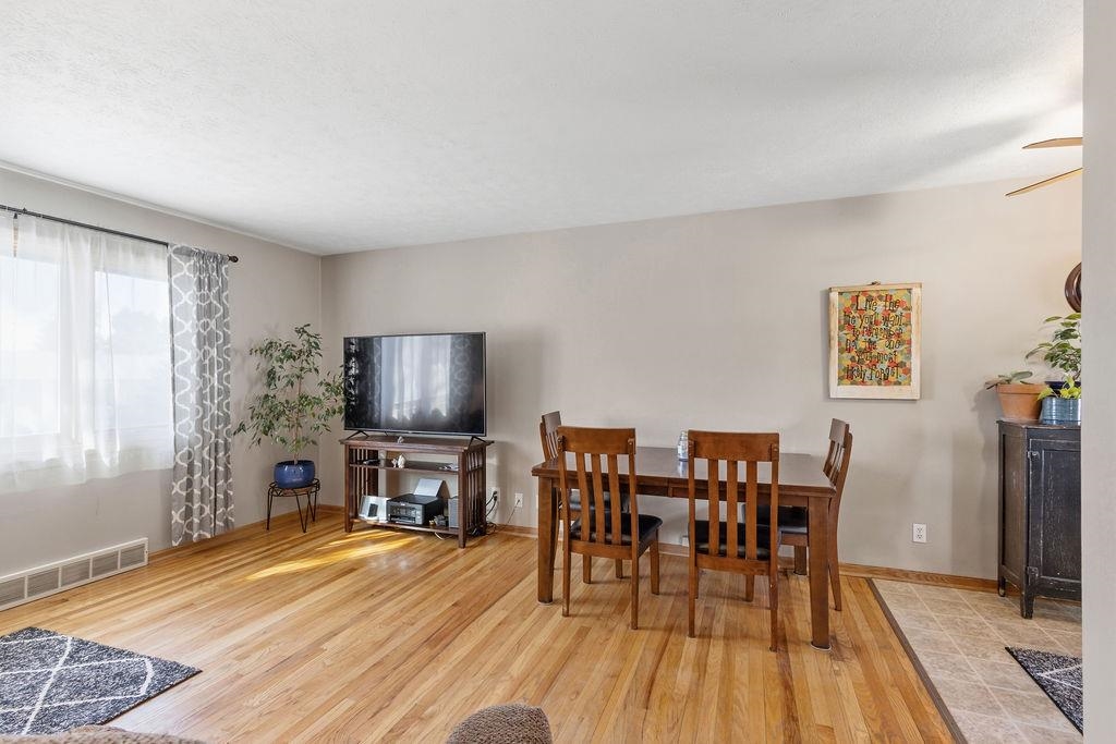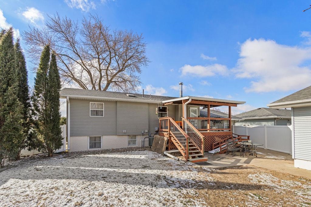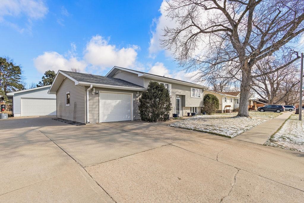 Very nice move-in ready home, solid oak flooring main level, new carpet lower level, large main level bath with jetted tub and onyx shower surround. 7 x 14 walk-out composite deck with pet ramp. Fenced yard. finished 16 x 24 attached garage; 30 x 44 (6 vehicle capacity) detached shop/garage with heater and air conditioner, benches and cabinets included. Seller prefers June 1st or later closing. HVAC ductwork cleaned 2023. There will be two cats in the home during showings.
