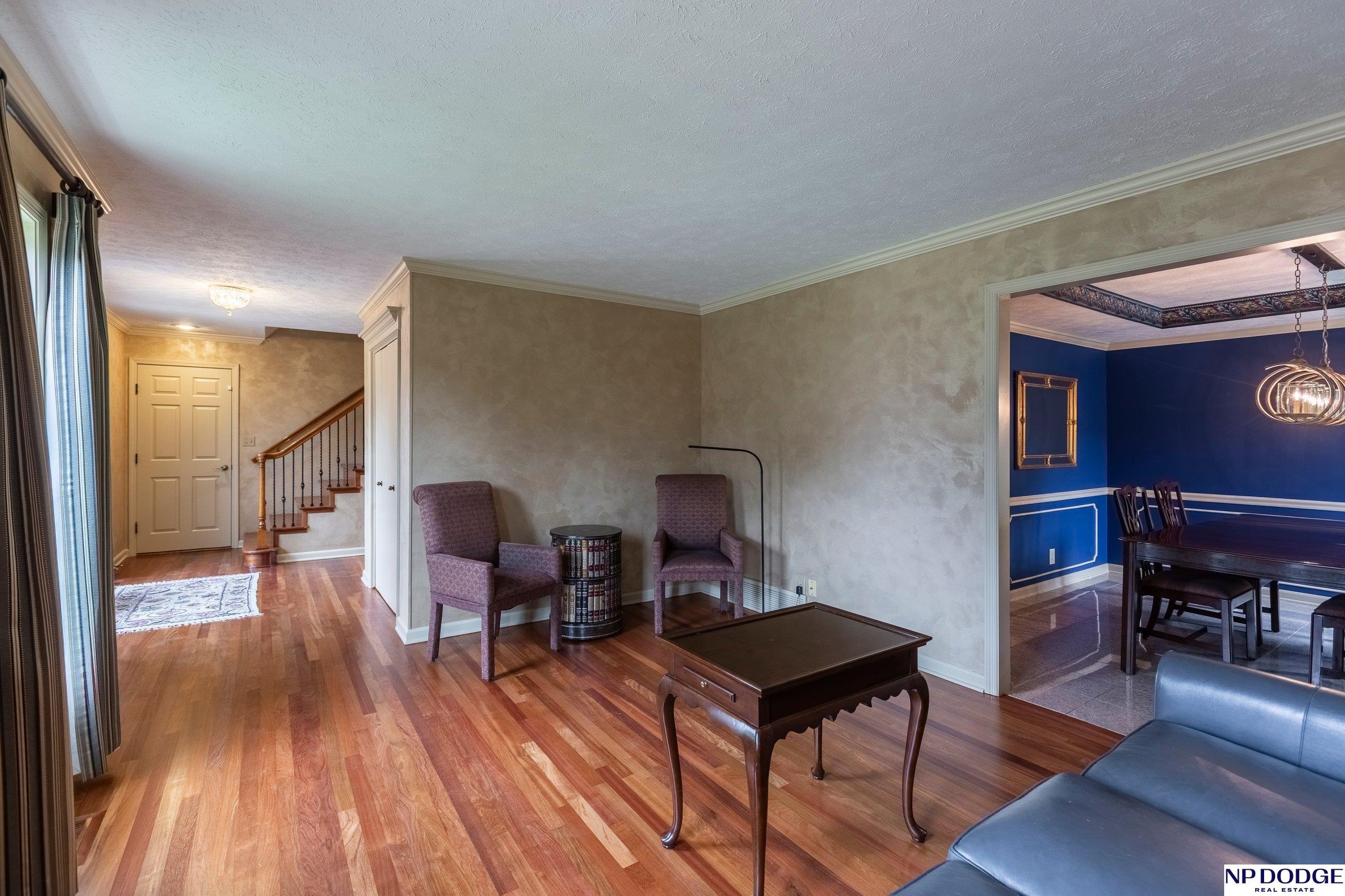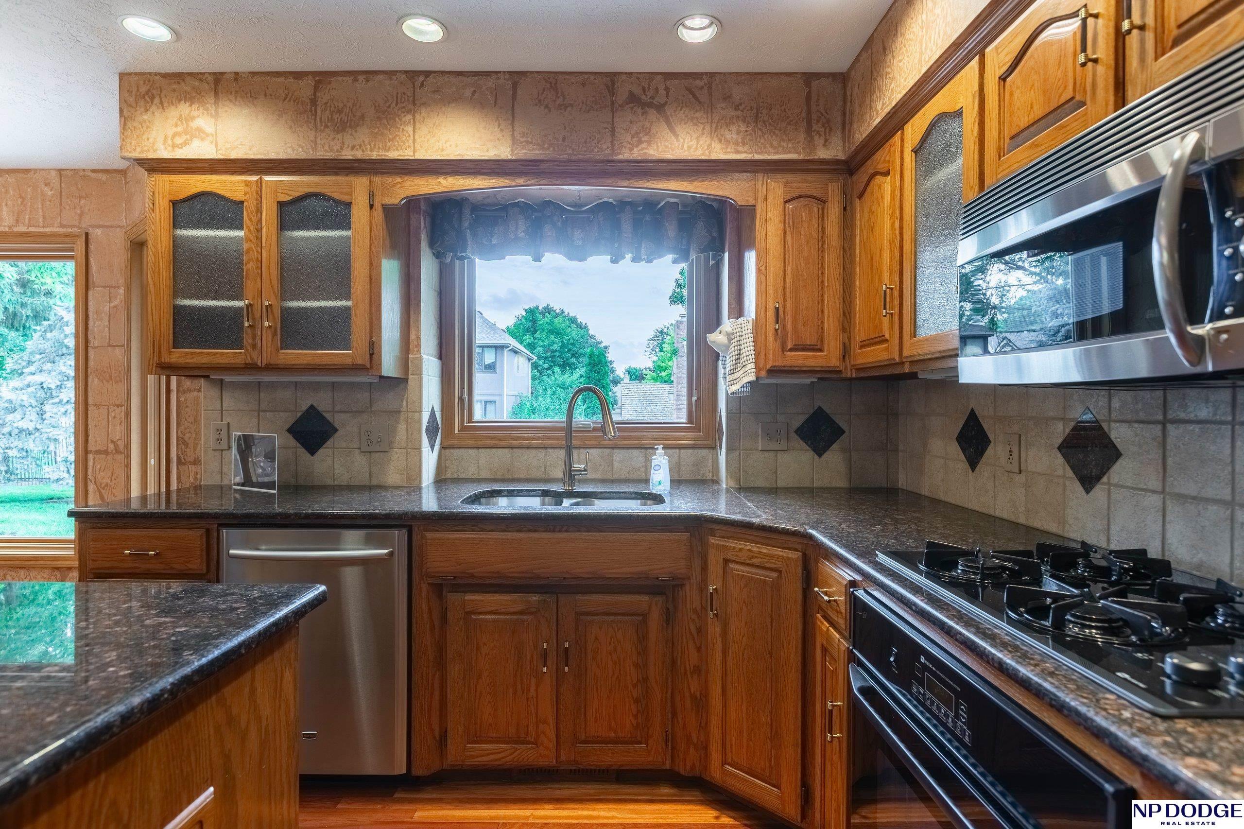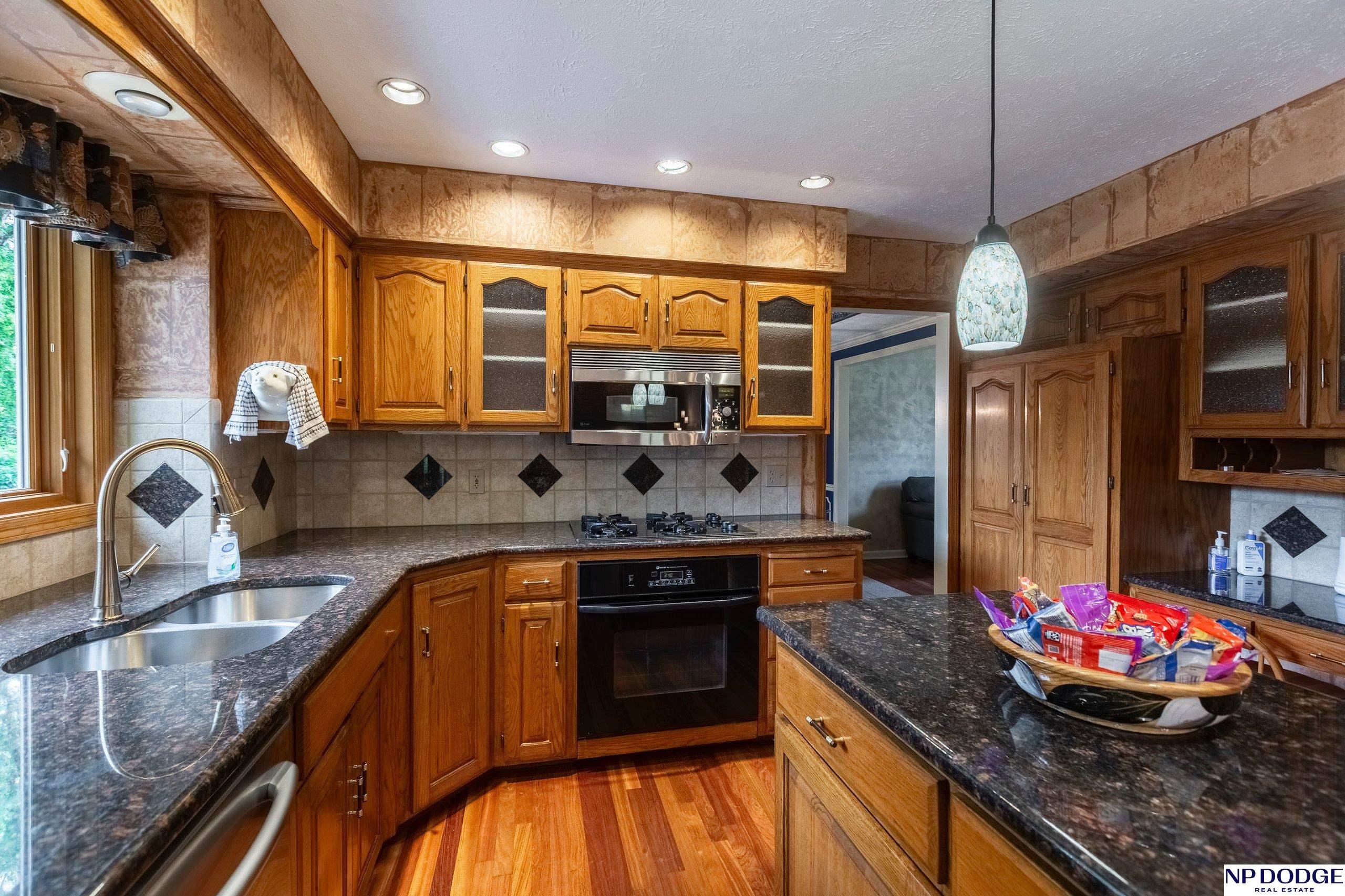 Luxurious & pristine Home in desirable Applewood Heights offers ample space for both relaxation & entertainment. High quality upgrades throughout home include granite countertops in the kitchen & all 3 bathrooms, solid hardwood or ceramic floors, elegant plumbing & lighting fixtures, & stainless-steel appliances. The primary bedroom suite with custom closet & whirlpool/jetted tub provides a serene retreat for relaxation. Fresh exterior paint, insulated garage doors & a DaVinci roof were just installed. The 3-car garage has storage shelves & cabinets along w/hot & cold running water. Outside there is an inground sprinkler system w/landscaping that provides subtle night lighting in front & back along w/large cobblestone patio & firepit area to enjoy the evening w/friends or to just kick back & relax. Wrought iron back yard fence allows security yet creates a sense of spaciousness. Millard Schools. Great access to Interstate, South facing lot. See attached list of upgrades.