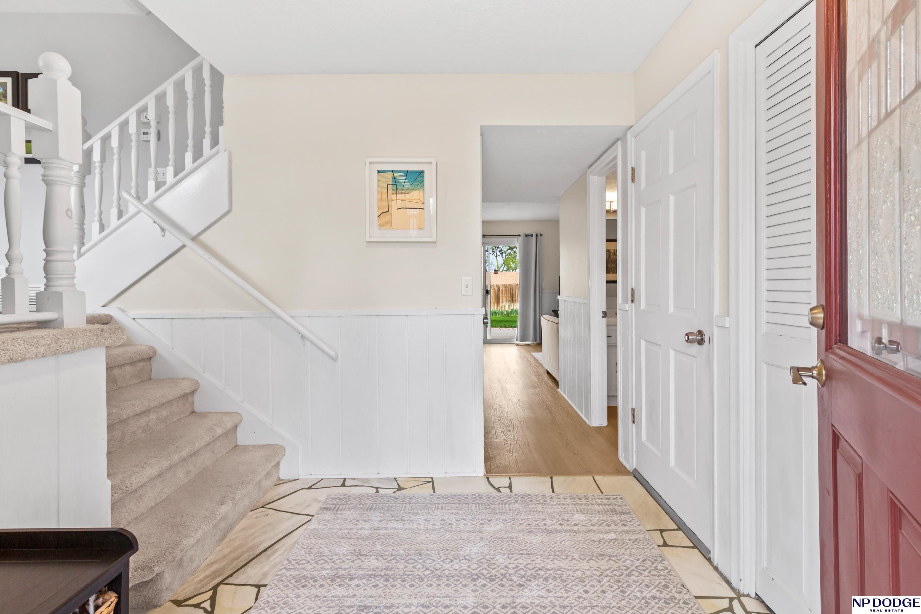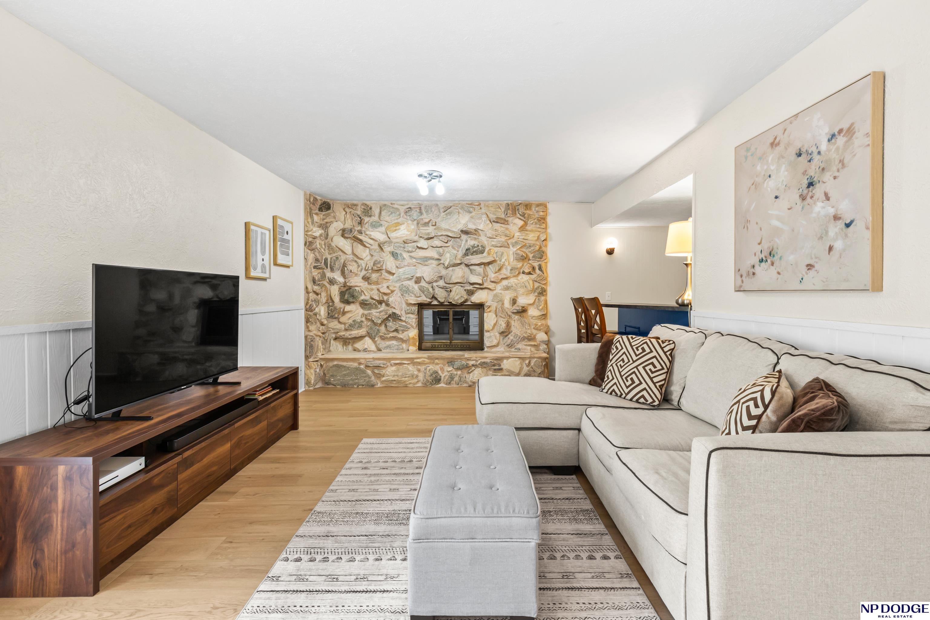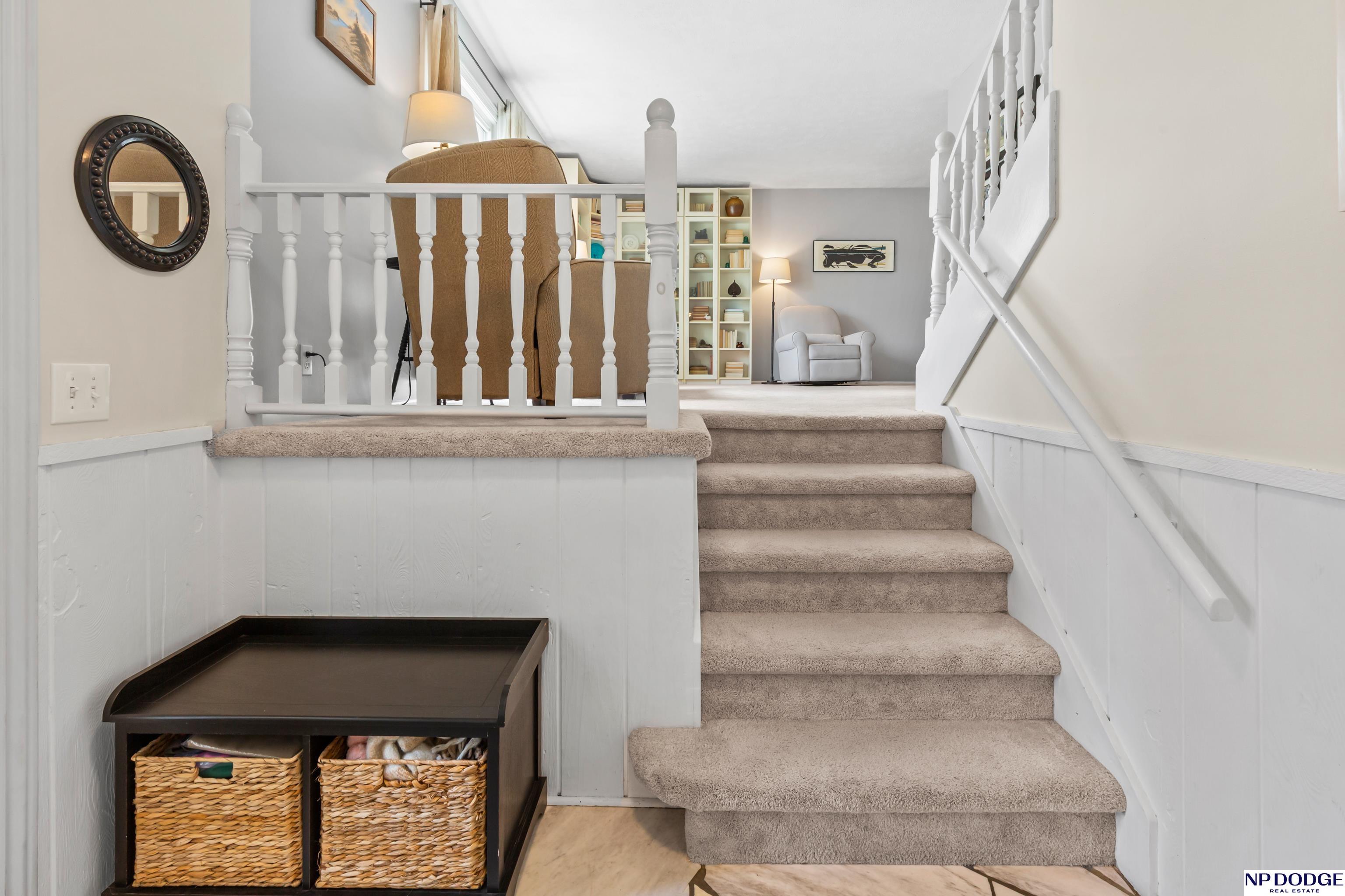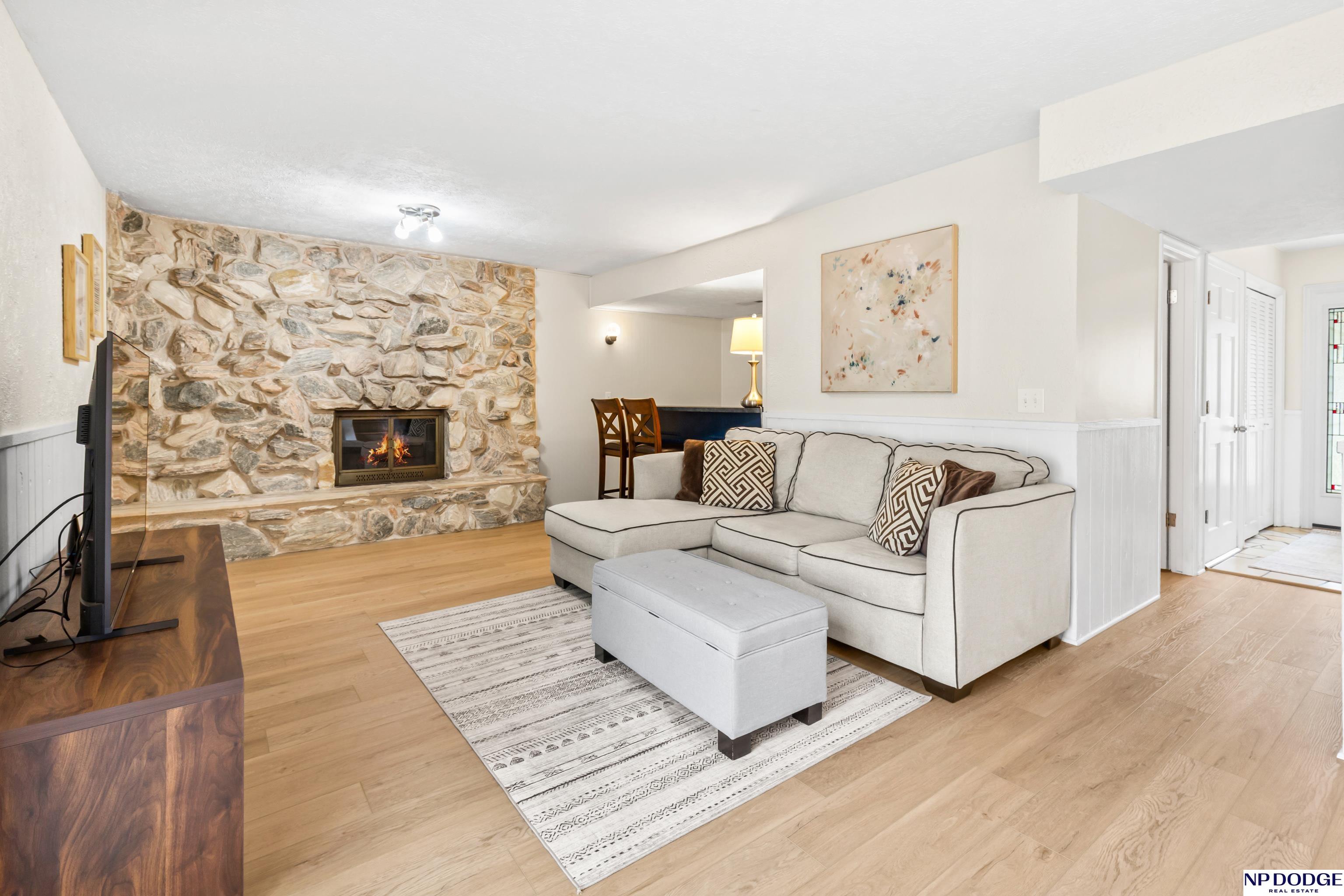 Oak Heights living with a layout that gives everyone their own space without feeling disconnected. This tri-level offers room to spread out—quiet mornings upstairs or relaxed evenings downstairs. The main level is practical and comfortable, with built-ins that add just the right amount of character. Upstairs features three well-sized bedrooms, including a primary with vaulted ceilings, a walk-in closet, and a private ¾ bath. The great room is an easy gathering space with a fireplace, wet bar, and direct access to the patio and fully fenced backyard. The LL includes a rec room perfect for a home office, play area, or exercise space. Notables include NEW LVT flooring, fresh int paint, newer driveway, roof (2023), radon mitigation system, and a newer water heater. With quick access to I-680 and located in Millard Schools, it's an easy move from day one!