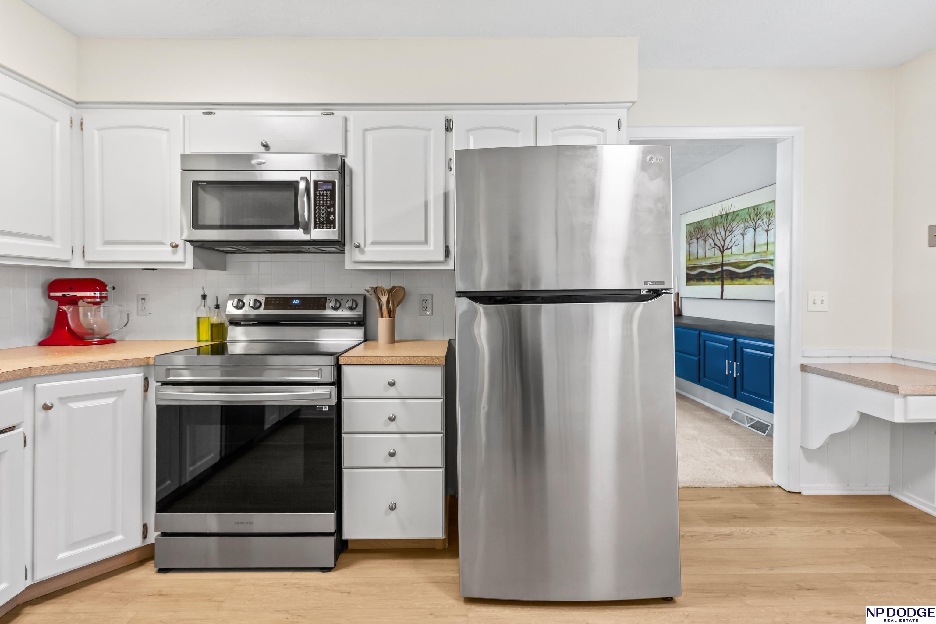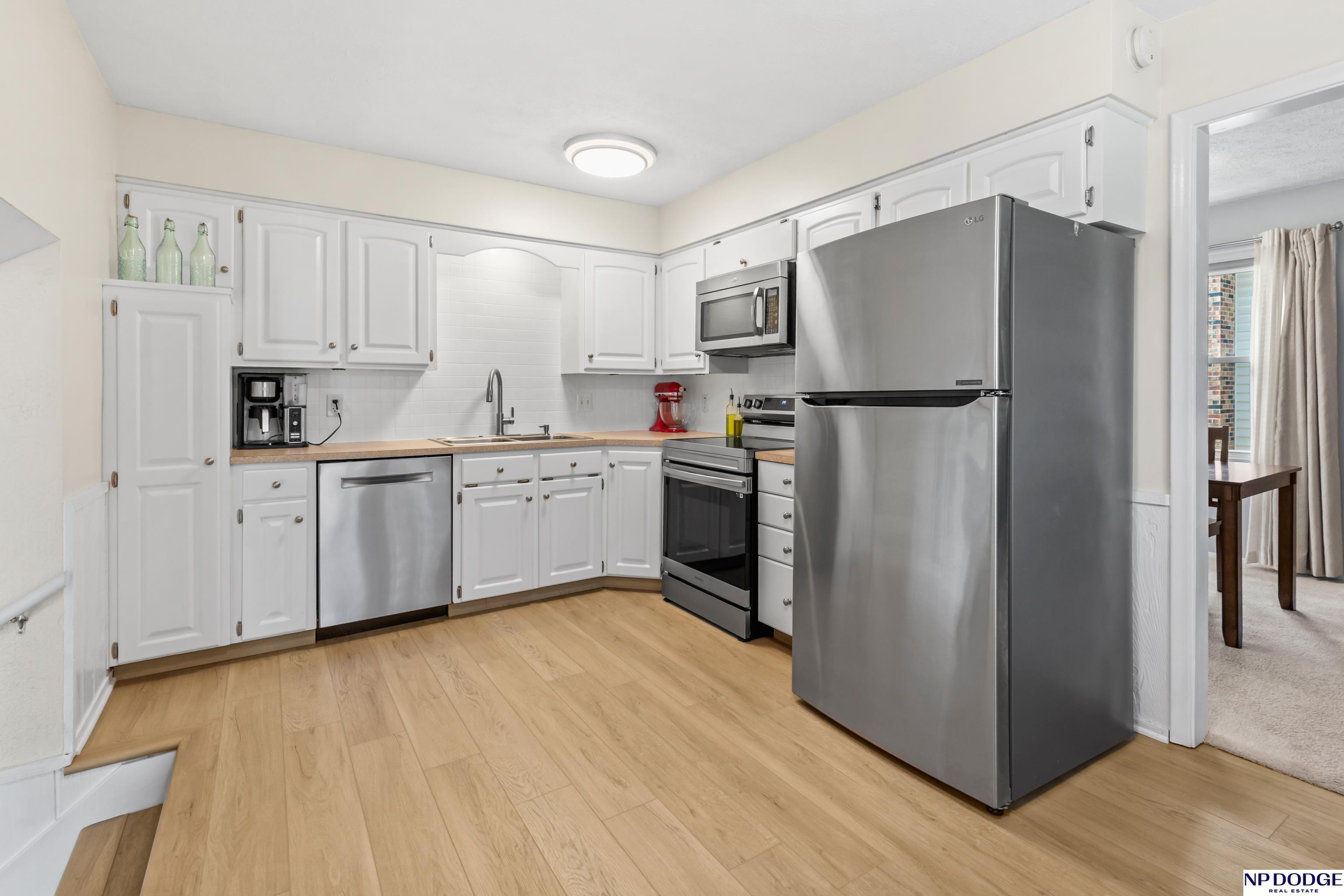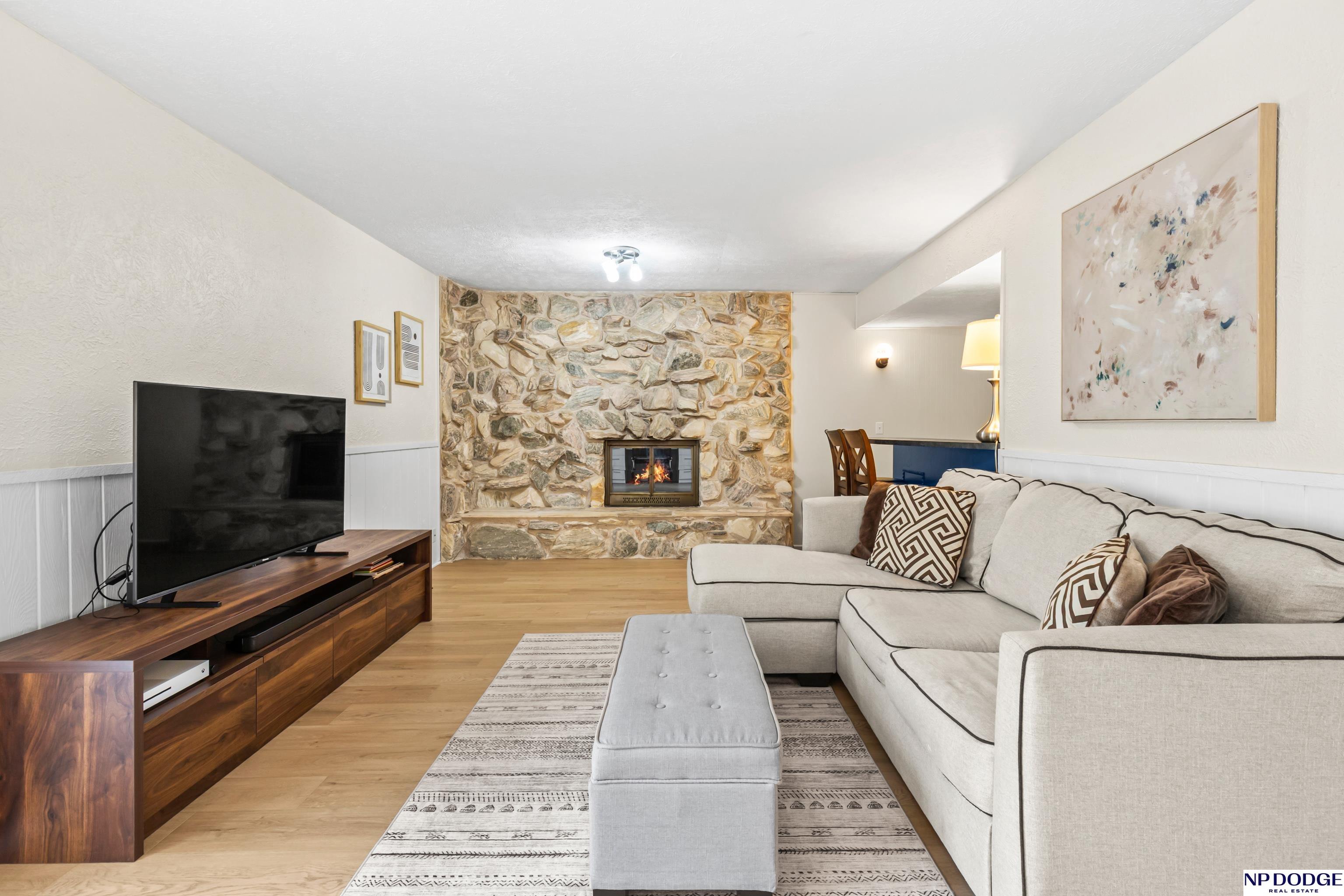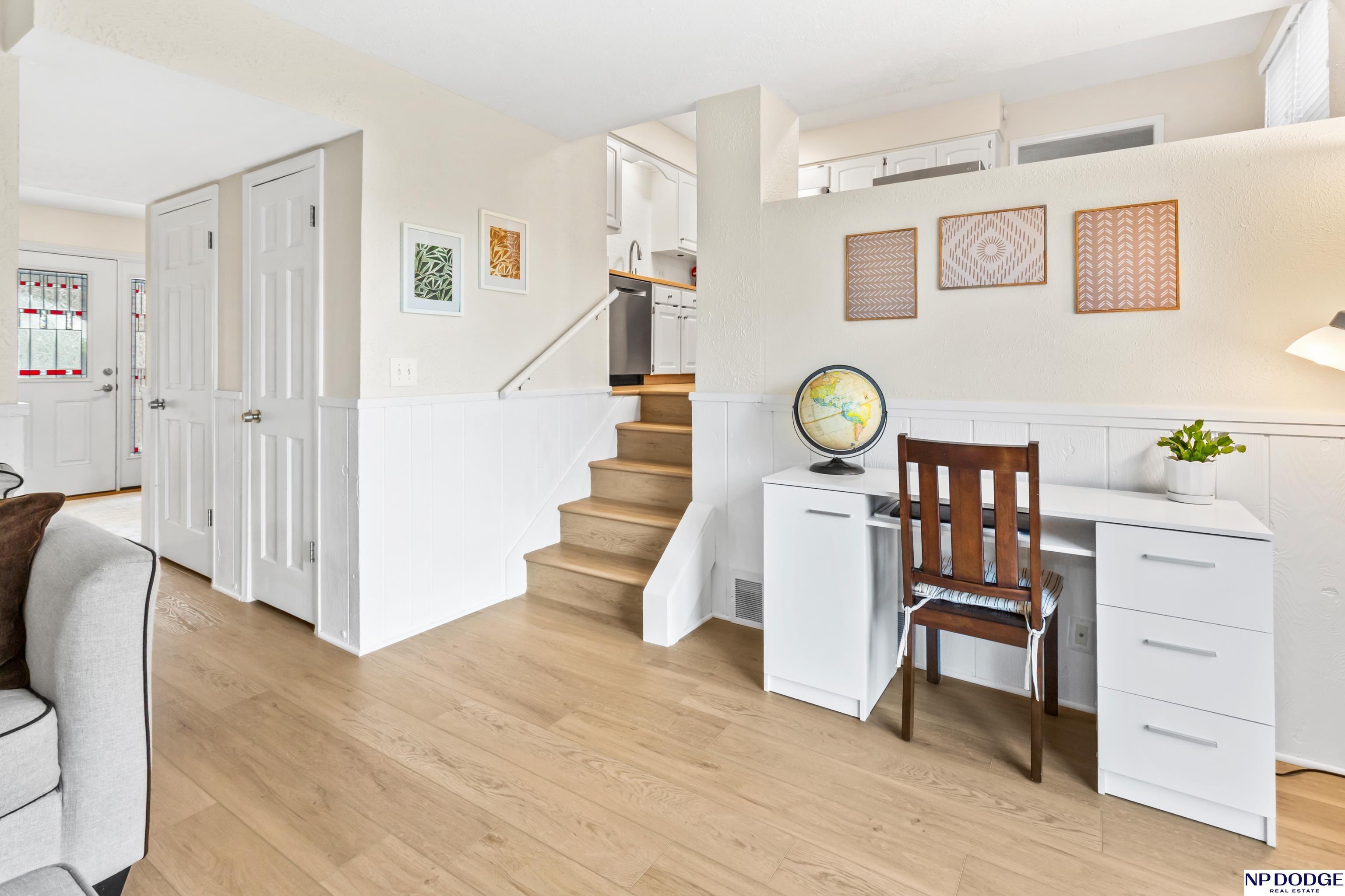 Oak Heights living with a layout that gives everyone their own space without feeling disconnected. This tri-level offers room to spread out—quiet mornings upstairs or relaxed evenings downstairs. The main level is practical and comfortable, with built-ins that add just the right amount of character. Upstairs features three well-sized bedrooms, including a primary with vaulted ceilings, a walk-in closet, and a private ¾ bath. The great room is an easy gathering space with a fireplace, wet bar, and direct access to the patio and fully fenced backyard. The LL includes a rec room perfect for a home office, play area, or exercise space. Notables include NEW LVT flooring, fresh int paint, newer driveway, roof (2023), radon mitigation system, and a newer water heater. With quick access to I-680 and located in Millard Schools, it's an easy move from day one!