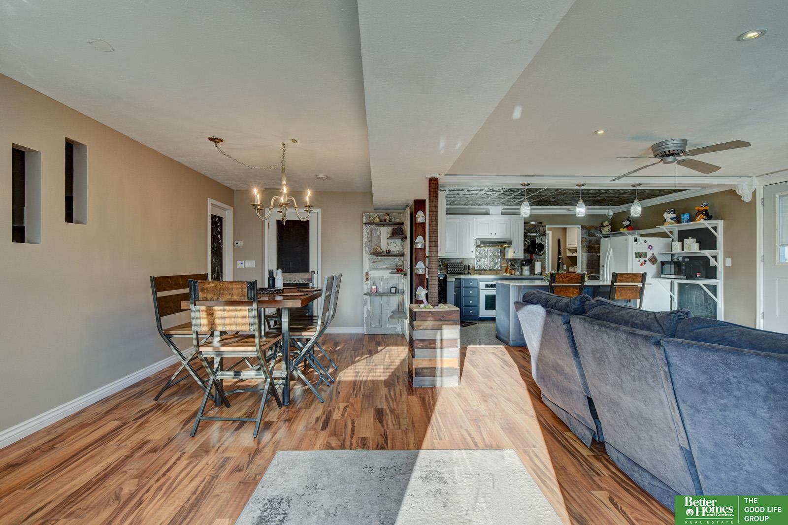 This unique home in Weeping Water is completely move-in ready! The spacious open floor plan on the main level provides lots of space for seating which makes it perfect for entertaining. You'll find lots of cool finishes and features on the main floor including a penny baseboard & chalk board wall in the living room, tin ceiling tiles, a mix of granite & concrete countertops, recently added coffee bar w/mini fridge & pantry in the kitchen, a skylight in the primary bedroom w/ensuite and main floor laundry. If you're looking for low maintenance, you'll love the vinyl siding & literally NO yard to mow. You can still enjoy the outdoors on the super private patio with rubber pavers artificial grass & lights. Weeping Water offers a charming rural experience featuring the Heritage House Museum Complex, the 3.2 mile Heritage Trail walking path and the scenic Gibson-Rhodes train depot, but still within 40 minutes of Omaha.
