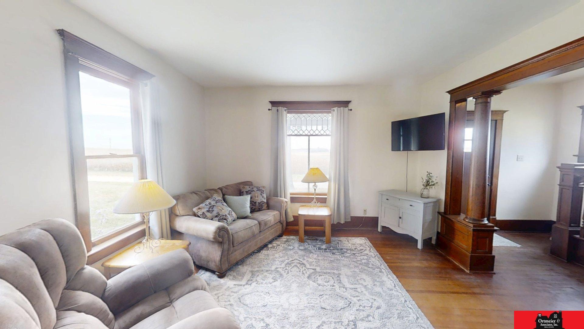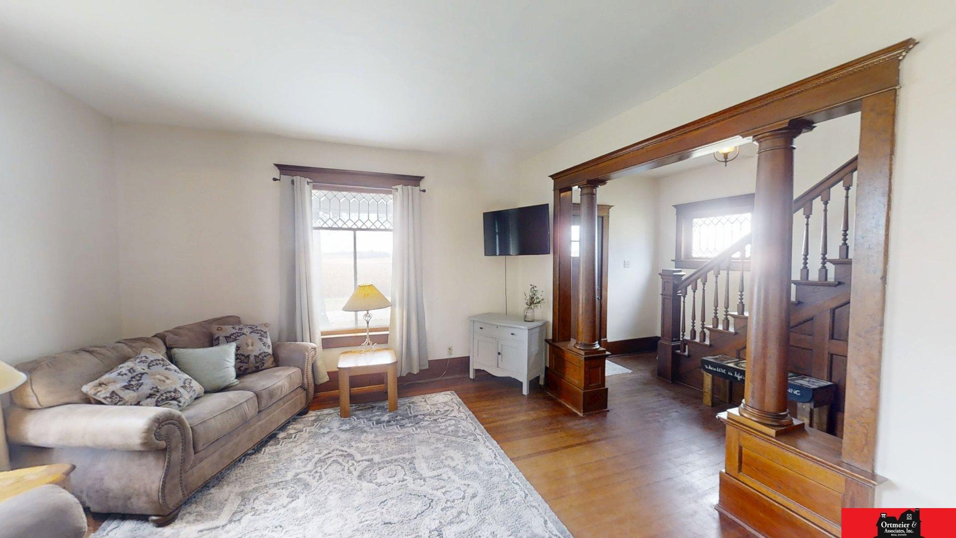 Contract Pending PENDING OFFER! Located on 10 acres with a charming 4-bedroom home this property is a must see! Gorgeous woodwork details through all of the home makes this home easy to fall in love with! You are invited into this home by a covered porch with porch swing. Gorgeous open staircase upon entering the front door! Spacious dining & living room with pocket doors between the two rooms! Each room features large windows that allow for tons of natural light to fill each room! Main floor bathroom also contains washer/dryer. Bonus room on the main floor could be used as additional bedroom, office or playroom. Upstairs you will almost all new windows as well as 4 spacious bedrooms with a few rooms recently remodeled! This basement houses the Furnace which was installed in 2021 along with new water heater in 2020. Basement makes for great storage space. A few outbuildings are present and you will be impressed with the corn crib which has been converted to shop with loft. All measure