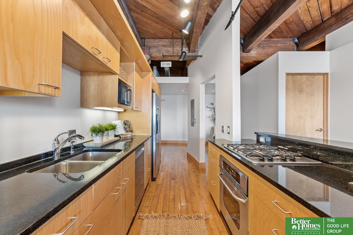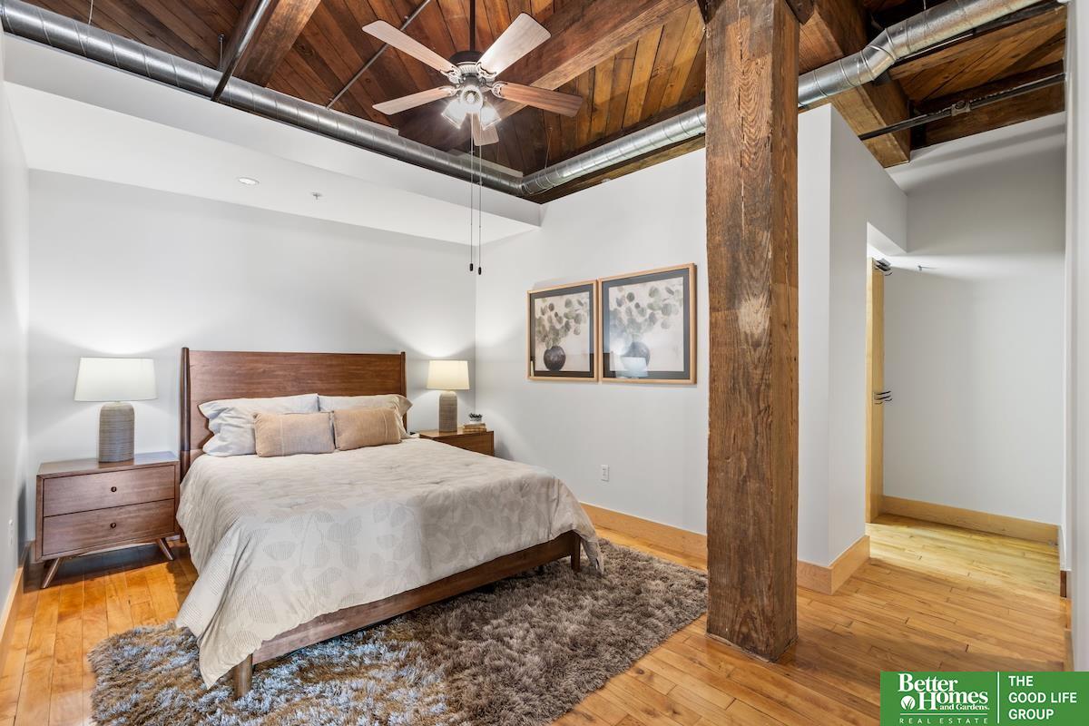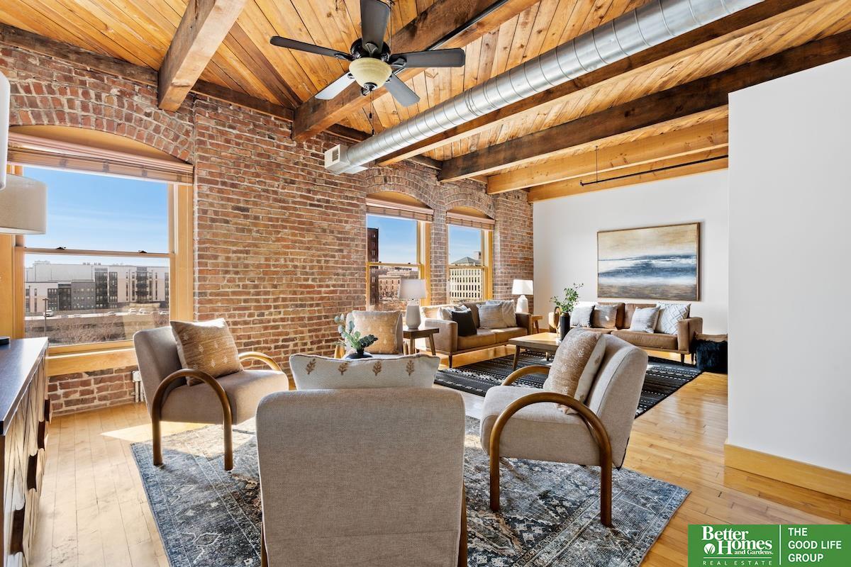Positioned on the 6th floor of Beebe Runyan, this loft captures commanding views of RiverFront Park, the Old Market, and the downtown skyline. Originally built in the 1920s, the structure showcases heavy timber framing and brick masonry - defining elements of classic warehouse architecture that provide warmth, texture, and structural scale. A dramatic five-story atrium lobby creates a striking architectural arrival experience. The building offers direct backdoor access to RiverFront Park, while two rooftop terraces provide elevated outdoor space with panoramic city views. Residents enjoy a thoughtfully designed fitness center, expansive community room, and secure indoor garage parking. The 10x13 family room can easily be enclosed to create a second bedroom or private office without compromising the loft's open character.