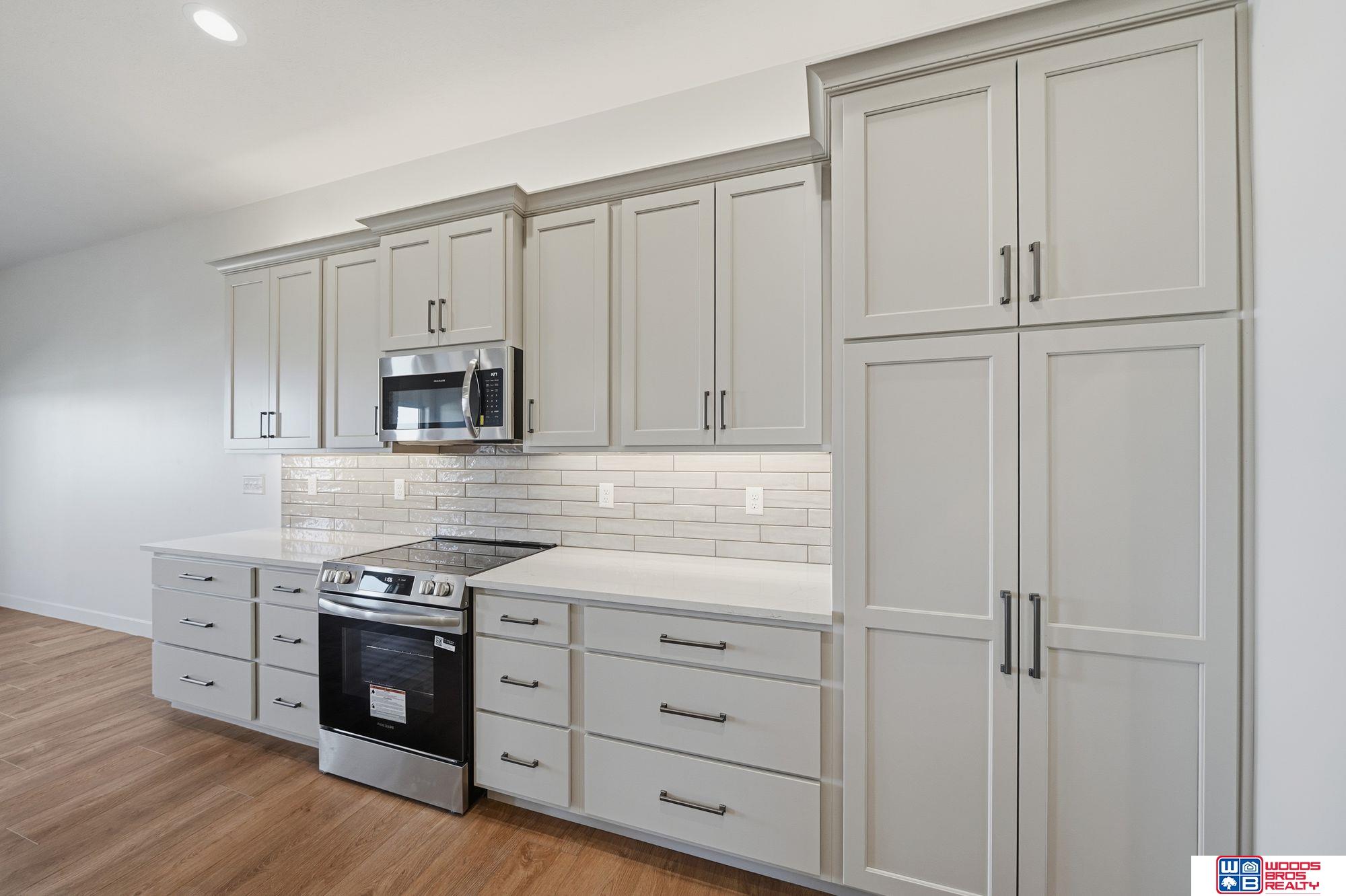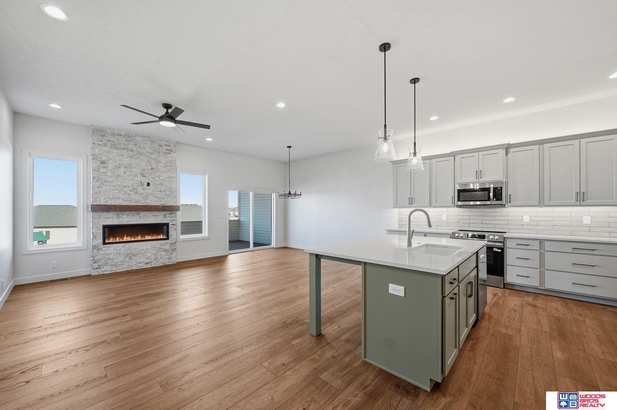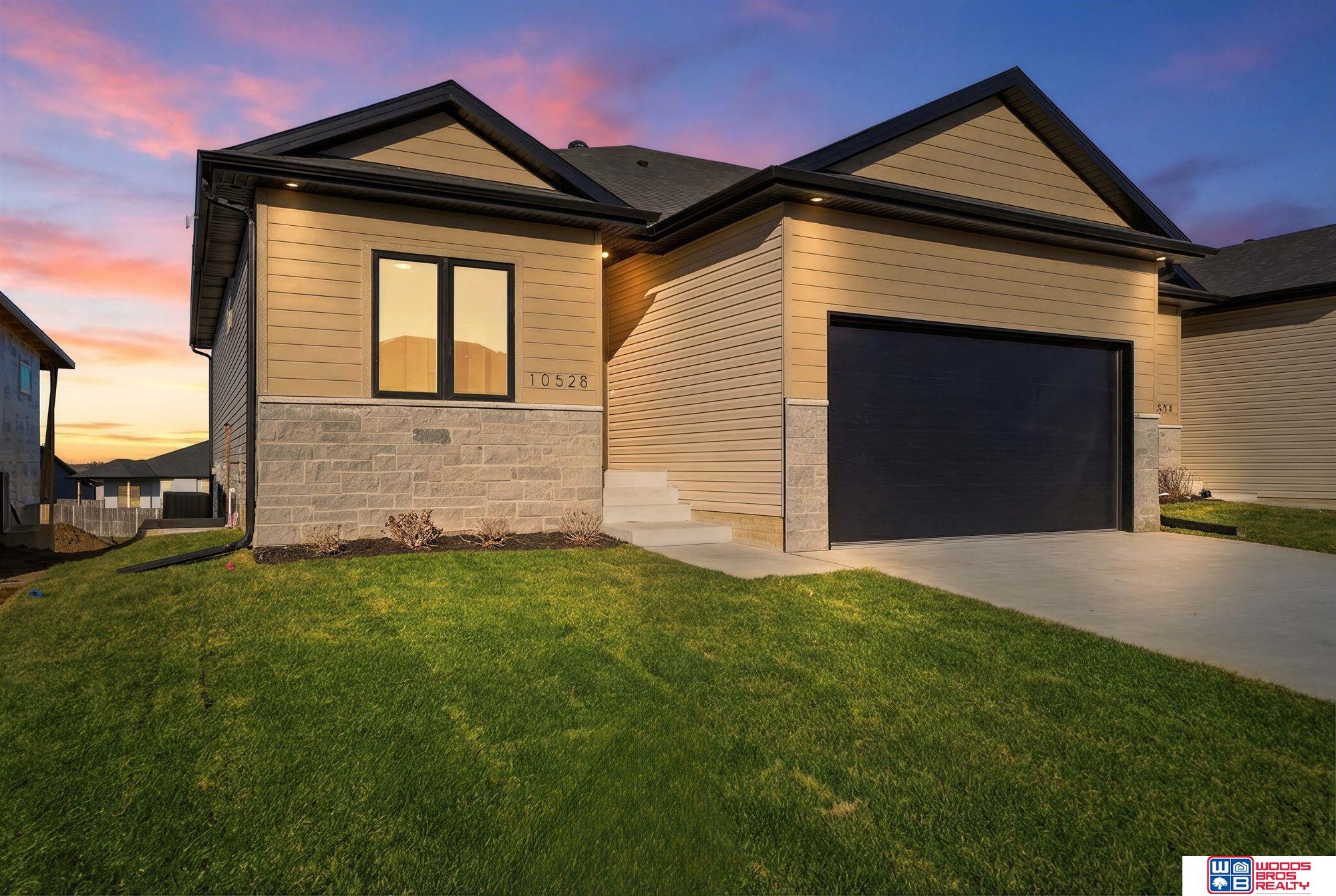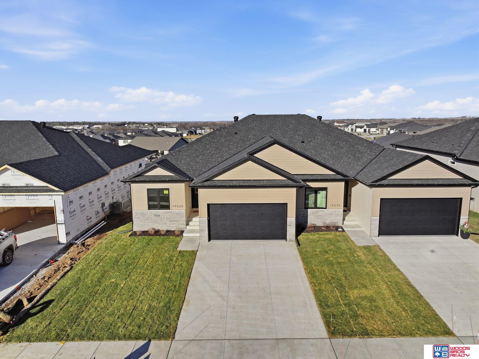 Luxury, upgrades & quality built 4 BR, 3 bath ranch townhome on large 159' lot. Walkout bsmt, private covered composite deck & covered patio. 1500SF main level & 1380SF finished basement w/rec room, 2 BRs (1 w/walk-in closet), bath & flex/storage room. These are high quality built new construction townhomes by Blue Sky Builders of Nebraska. Open floor plans, stone, vinyl & hardboard siding, energy efficient vinyl windows. UG sprinklers & sod. High quality cabinets (over & under lighting) w/quartz counters & very large center island. Main floor laundry & drop zone. 10' main floor & 9' bsmt ceilings, luxury plank flooring, energy efficient all electric home w/electric fireplace! Large, primary BR features double sinks w/quartz counter, fully tiled zero entry shower, & walk-in closet. Homeowners Assoc. for lawn care, snow removal, garbage & neighborhood fee. Fences allowed w/builders approval. You deserve affordable high quality! Compare & save! Review lot dimensions!