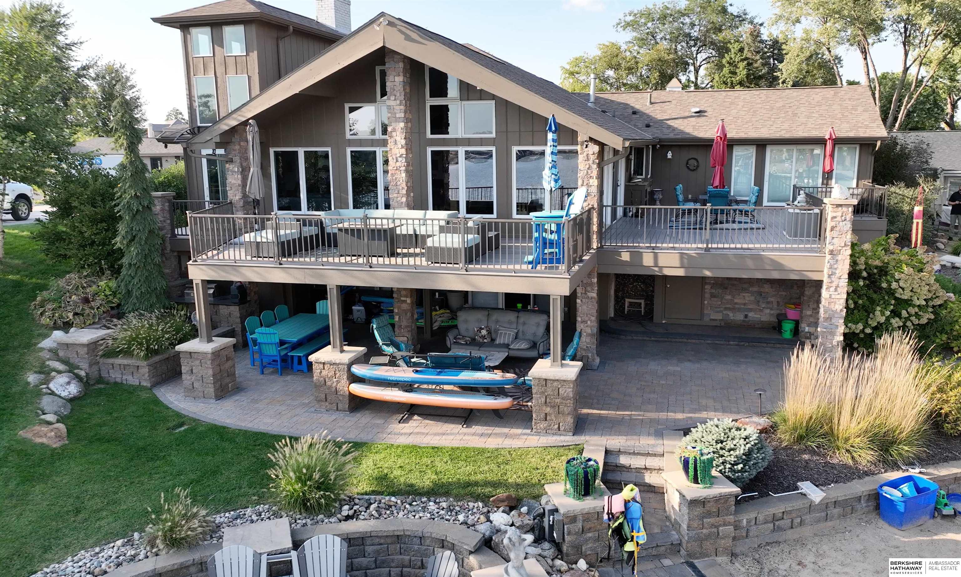 Set along 95 feet of lakefront, this dream blends elegance with modern livability. Extensive decking wraps the residence, linking multiple vantage points to absorb the panorama. Professional landscaping frames sensational views & creates year-round appeal with fire pit. A circle drive provides access & effortless guest parking. Inside, the home has undergone extensive updates: bright, open living spaces, unique flooring, & lake-facing walls of glass that draw in the water from every corner. Primary suite features fireplace, a spa bath, & a sunrise balcony. A standout berthing area sleeps six, styled like a ship with working portholes, bunks, and clever maritime touches. Large windows capture the lake's changing light from dawn to dusk, Pure Nautica lake front dream living. ASSOC DOCS HAS MORE.