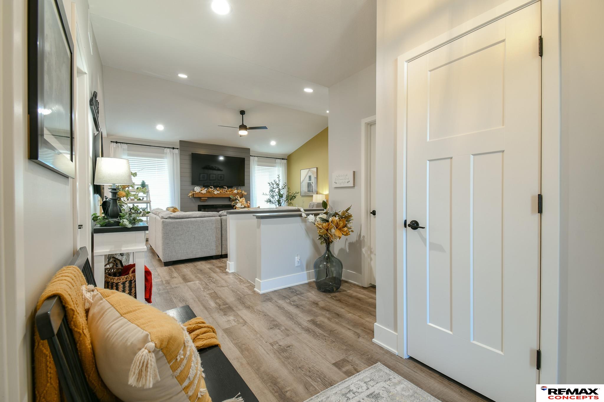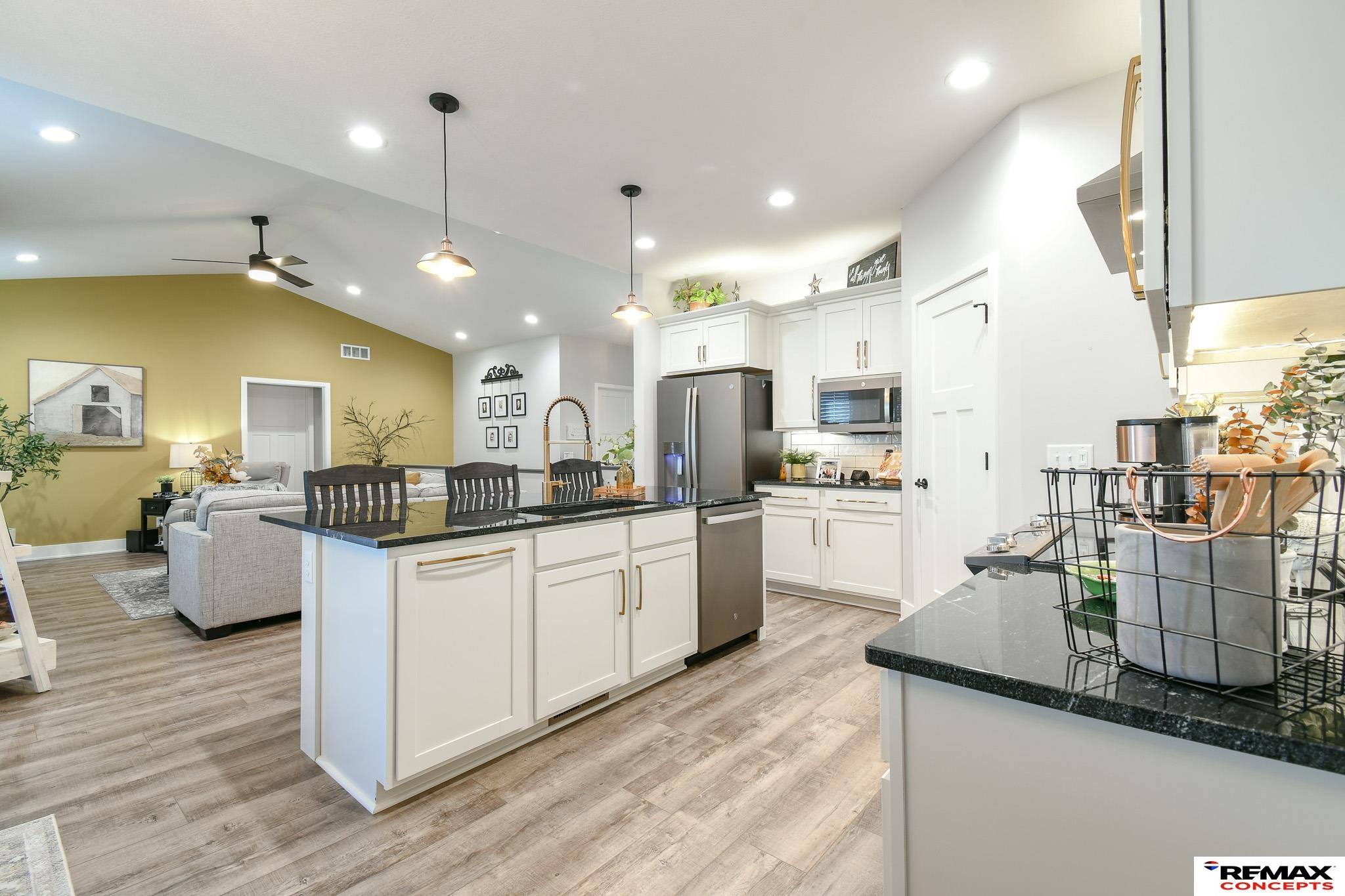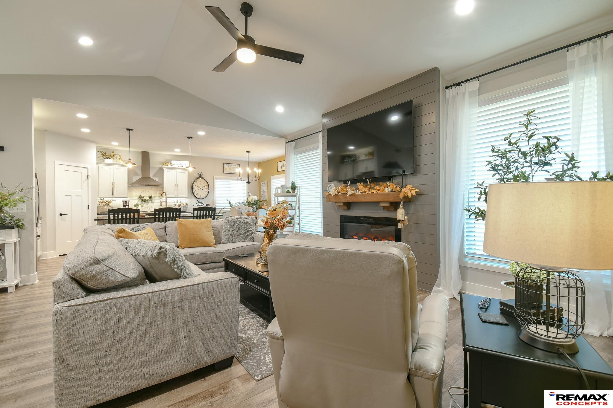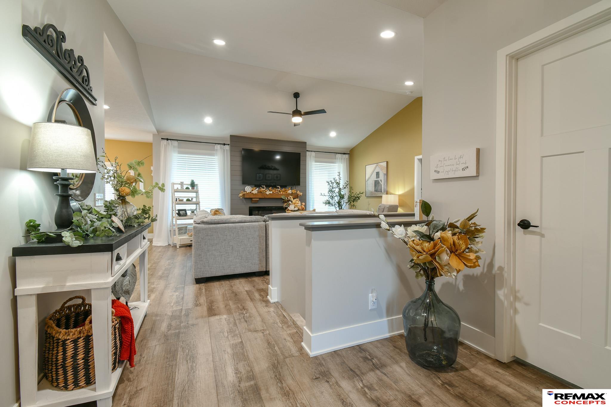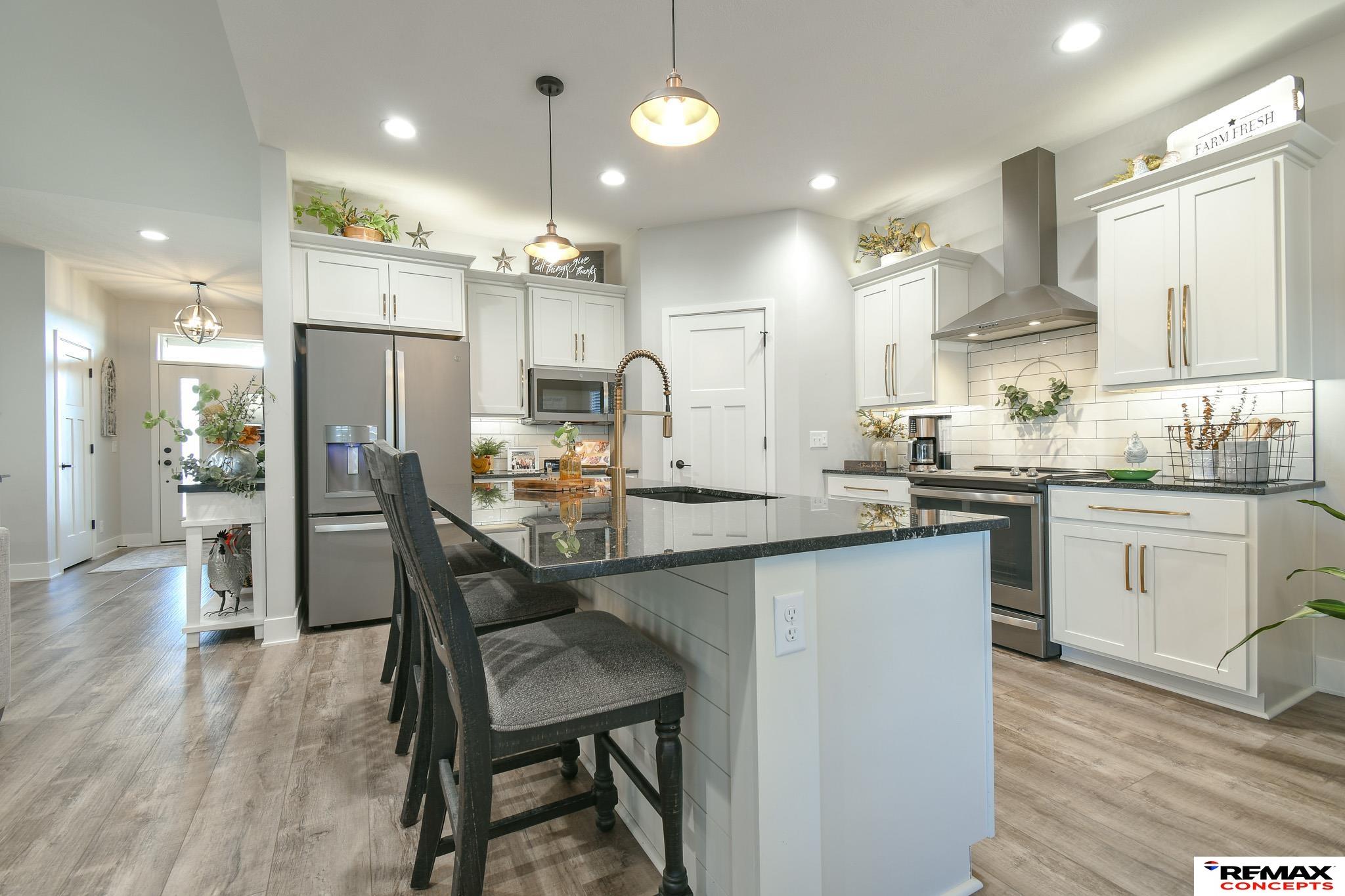 Welcome to 1060 W Panorama! This like-new modern ranch home is located in desirable Southwest Lincoln. Offering over 1,500 sq. ft. on the main level, the home features 2 generous bedrooms, 2 full baths, and an open, functional layout ideal for everyday living and entertaining. Vaulted ceilings and a cozy fireplace anchor the living space, while the kitchen shines with white shaker cabinetry, subway tile backsplash, stainless steel appliances, and a large island perfect for gathering. The primary suite includes a walk-in closet and a spa-like ensuite bath. The unfinished basement is framed and plumbed, providing an excellent opportunity to expand and build equity. Enjoy main-floor laundry, a convenient drop zone, and an oversized 3-stall garage with insulated walls, cabinetry, countertops, pegboard, and 8-ft overhead doors with glass. Additional highlights include a striking 42” front door, fenced and landscaped yard, spacious patio, and a built-in bar and grill. This is a must-see!